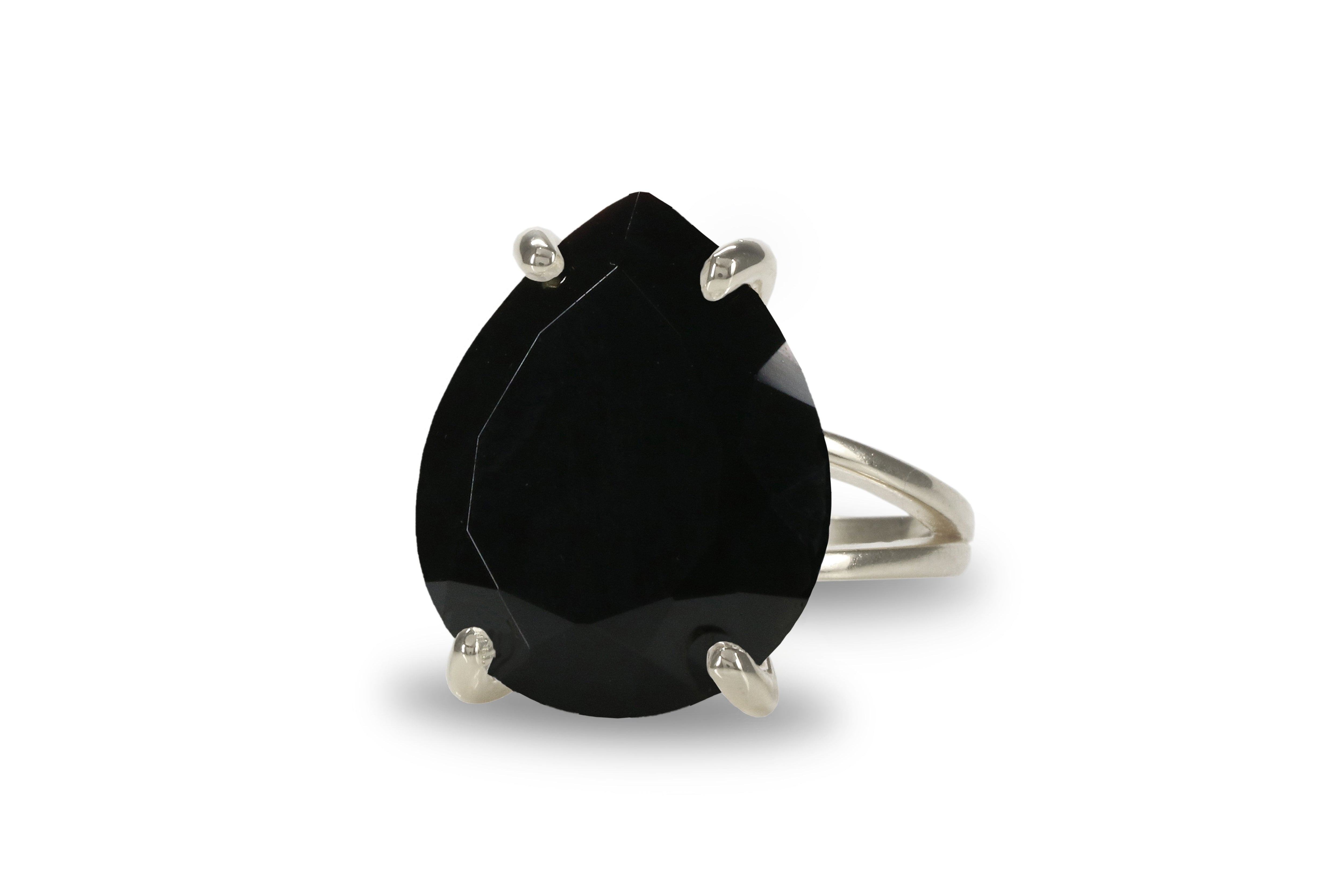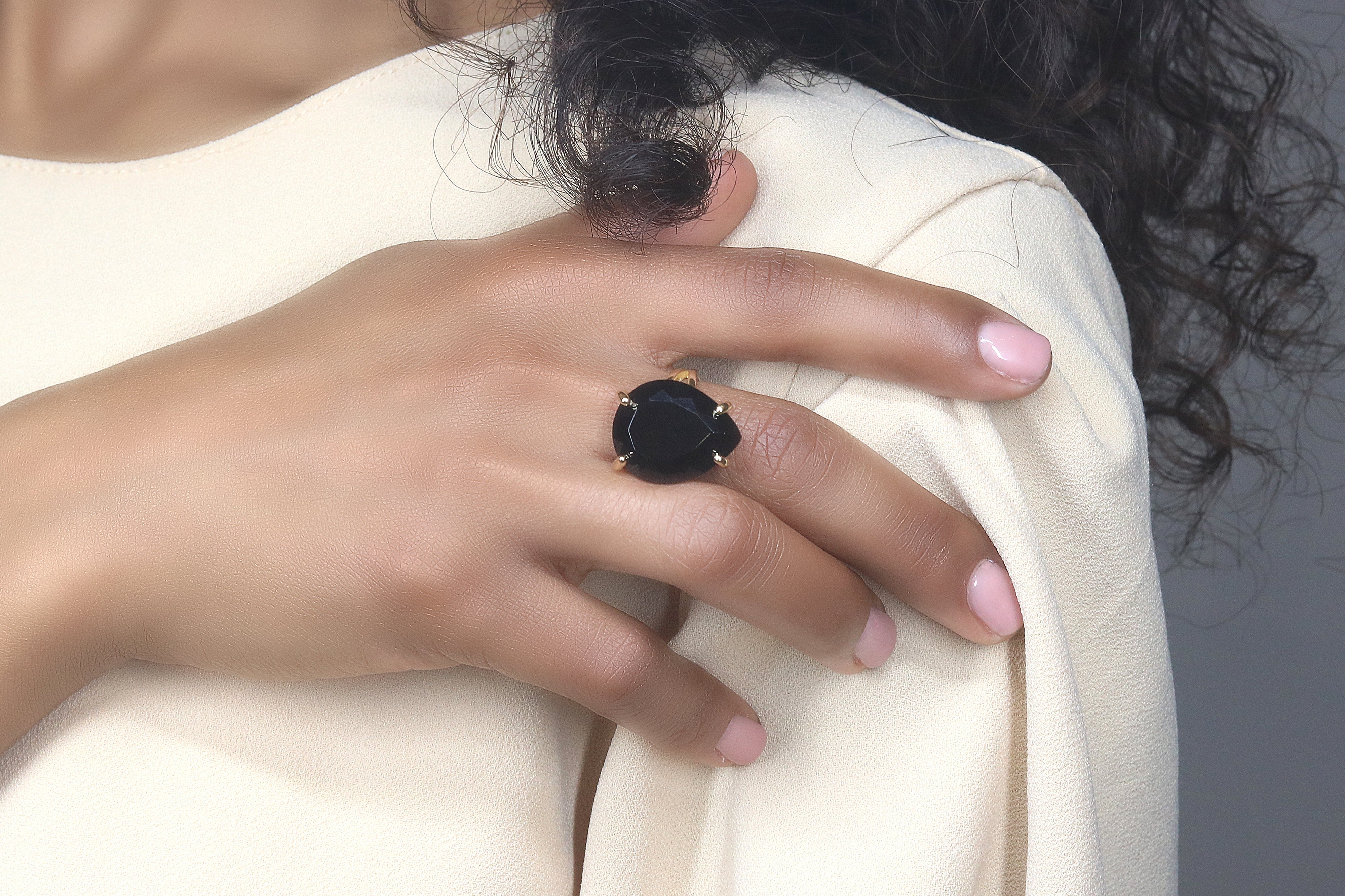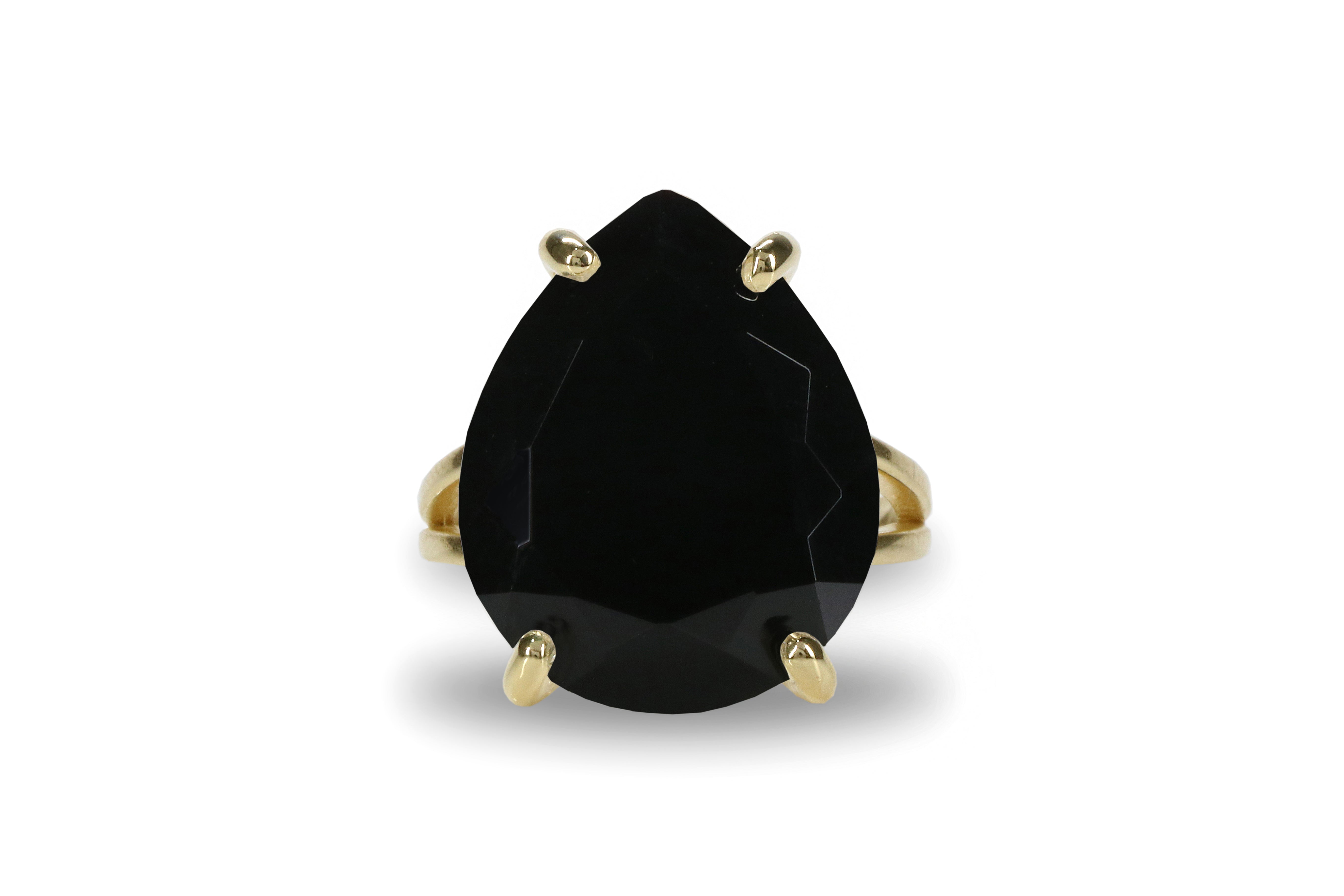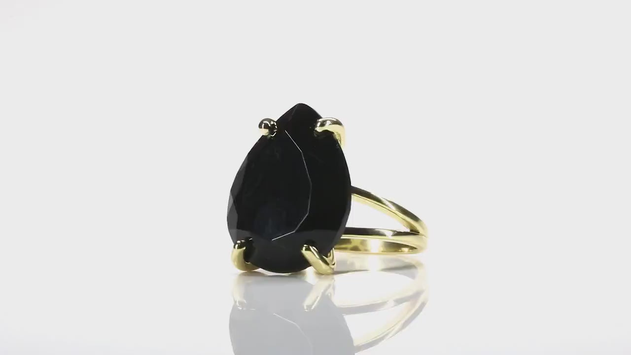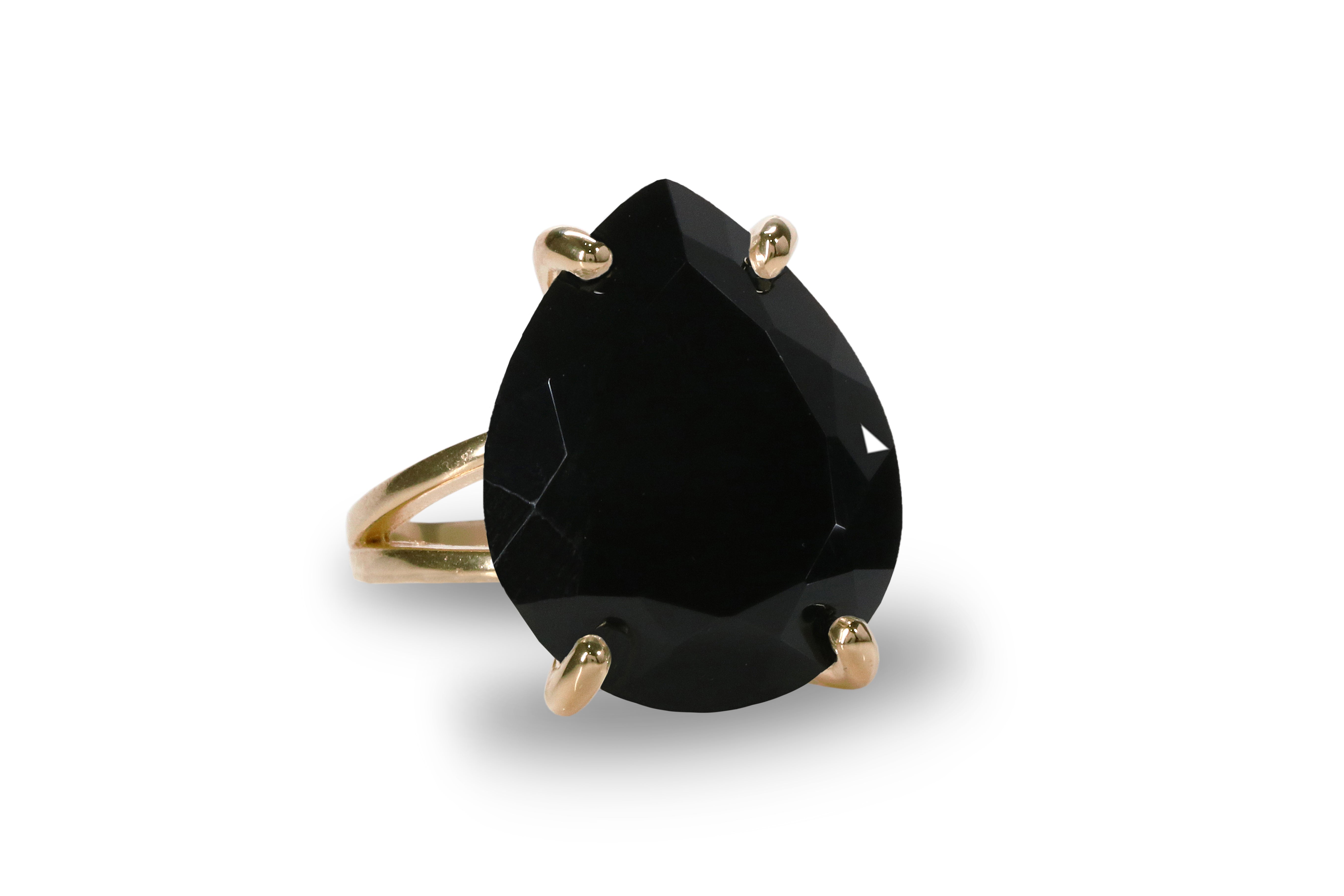 This black onyx ring is crafted with a polished pear-cut gemstone set in a 14k gold filled band. The sleek drop design highlights the deep black beauty of onyx, a stone known for strength and grounding energy. Designed as a cocktail-style gemstone ring, it is both modern and timeless. Handcrafted with care, this versatile ring makes a perfect everyday piece, a bold statement accessory, or a meaningful gift for women.