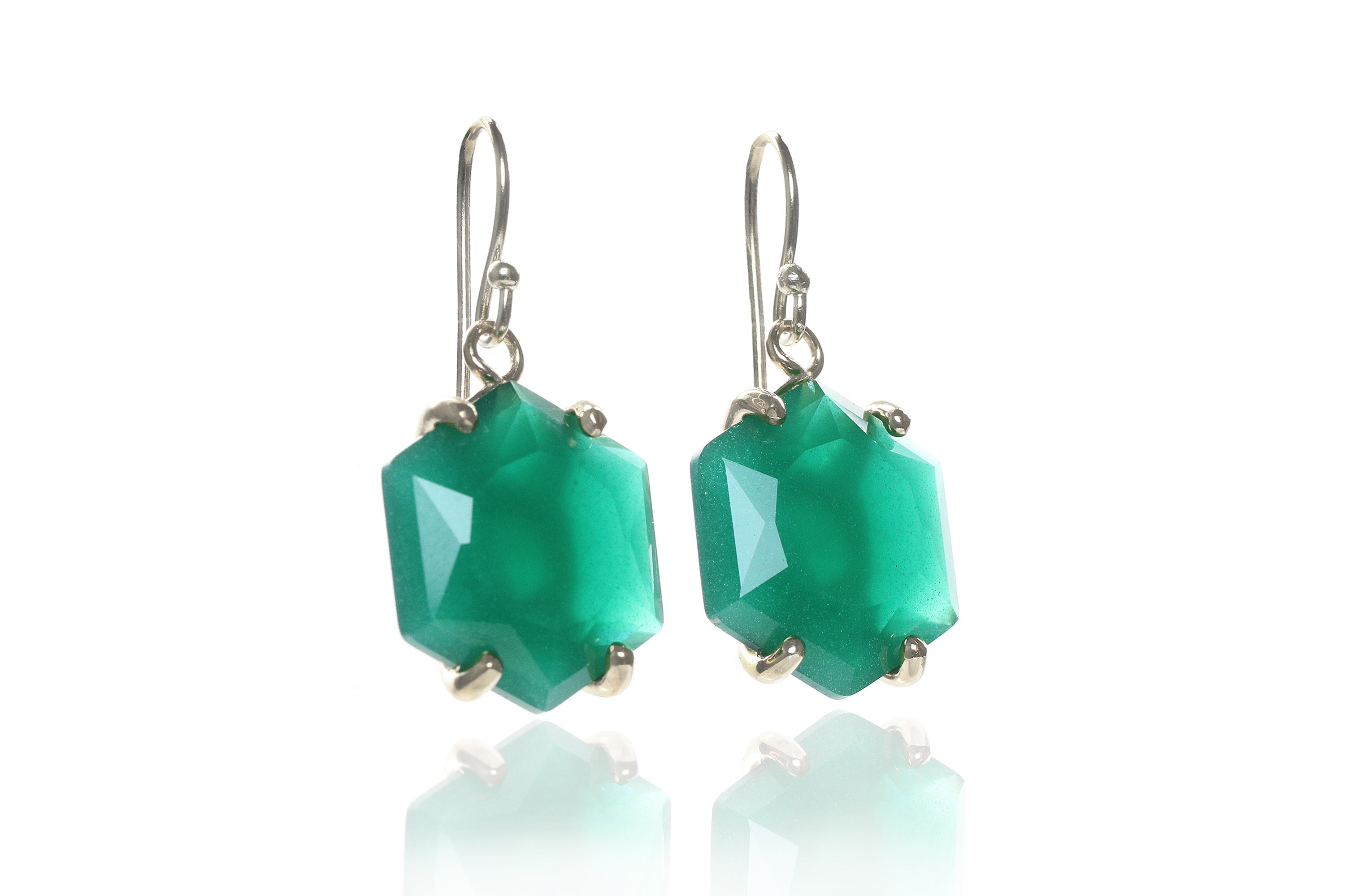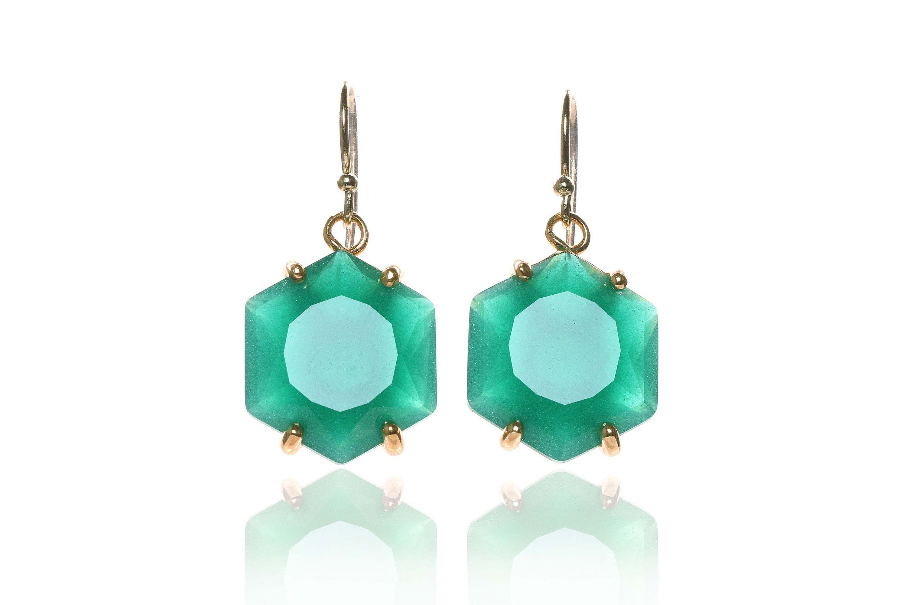 Quirky and modern, these hexagon earrings look like they are from a fashion editorial feature. Beautiful long earrings that showcase Green Onyx stones. You can never go wrong with these handmade pieces, wear them as bridal earrings, jewelry for special occasions or as everyday statements.