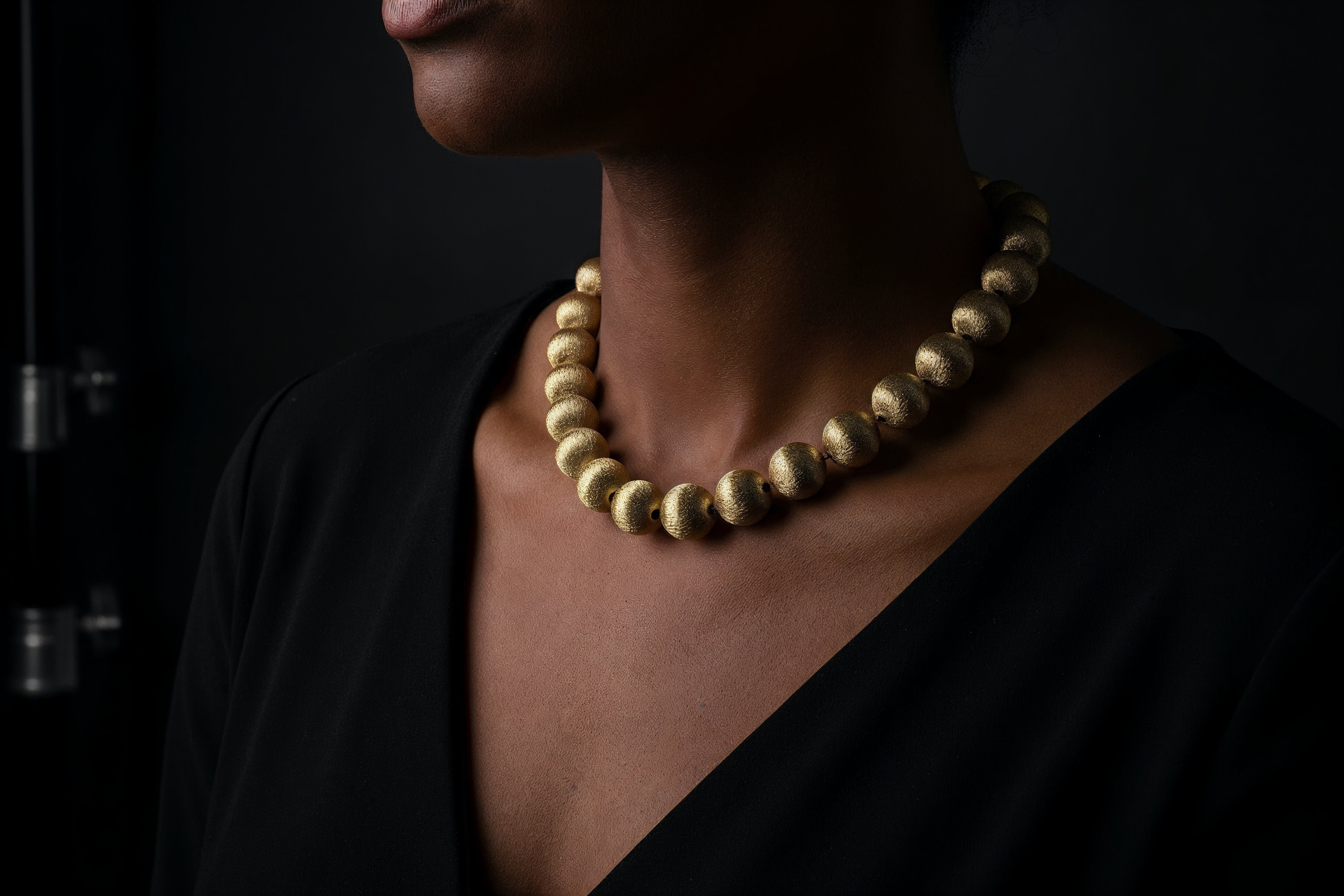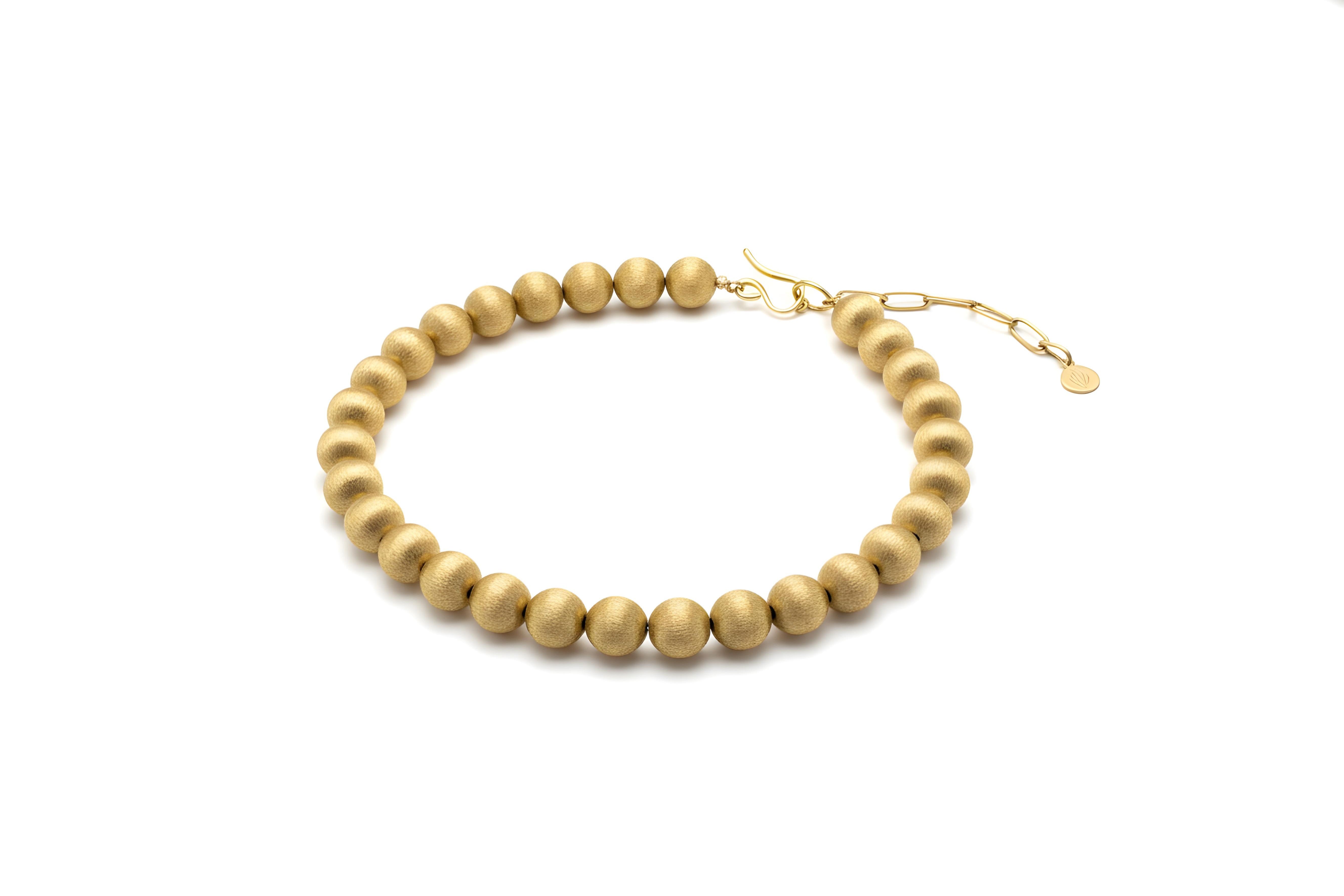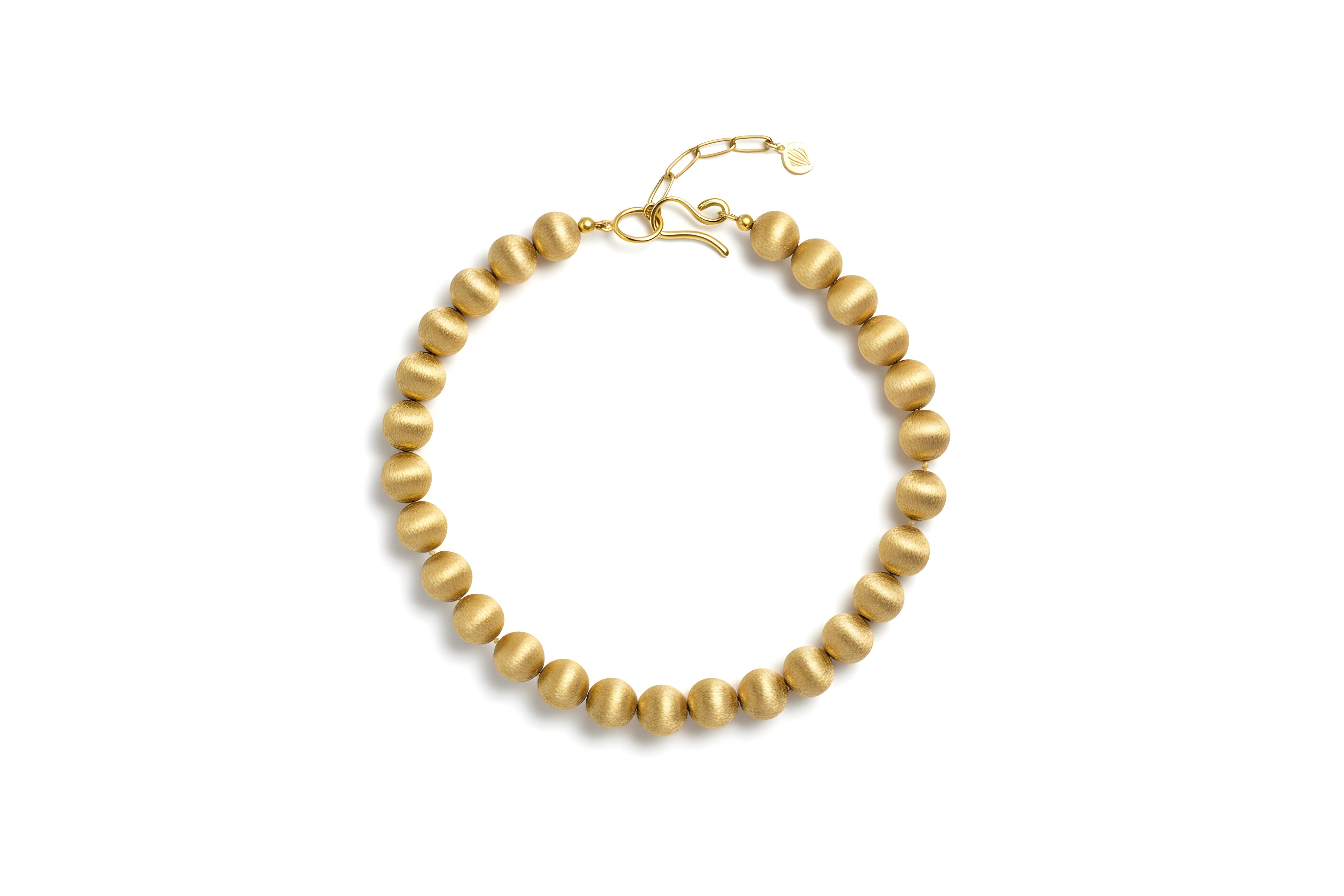 This brushed gold beads necklace is handcrafted with polished round beads that bring texture and depth to the design. Made with 14k gold, the necklace combines a modern matte finish with a classic beaded style.