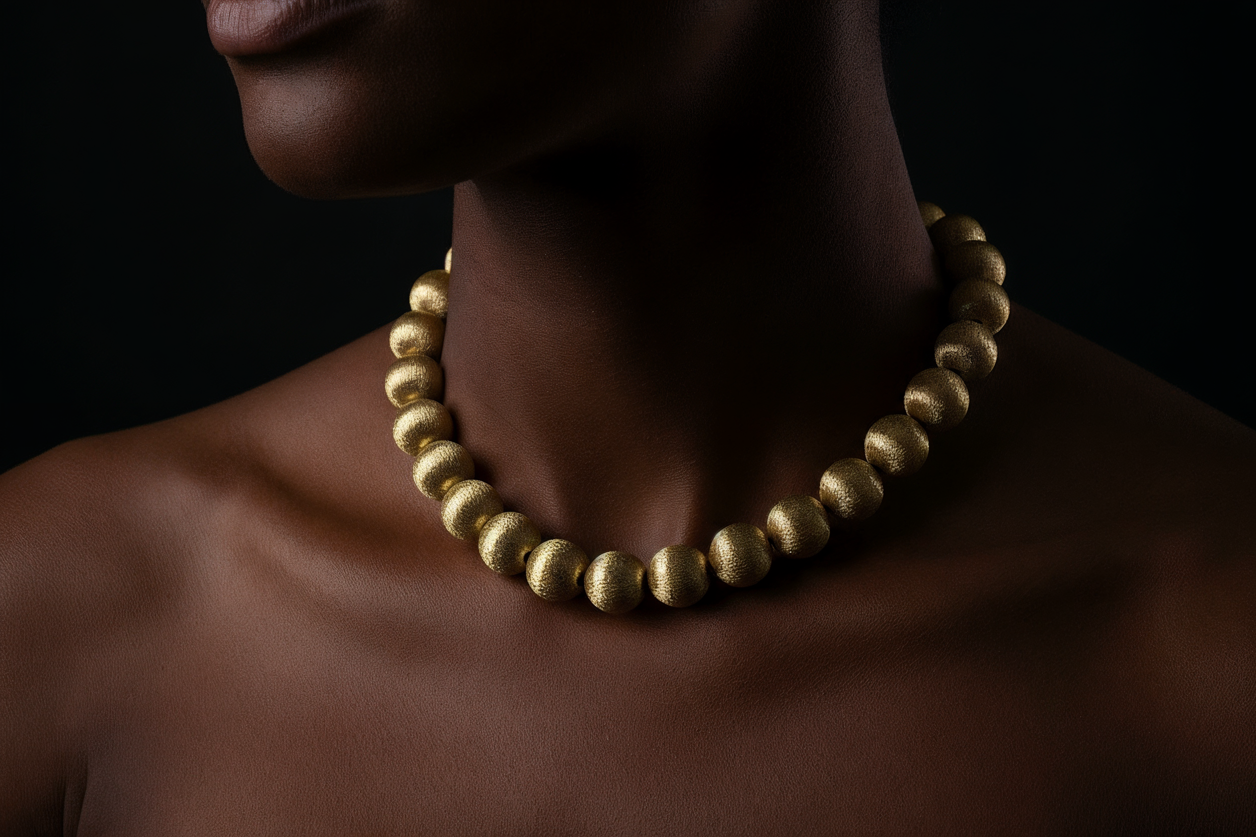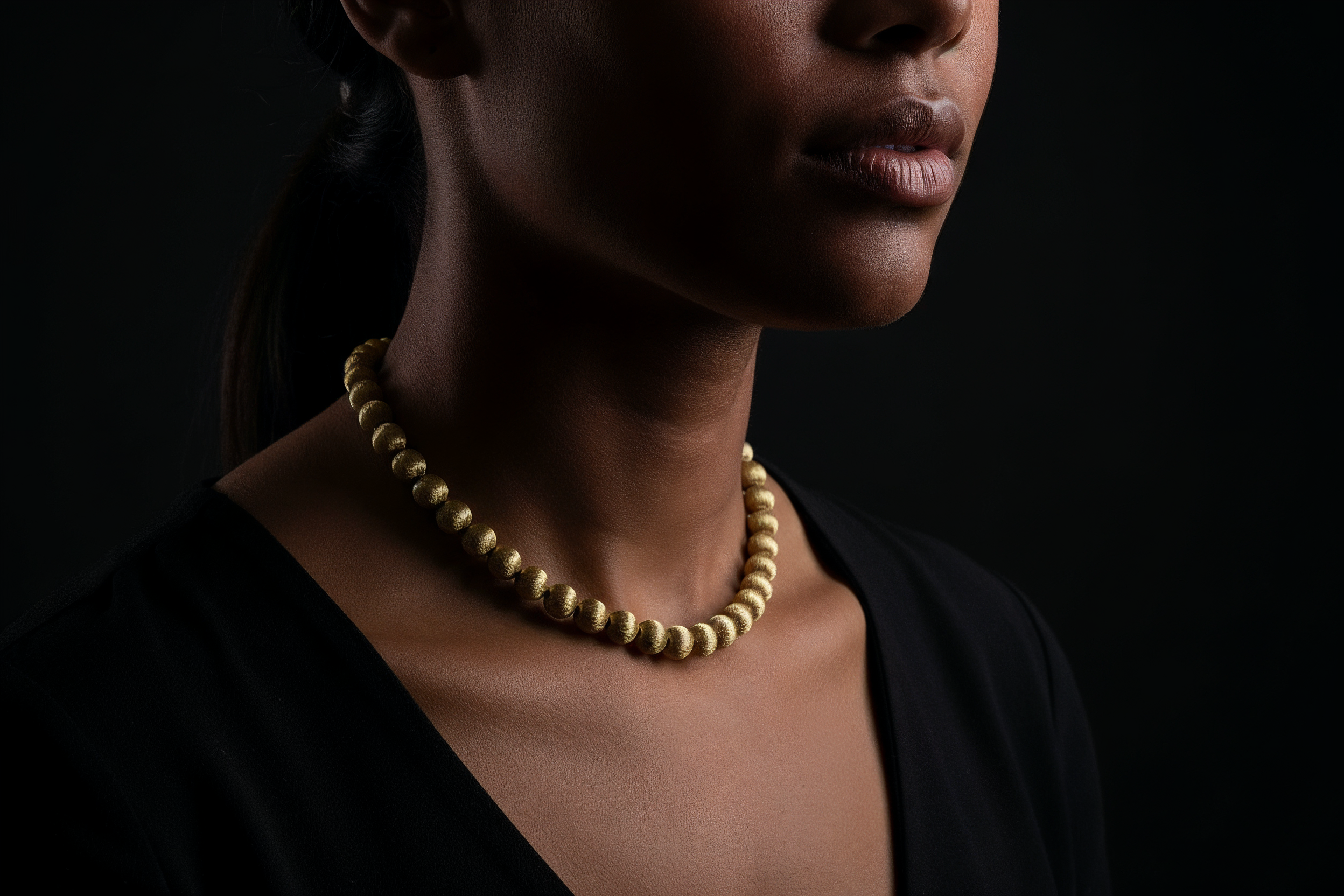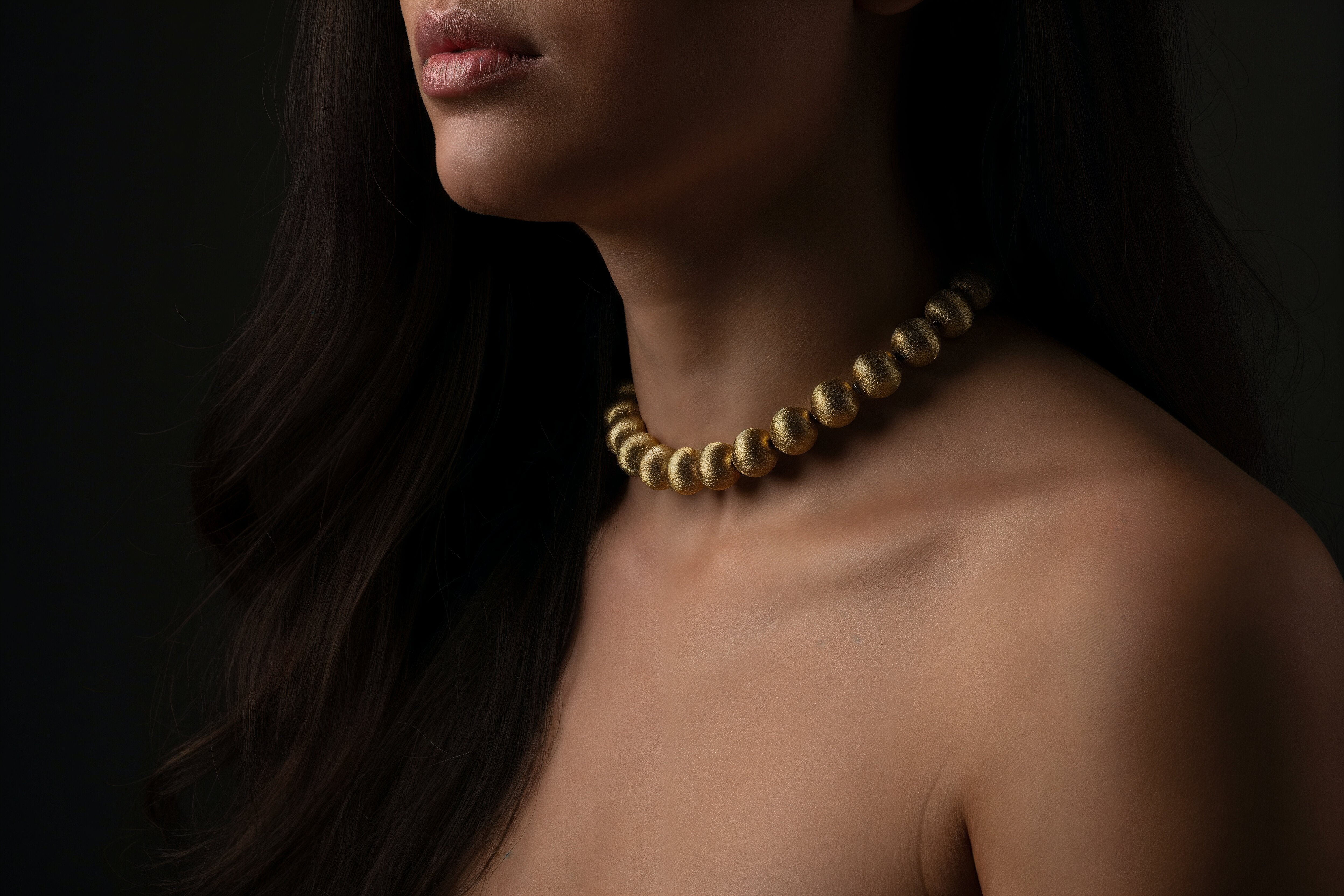 This brushed gold beads necklace is handcrafted with polished round beads that bring texture and depth to the design. Made with 14k gold, the necklace combines a modern matte finish with a classic beaded style.