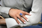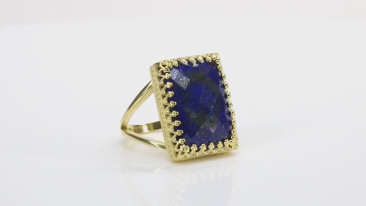 This piece shows off a captivating rectangular midnight blue Lapis Lazuli beautifully complimenting the delicate 925 Sterling Silver double ring band. A fine quality stone of engaging details that mimic the starry night sky, this Lapis Lazuli is a known traditional birthstone for December. December birthstone rings make quite great gift ideas to celebrate your loved ones on their special day.