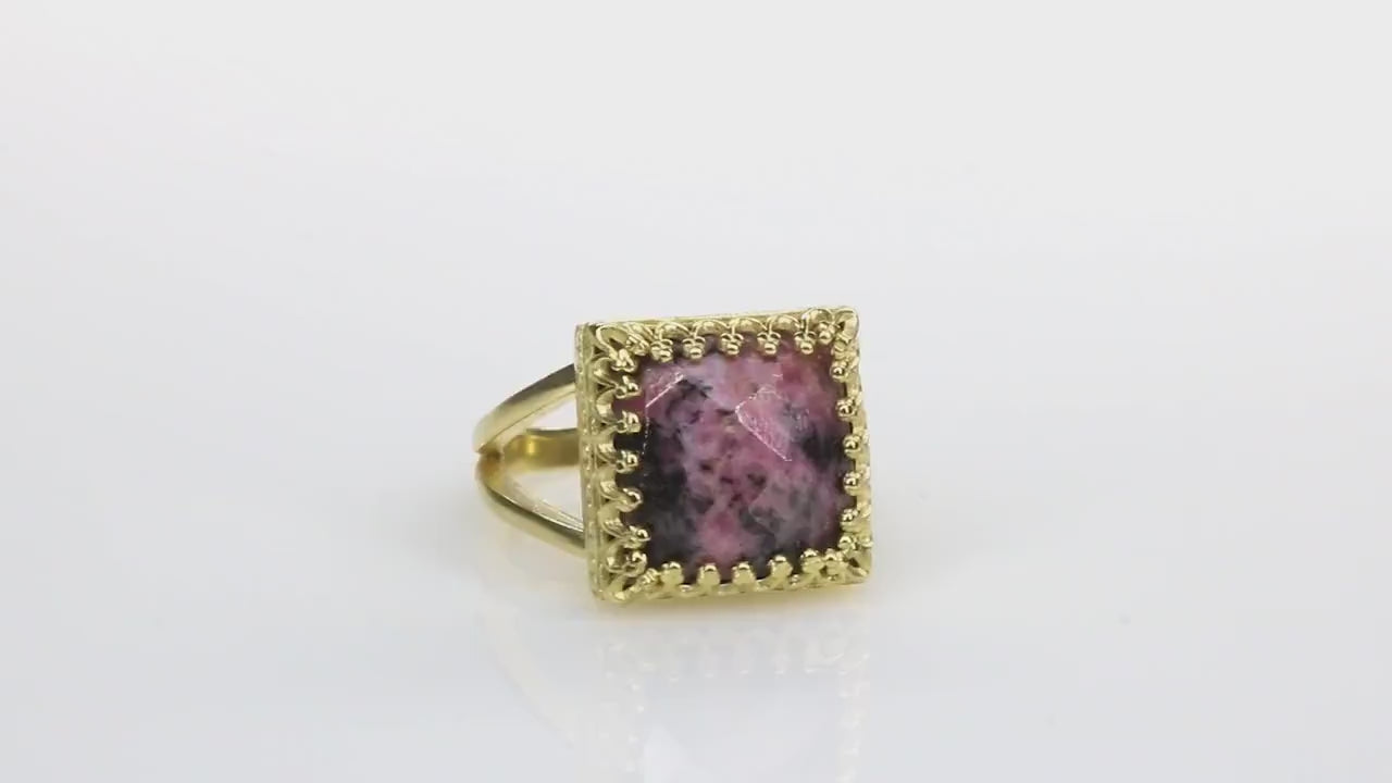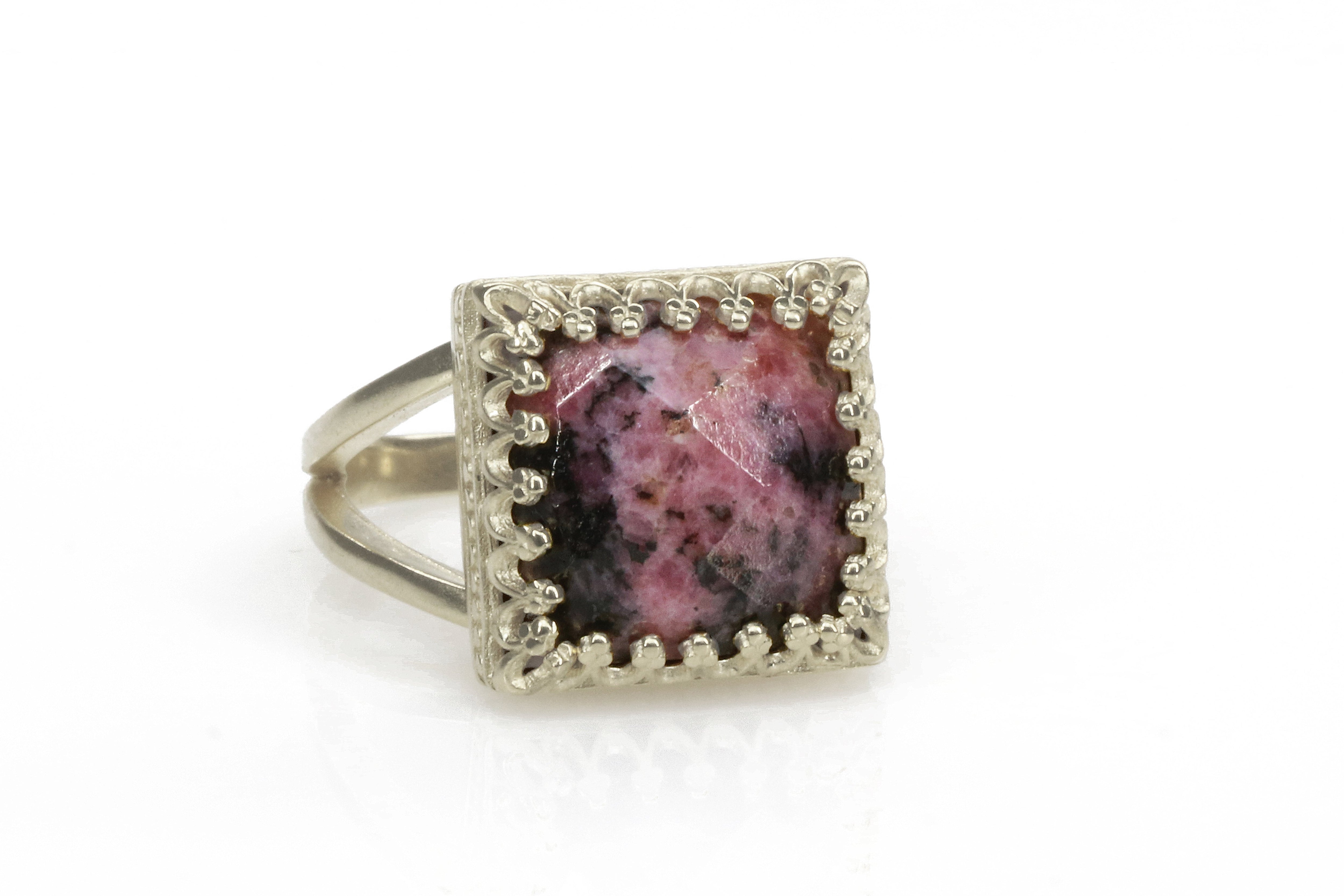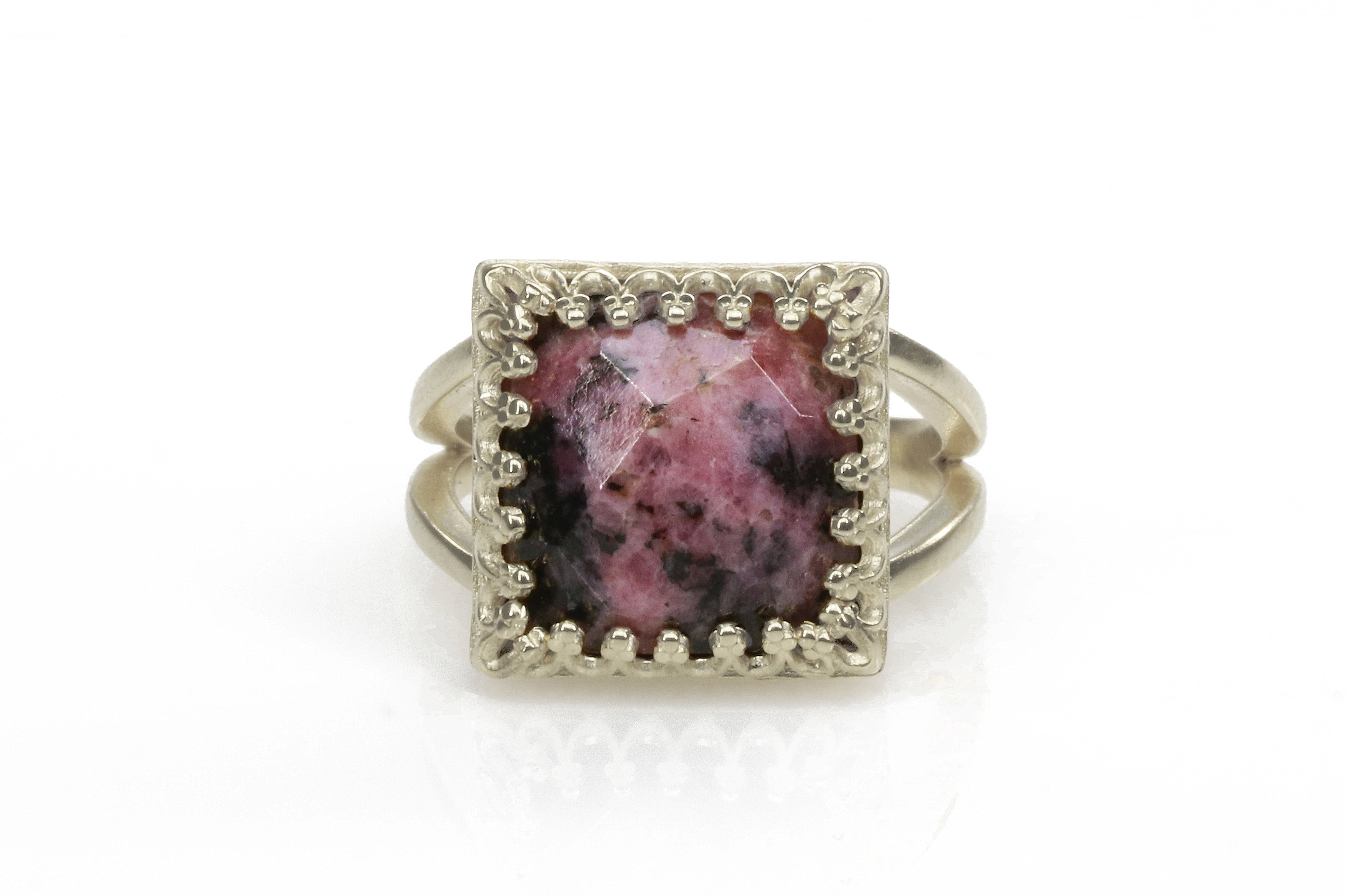 12x12mm Square Cut Red Rhodonite in Silver