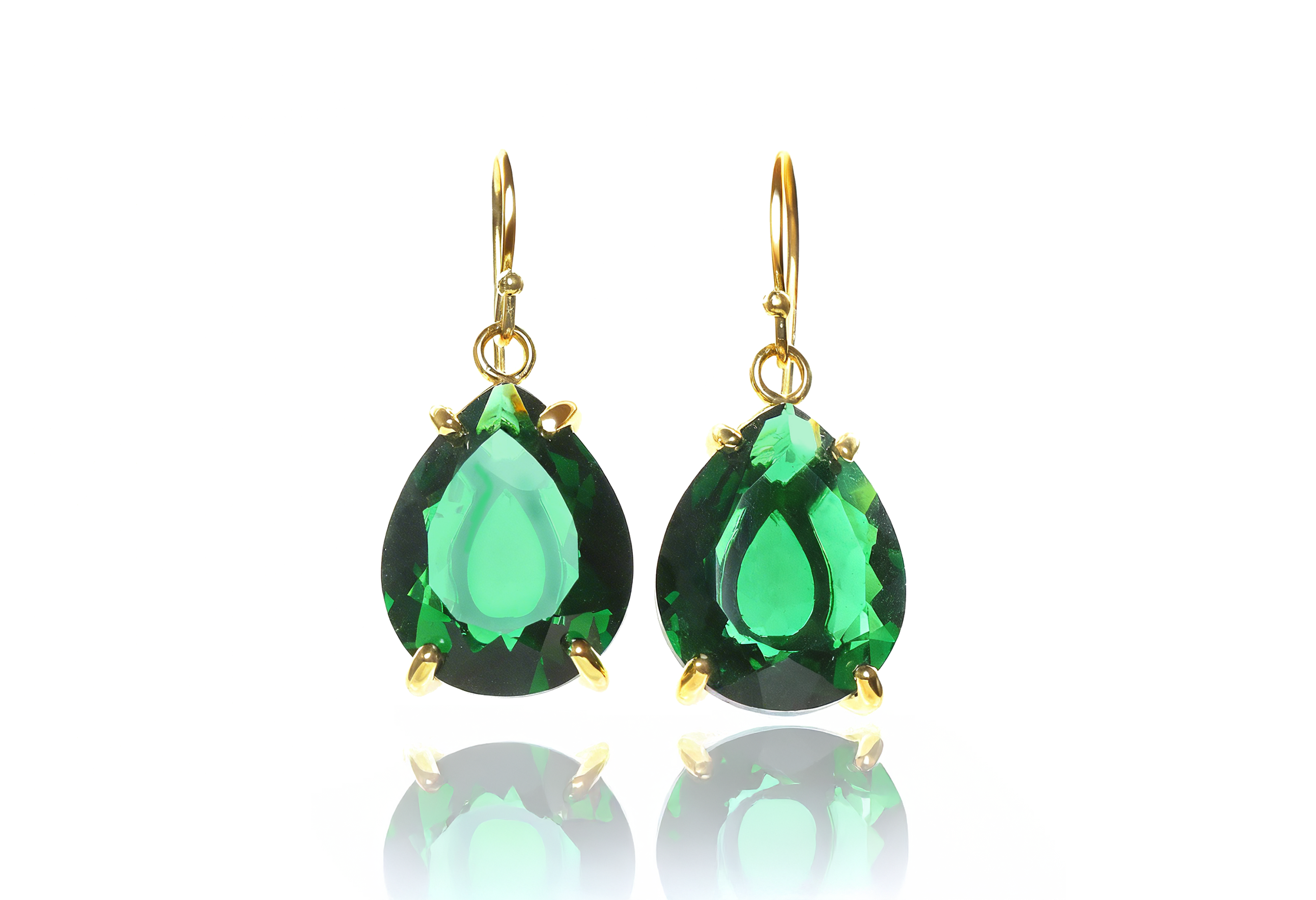 Artisan Pear Shaped Emerald Gold Earrings
