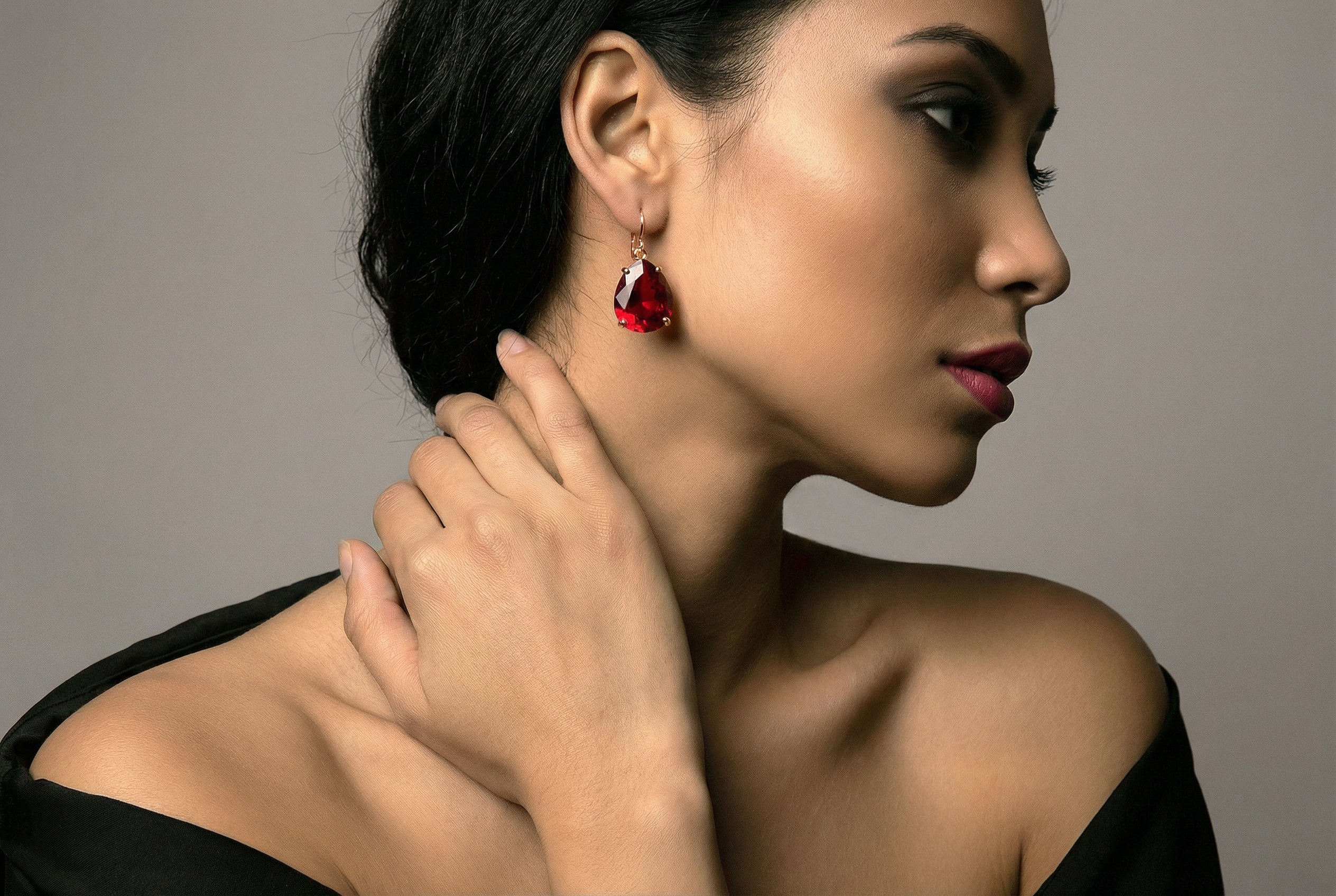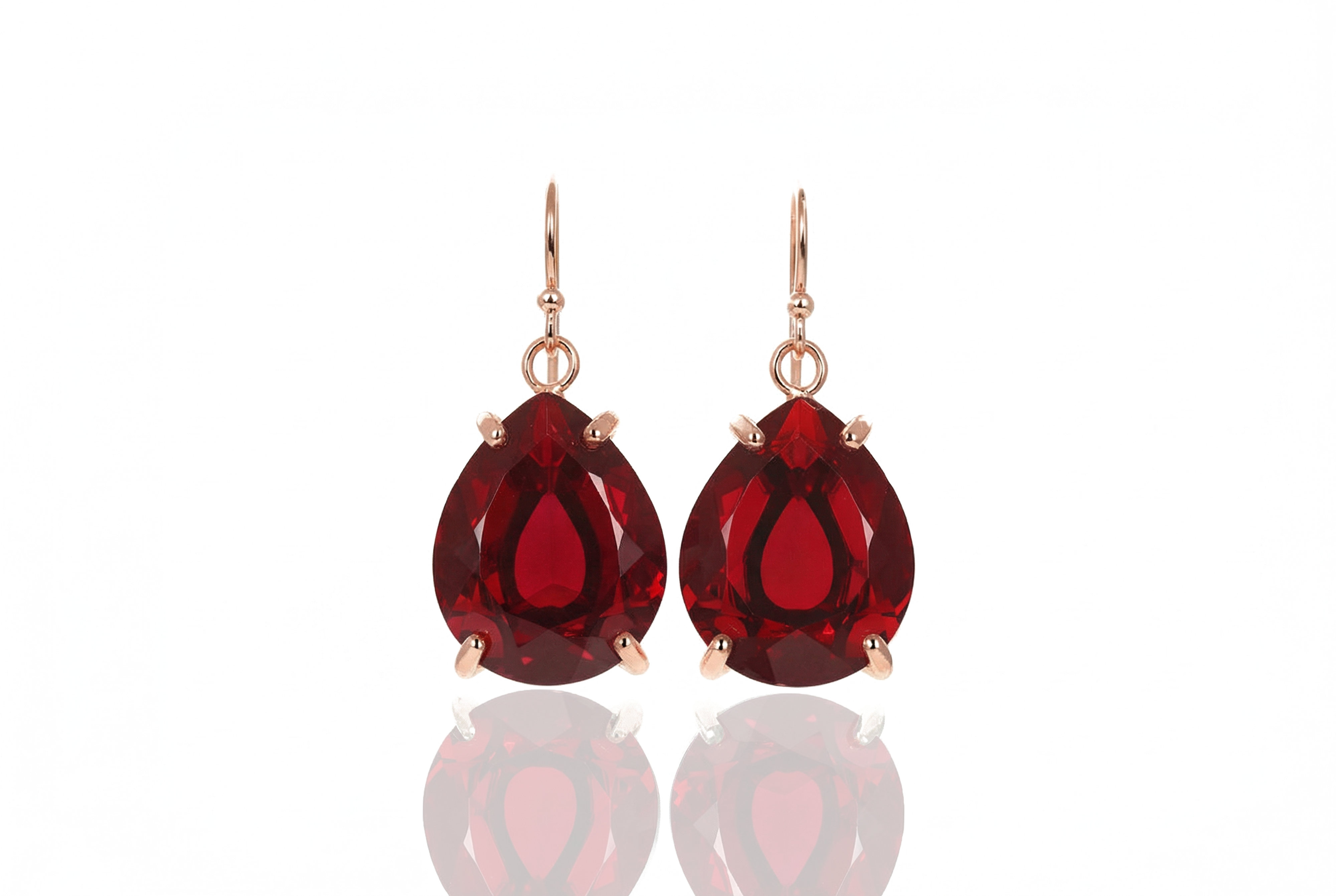 Embodying regal elegance, these Garnet gemstone earrings are perfect for ladies who love a bold statement. These gold dangle earrings make elegant gifts for birthdays and other special occasions. Long earrings that you can mix and match with other jewelry pieces.