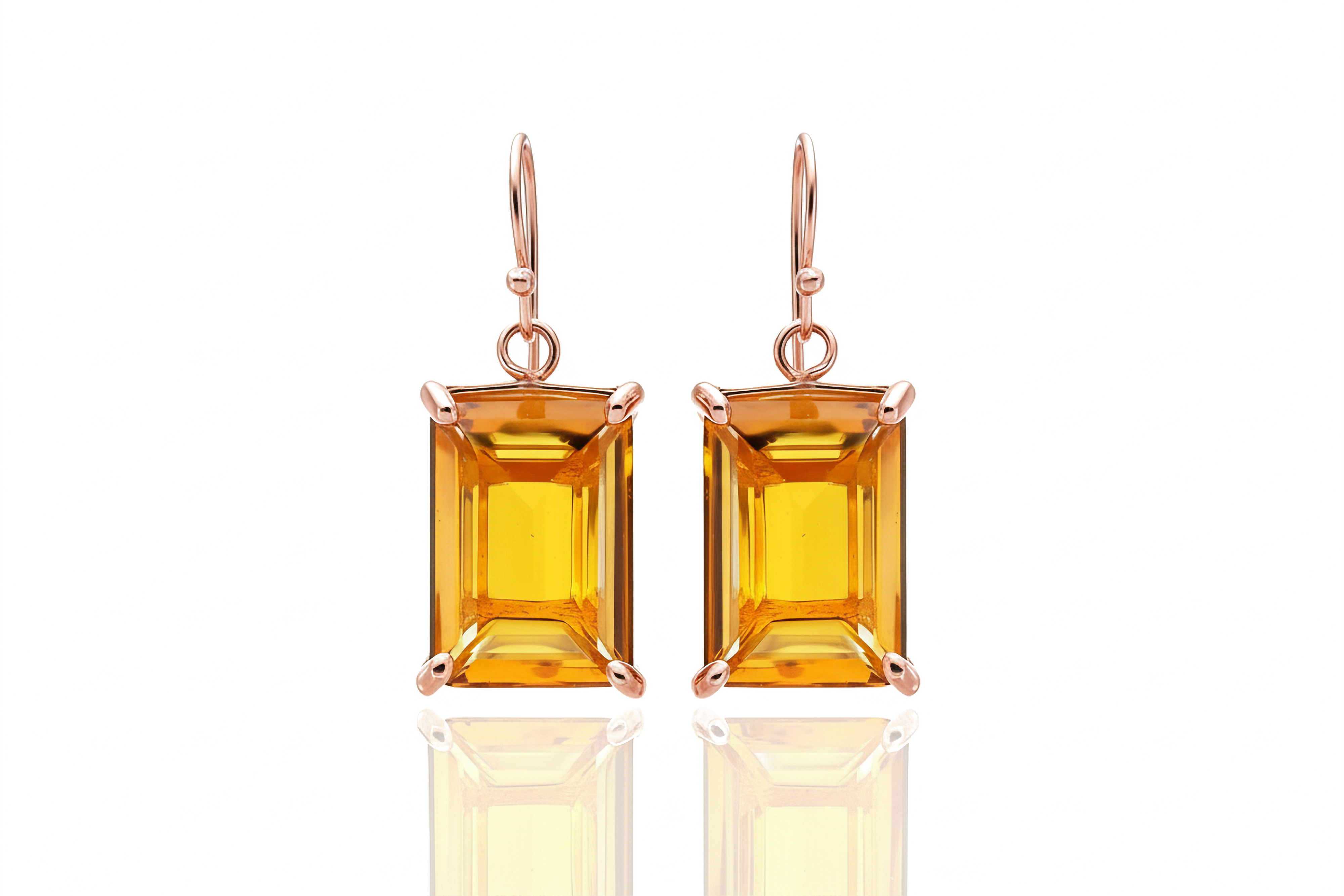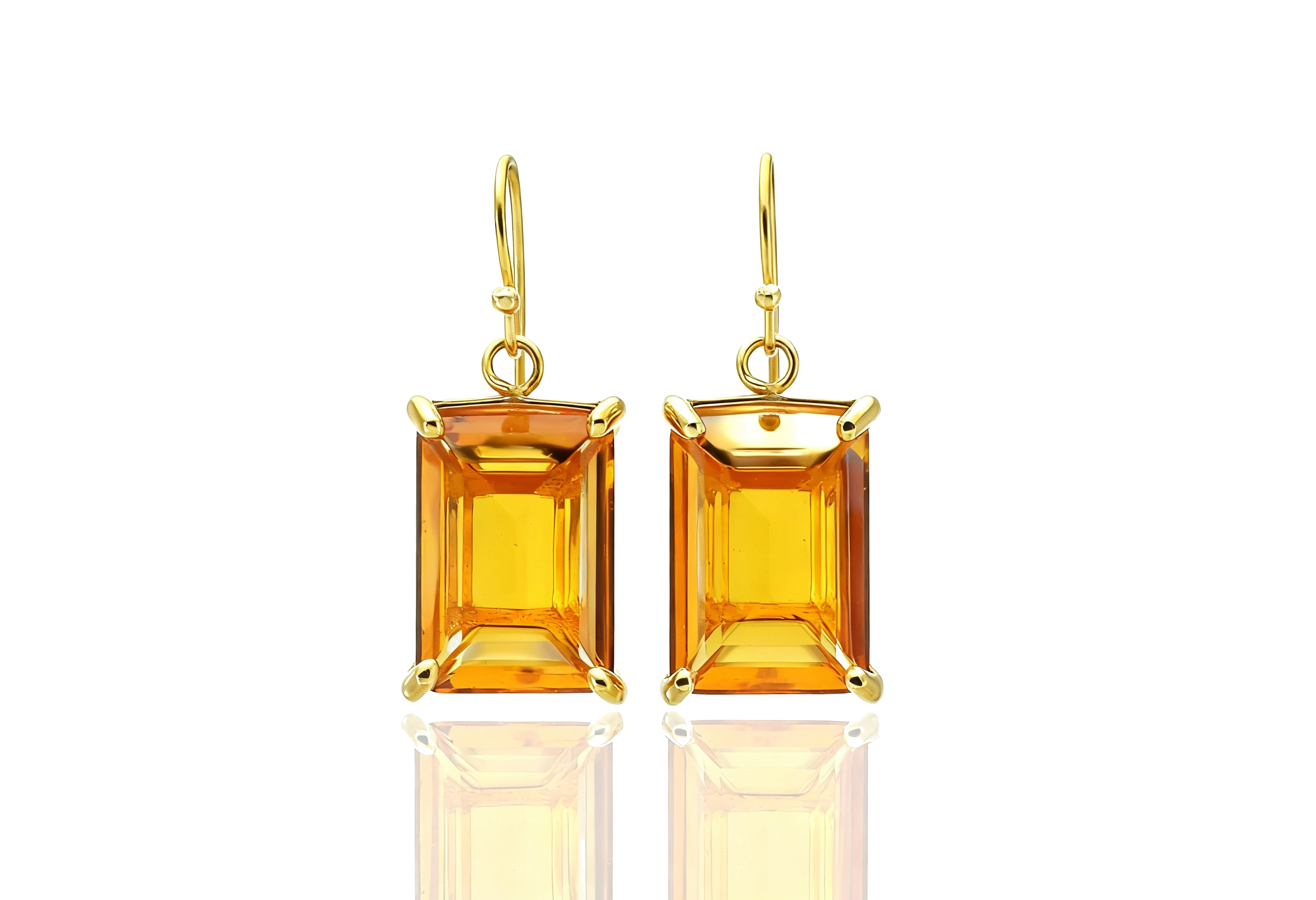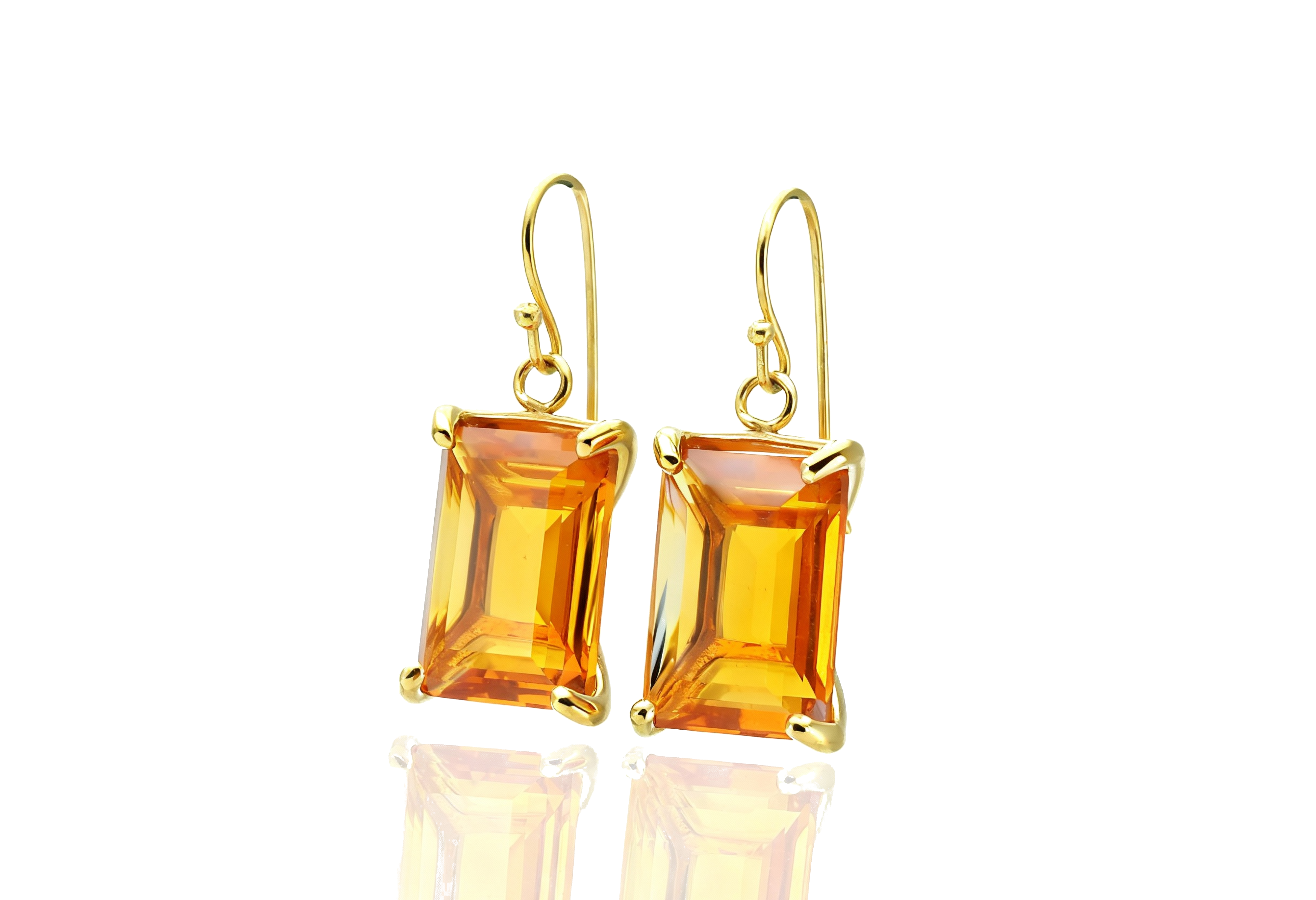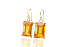 14k Gold Citrine Rectangular Cut Gold Earrings