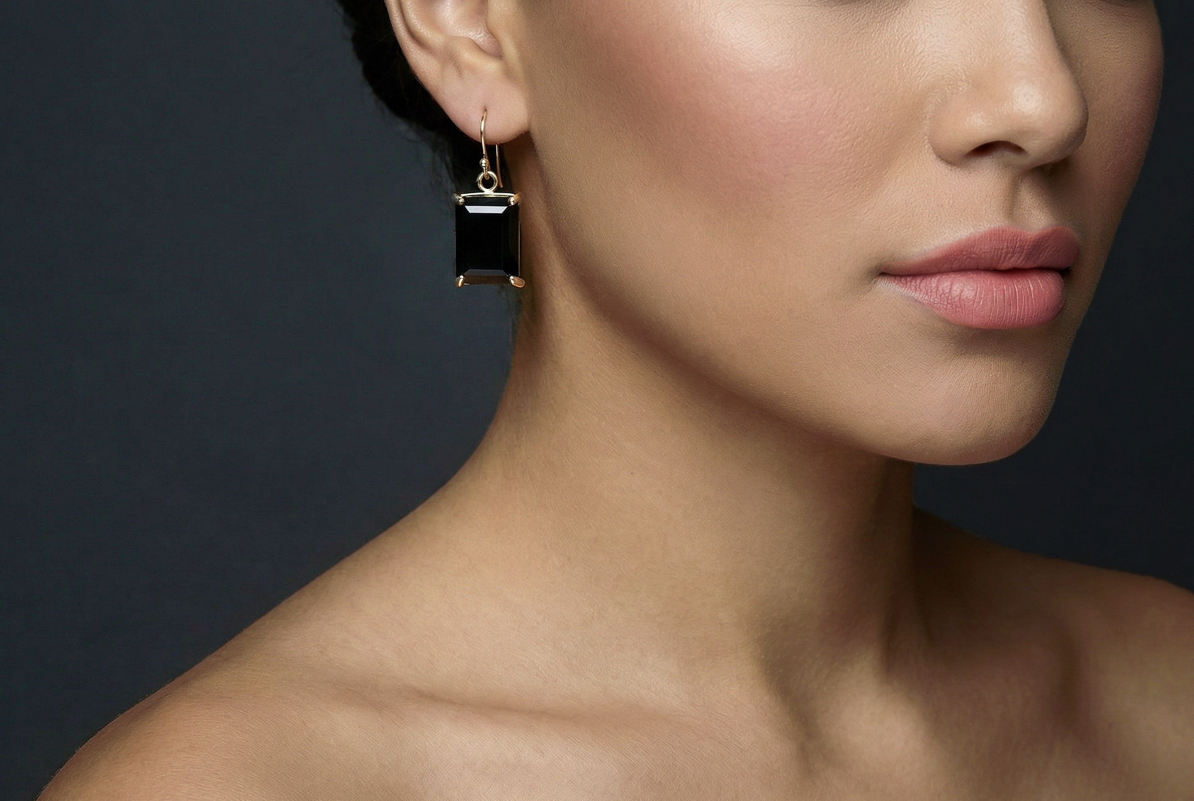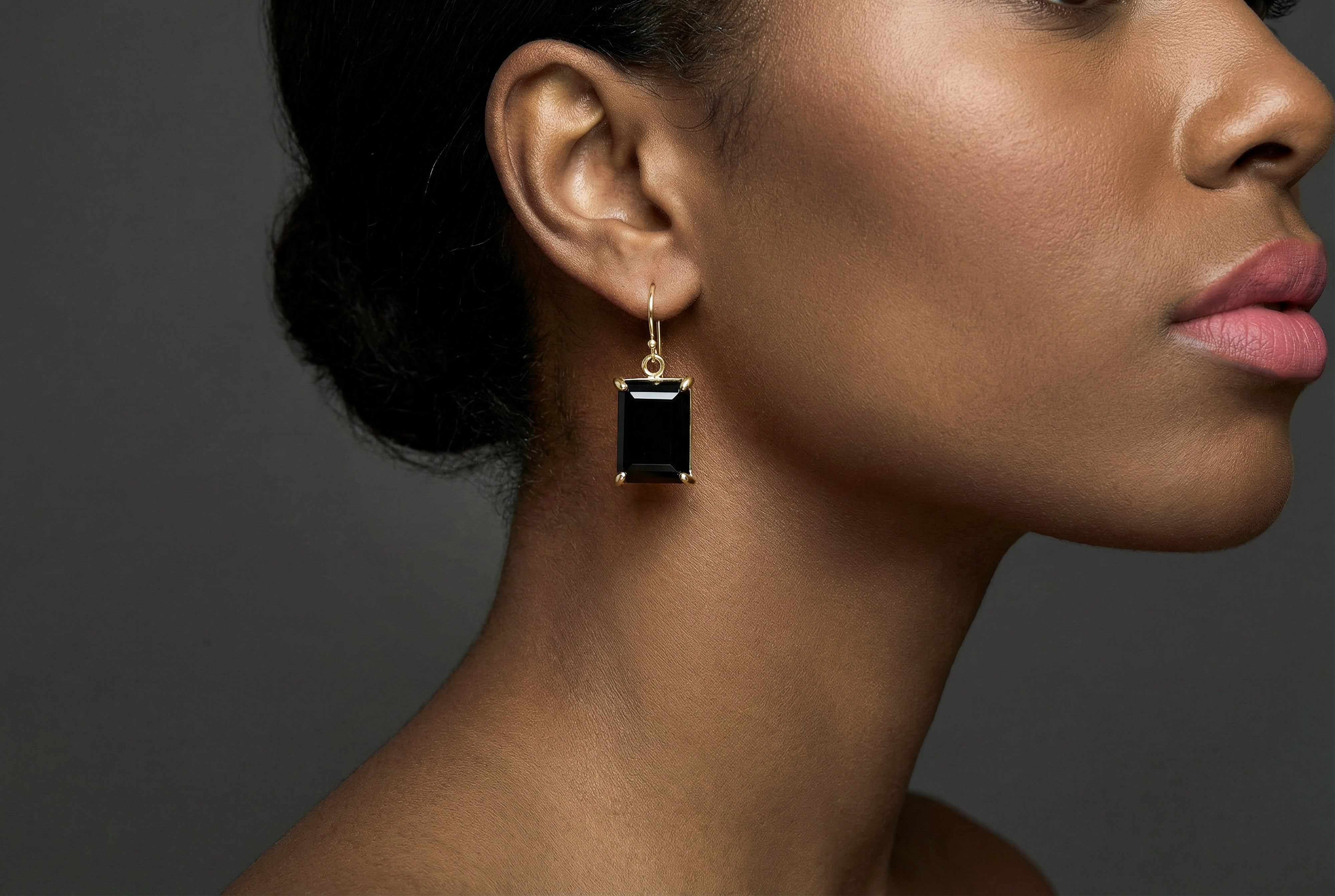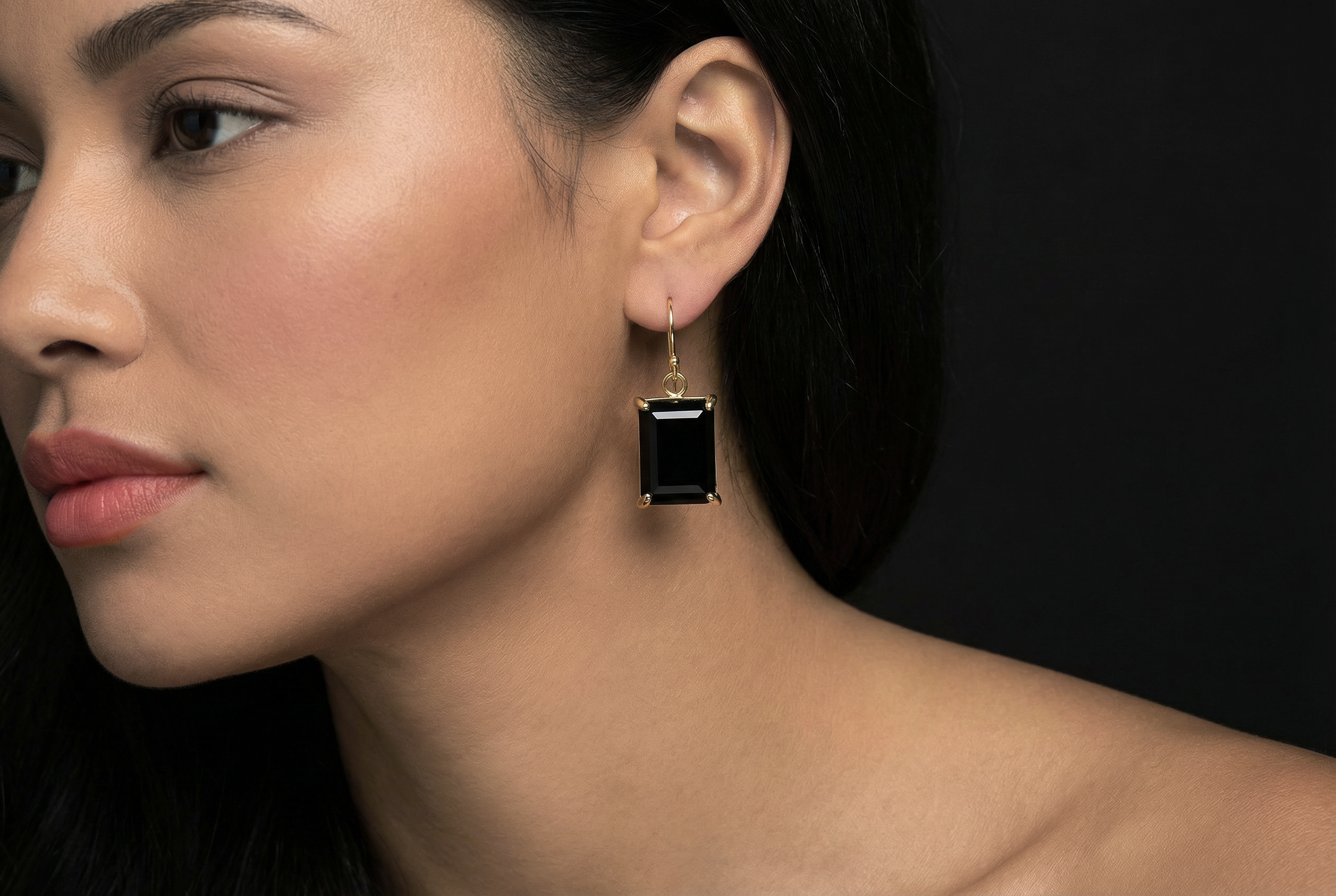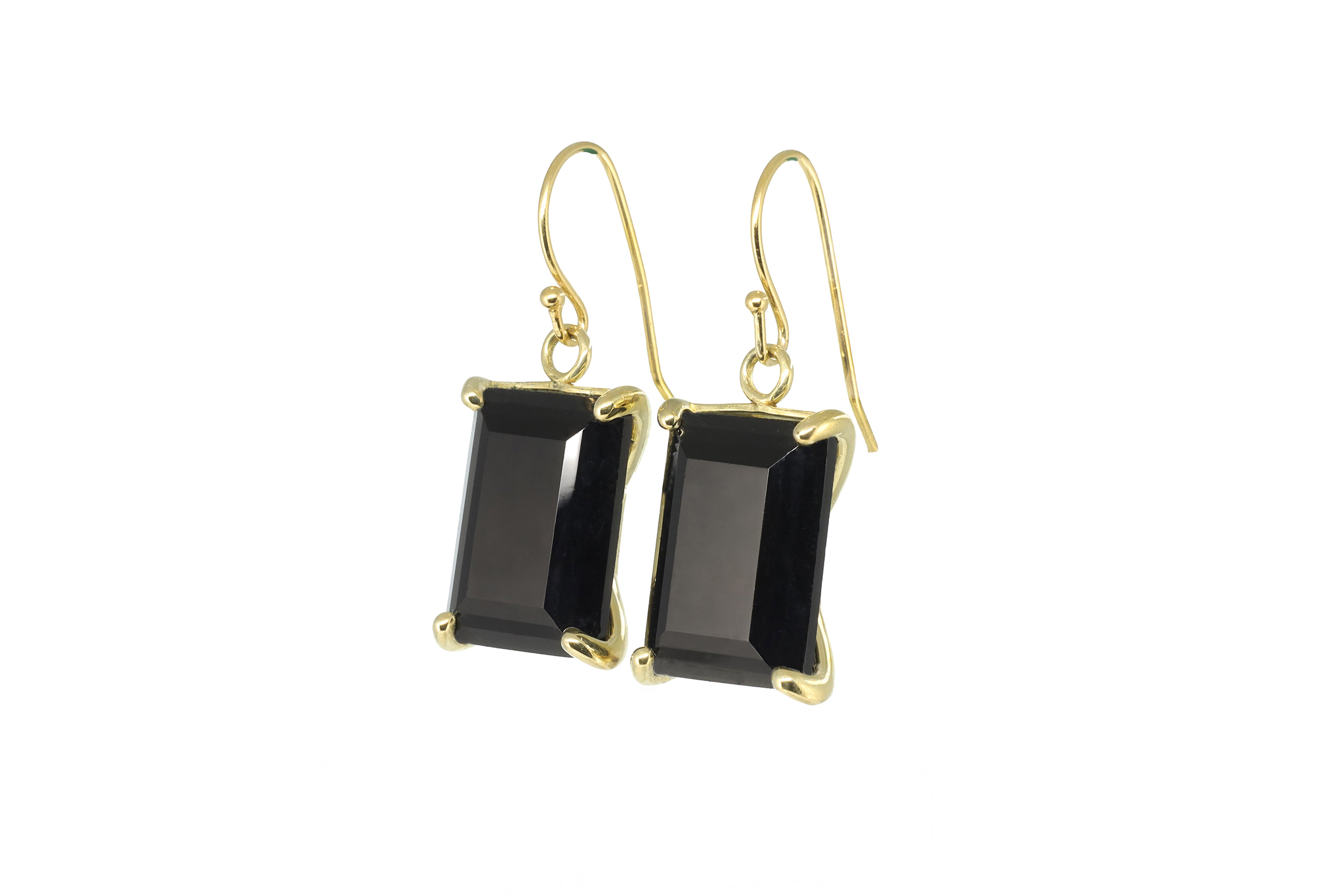 Black Onyx Rectangle Cut Gold Earrings