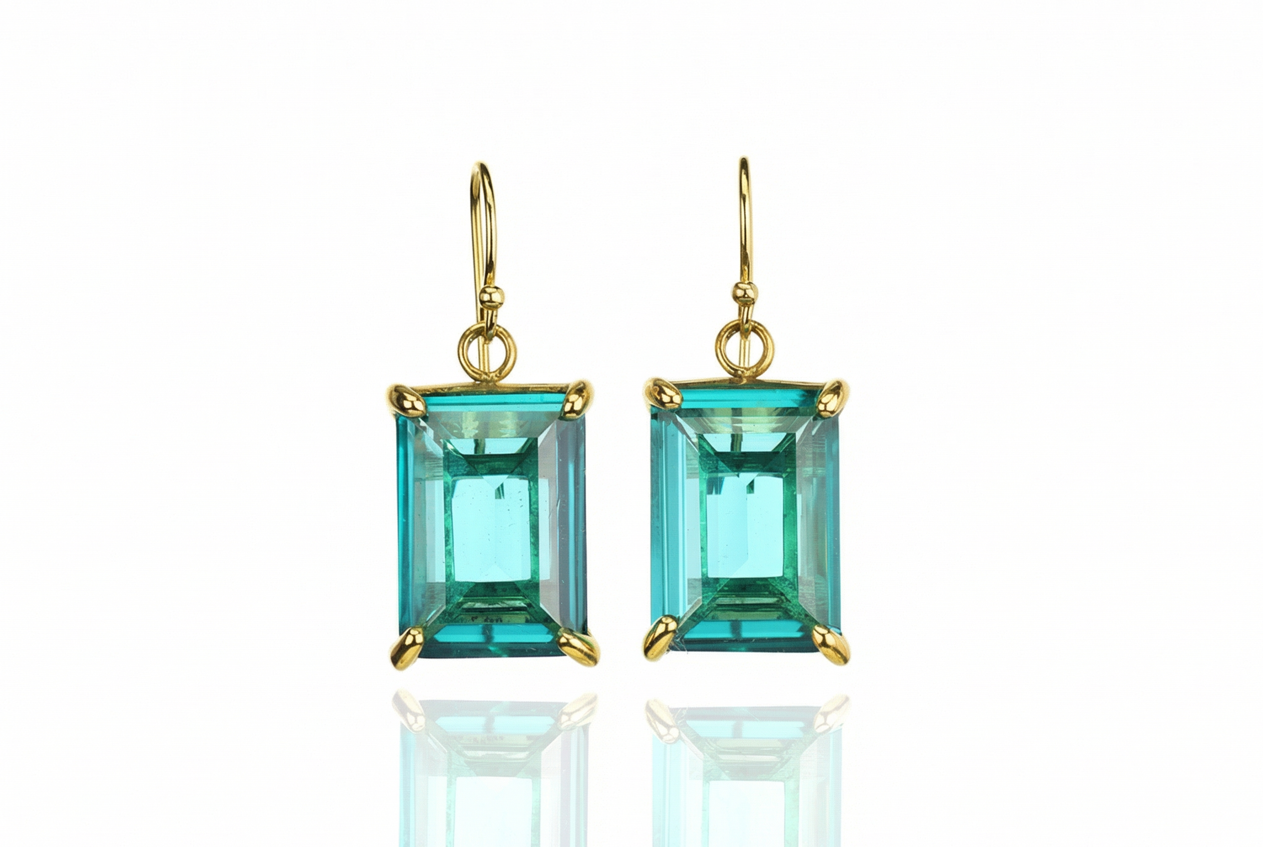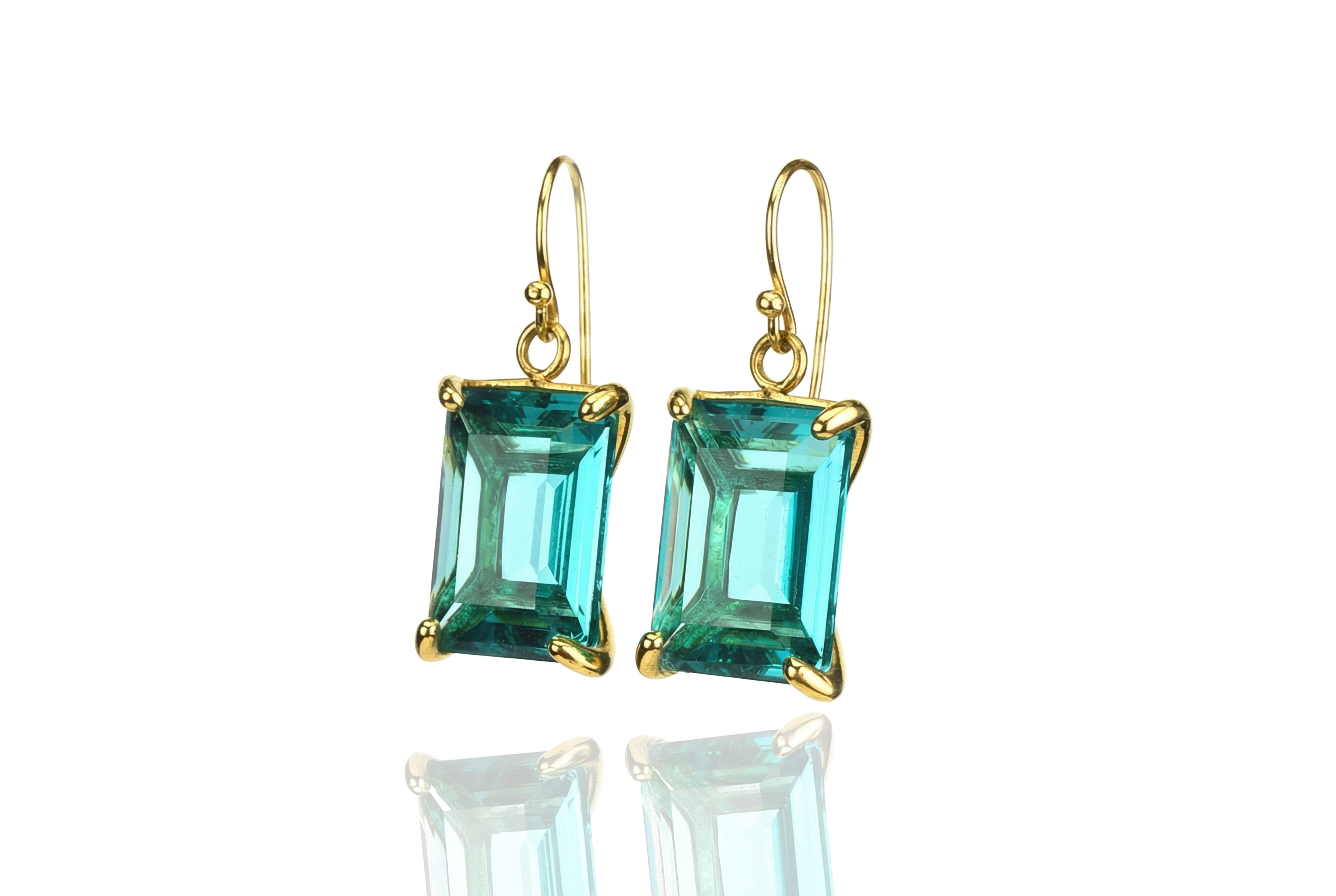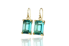 Blue Tourmaline Rectangular Gemstone Gold Dangle Earrings
