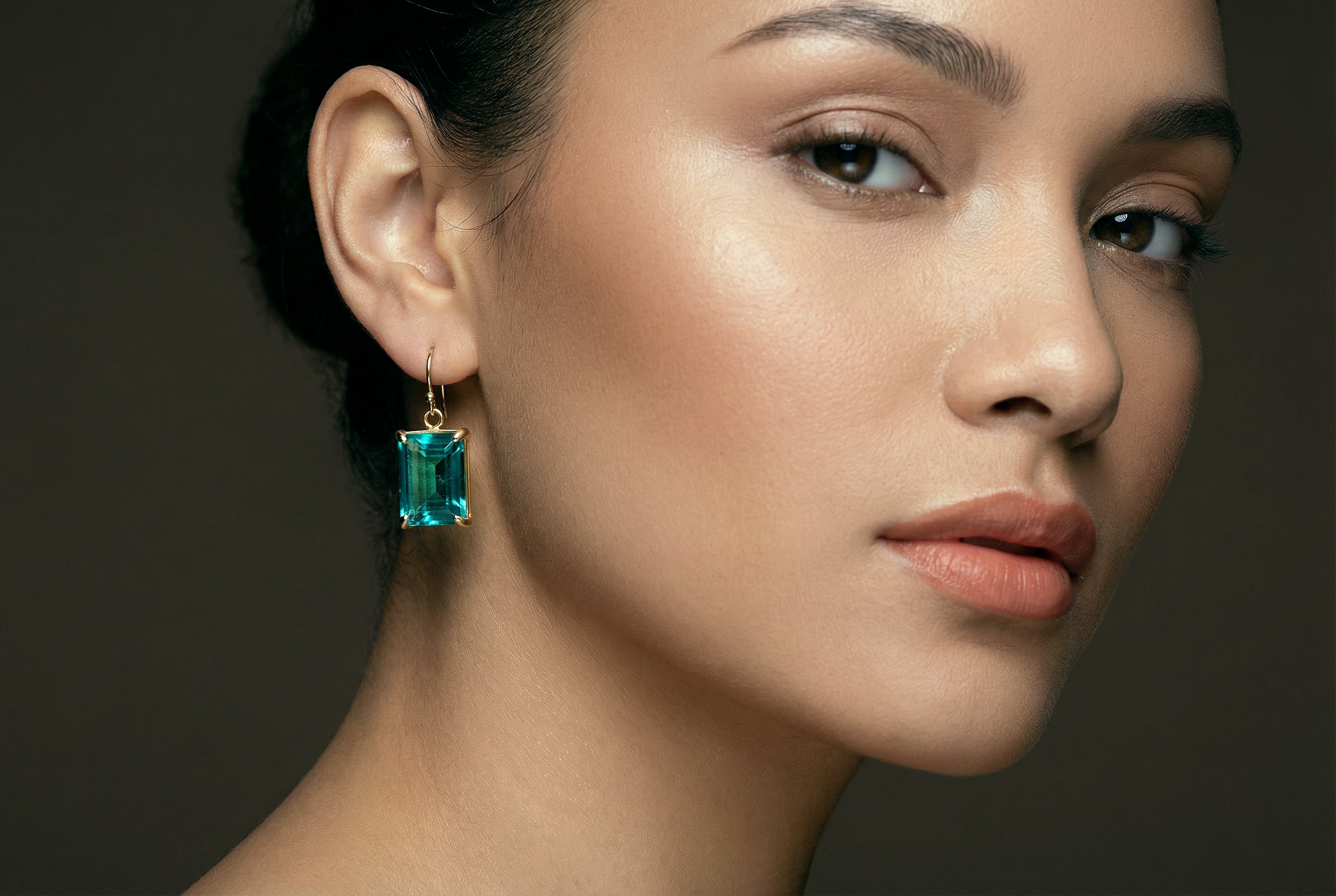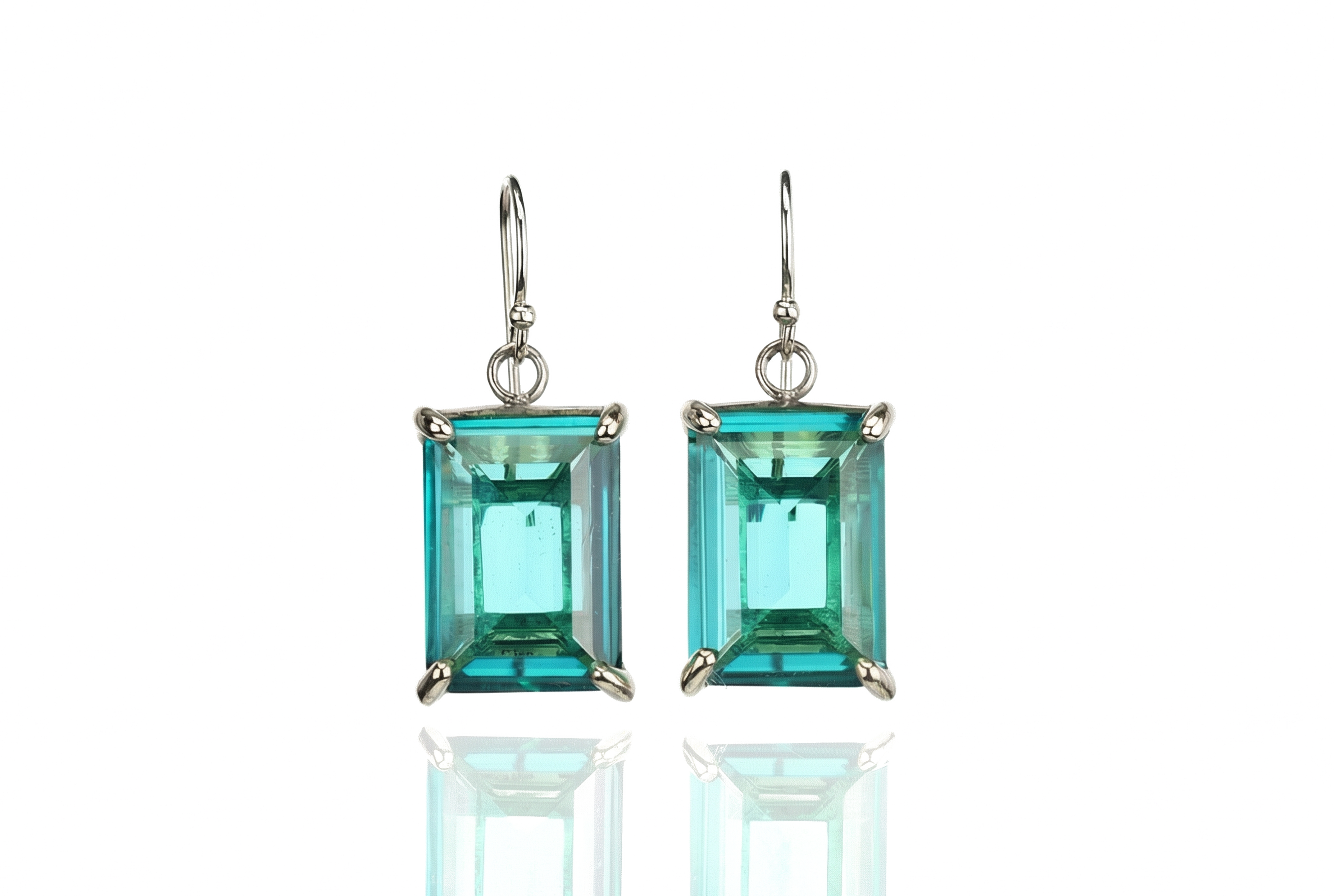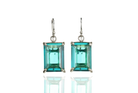These Blue Tourmaline Dangle Earrings feature striking rectangular emerald-cut gemstones set in a gold prong setting. The vibrant blue hue and sophisticated design make them the perfect October birthstone accessory or statement jewelry piece for special occasions.