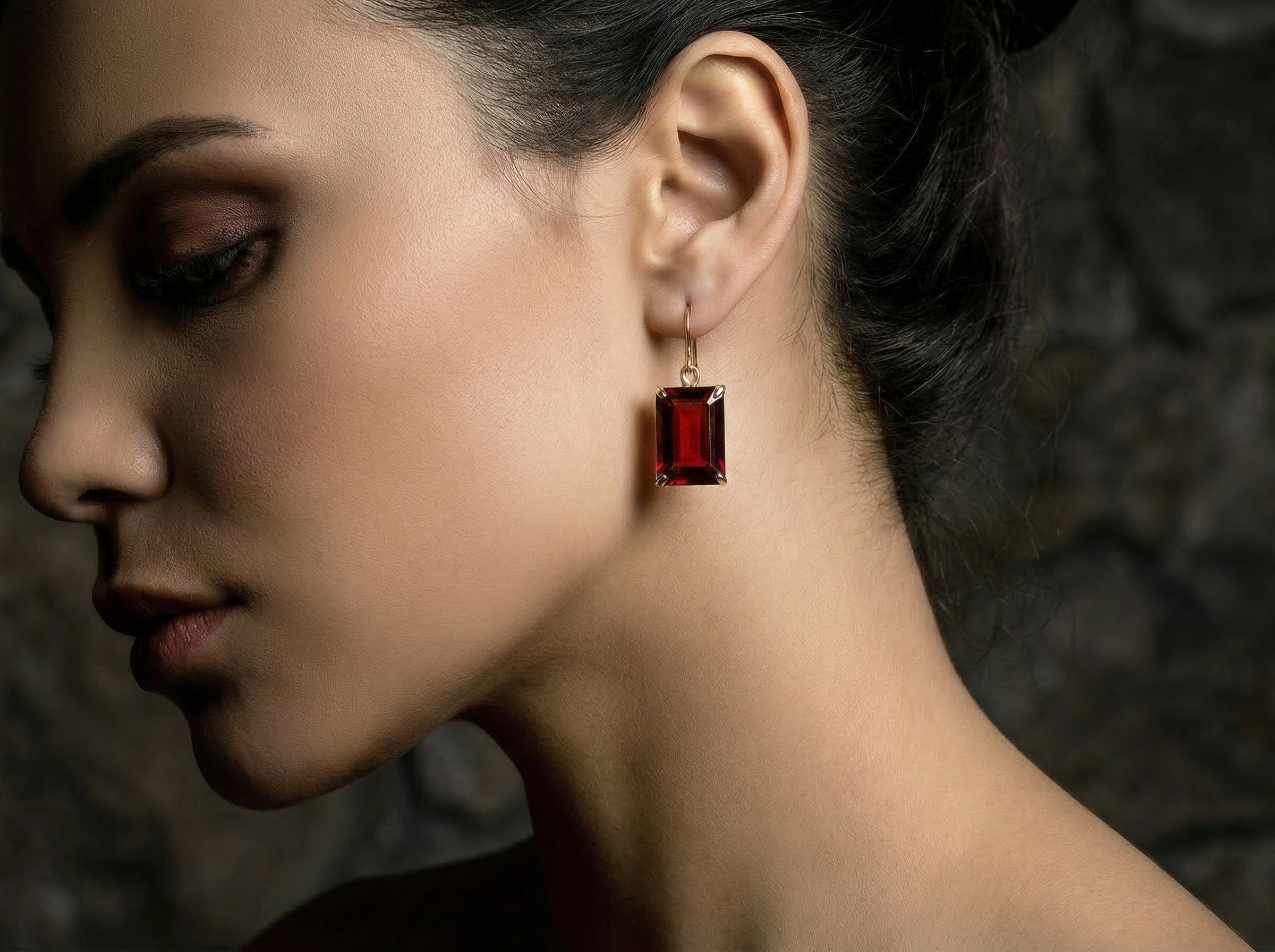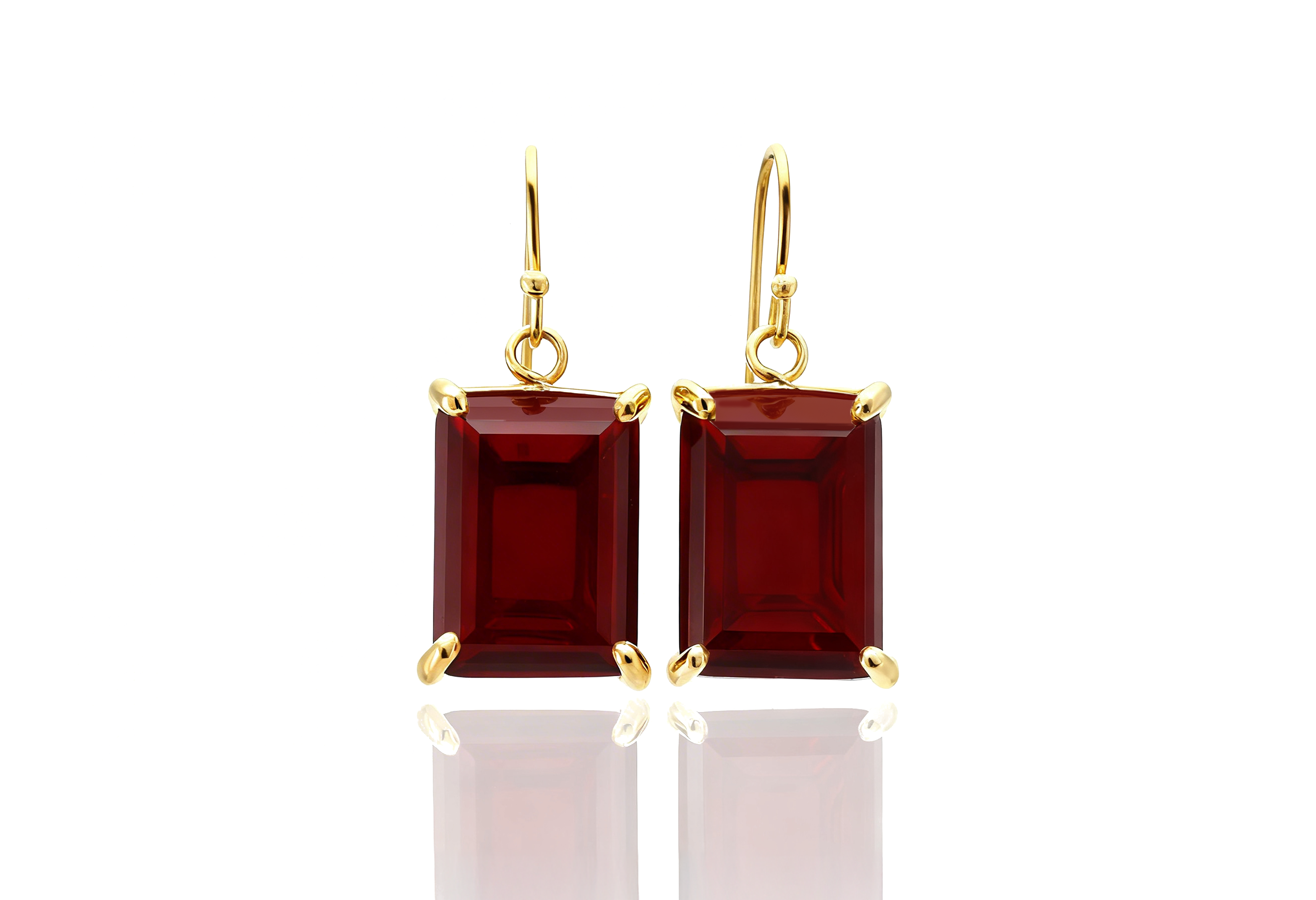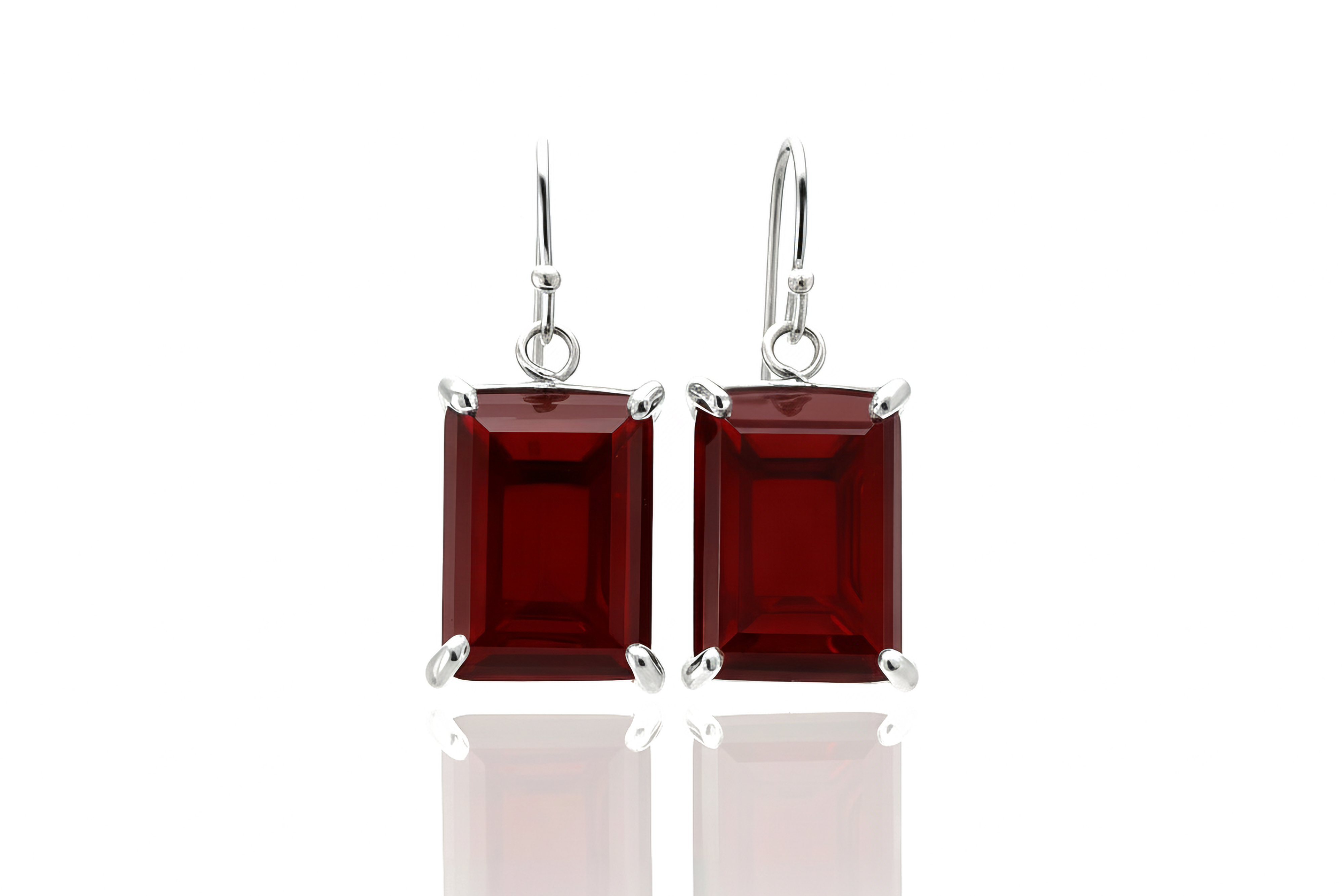 925 Silver Garnet Rectangle Dangle Earrings