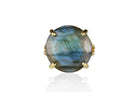 A statement jewelry that showcases the beauty of the Northern Lights right in your fingers. The gold ring centers aRound Labradorite, 16mm in diameter, set in 14k gold-filled band and prongsto complement the gorgeous gemstone. This 14k jewelry for women from Anemone is majestic and is sure to capture hearts and eyes with its beauty.