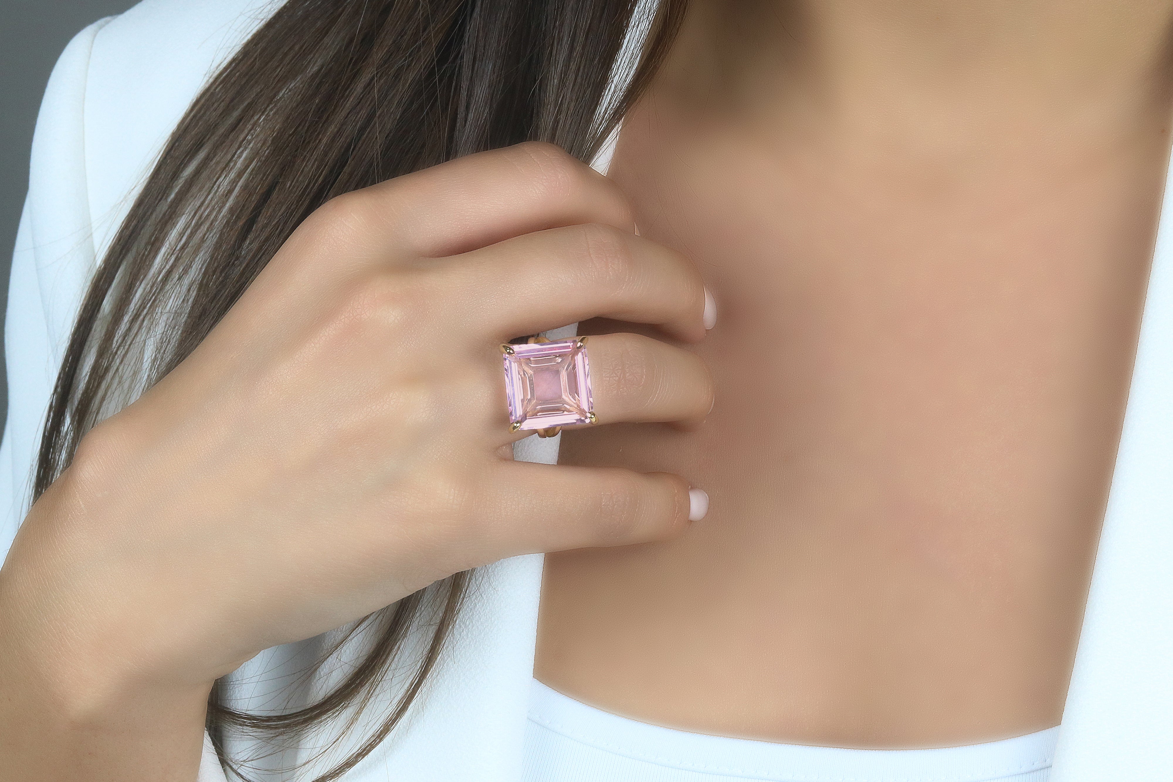 This square rose quartz ring is crafted in solid 14k gold with a bold, modern shape. The soft pink quartz is known as the stone of love, symbolizing compassion and harmony. Designed as a large cocktail ring, it makes a stunning statement piece while carrying a meaningful touch. Perfect for women who value both beauty and symbolism, this rose quartz ring is ideal for special occasions or as a meaningful everyday accessory.