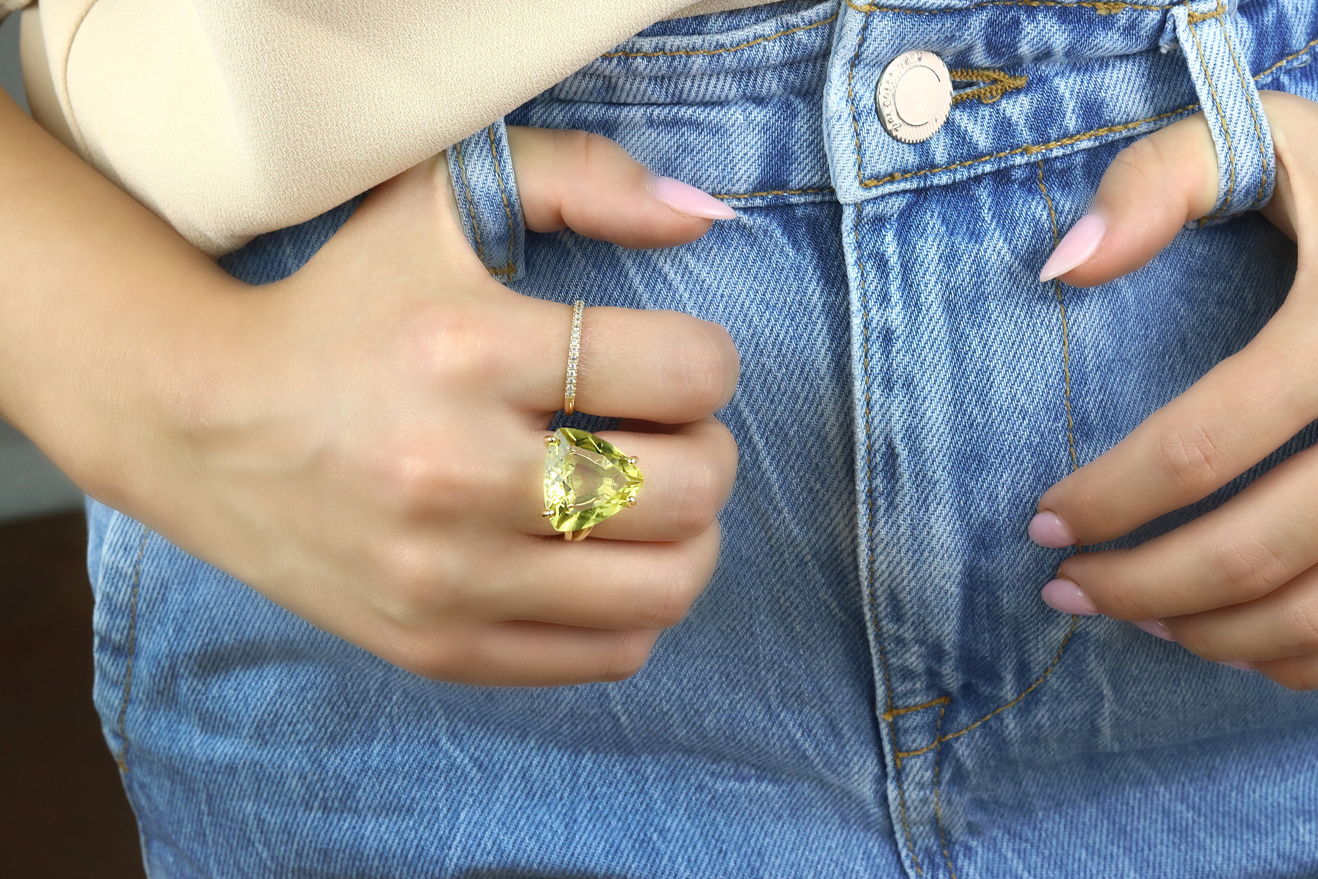 Statement Lemon Quartz Trillion Cocktail Ring