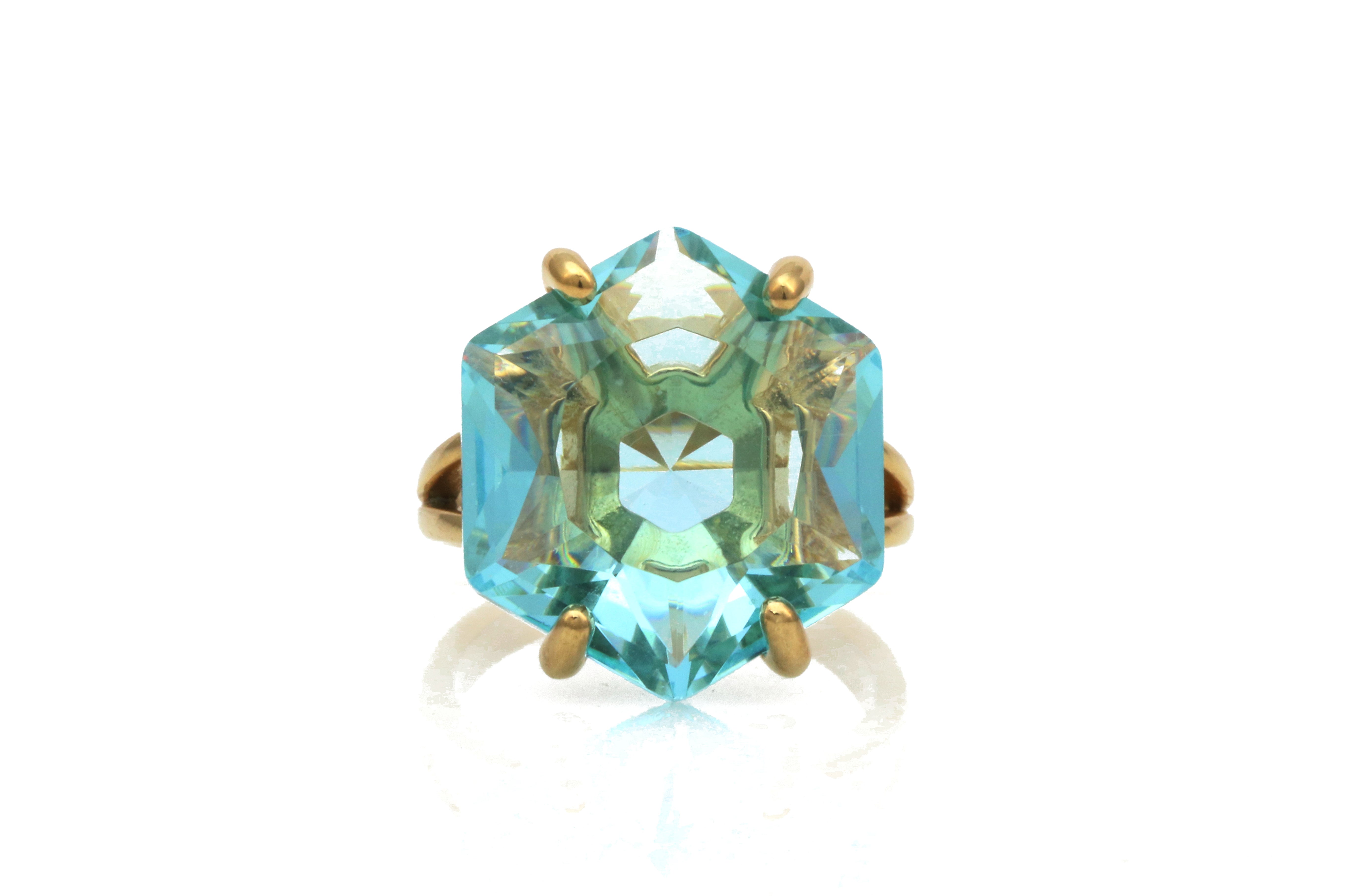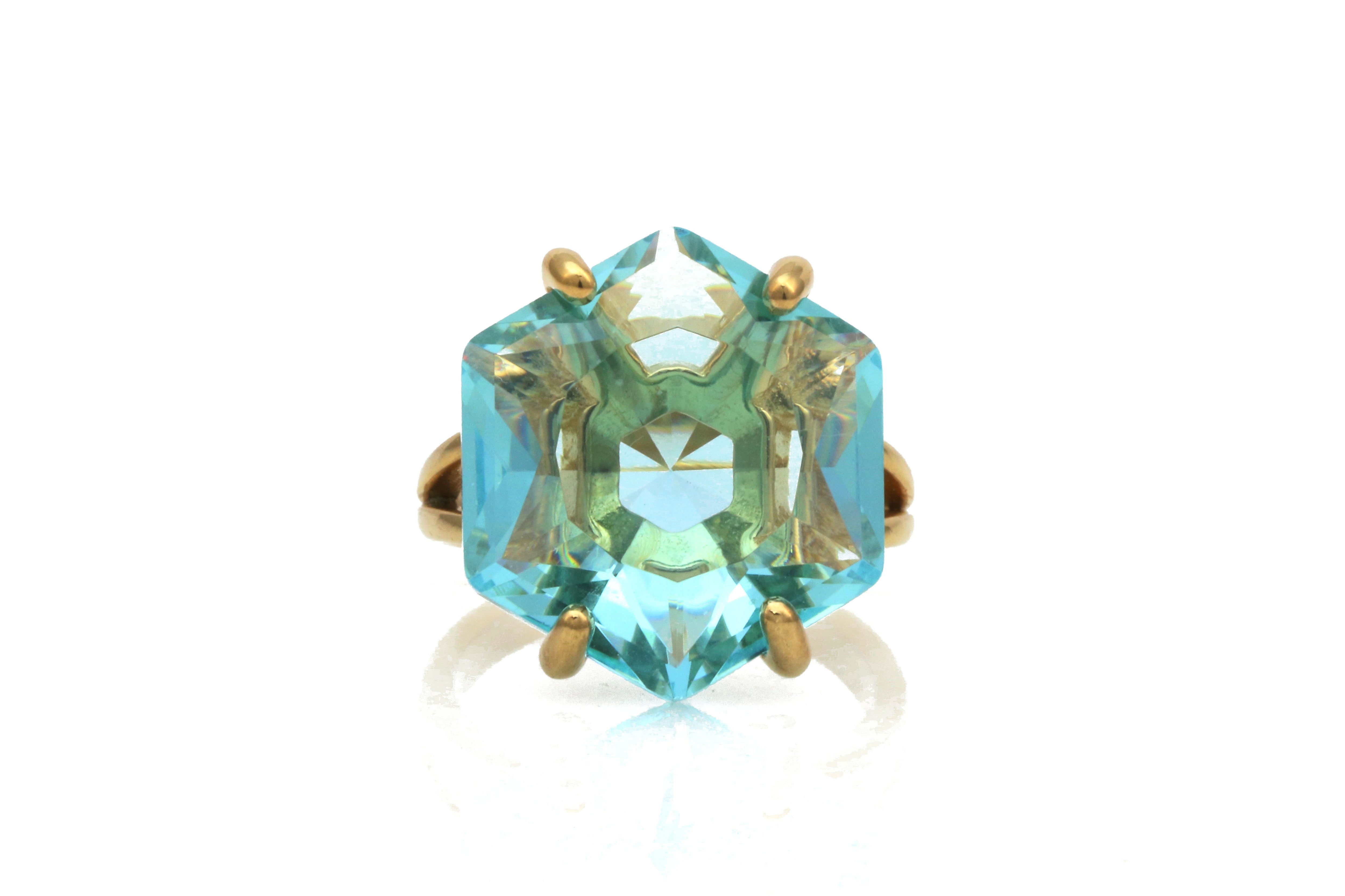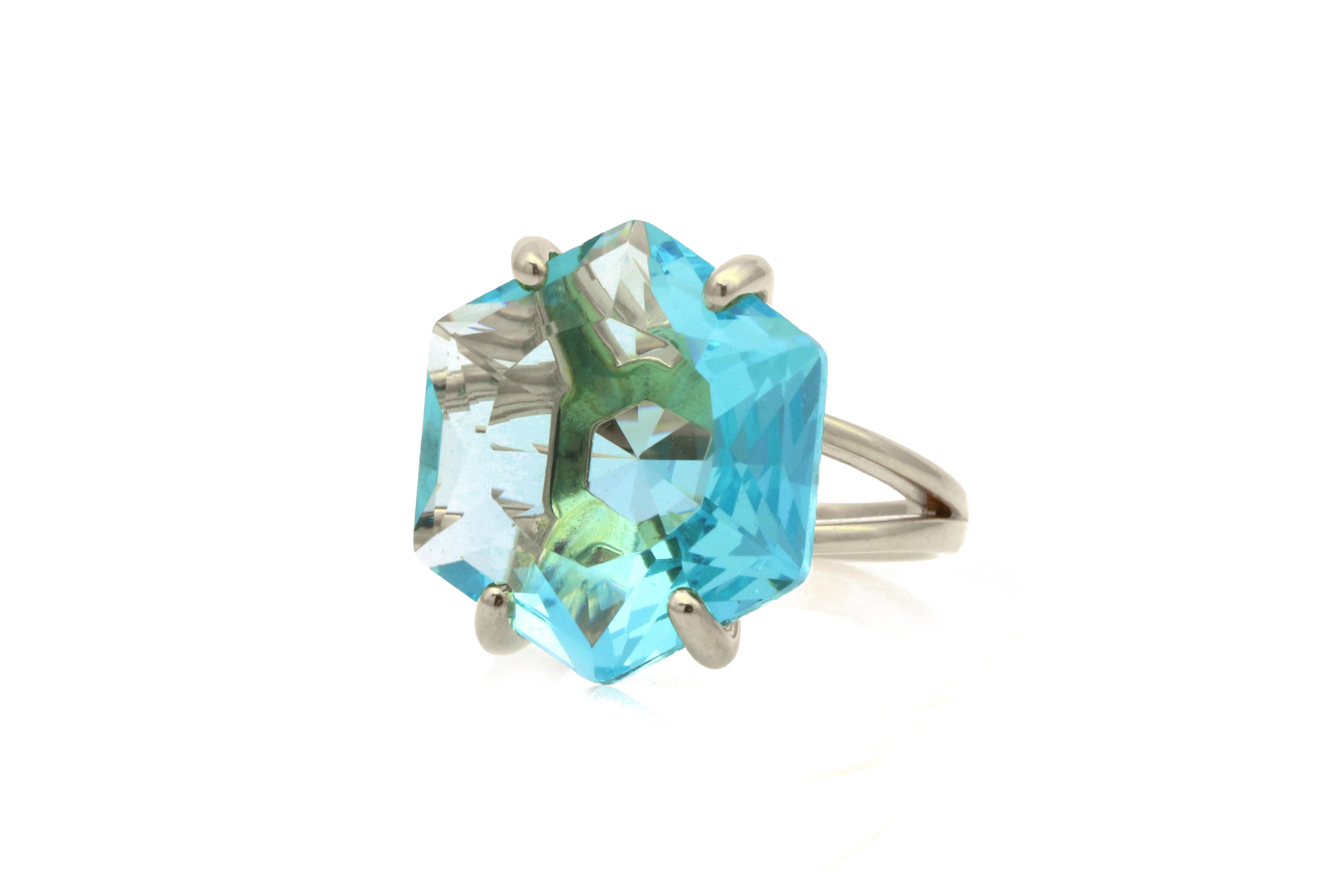 This hexagon topaz ring is a bold yet elegant piece featuring a radiant faceted gemstone set in 18k gold vermeil. The geometric hexagon cut enhances the natural sparkle of the topaz, symbolizing clarity and balance. Perfect as a statement ring or a thoughtful November birthstone gift, this handcrafted piece offers modern sophistication and timeless charm.