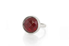 This Garnet Gemstone Bezel Ring is a stunning statement piece crafted in 14k solid gold. The bezel-set garnet, a round semiprecious gemstone, shines beautifully against the brushed gold band. As a January birthstone ring, it is both meaningful and timeless, perfect for special occasions or everyday wear.