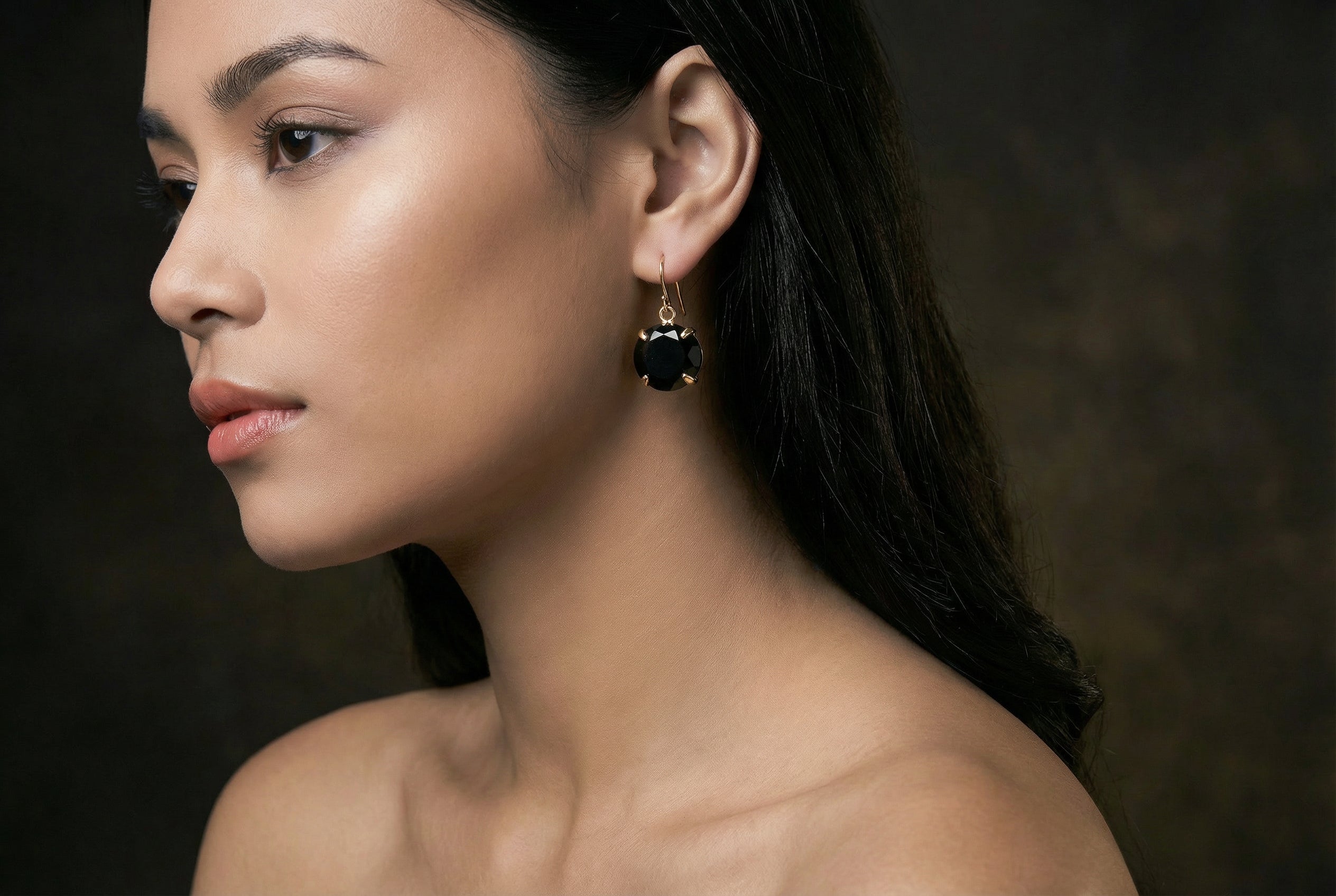 • Dark and splendid pair of jewelry earrings.
