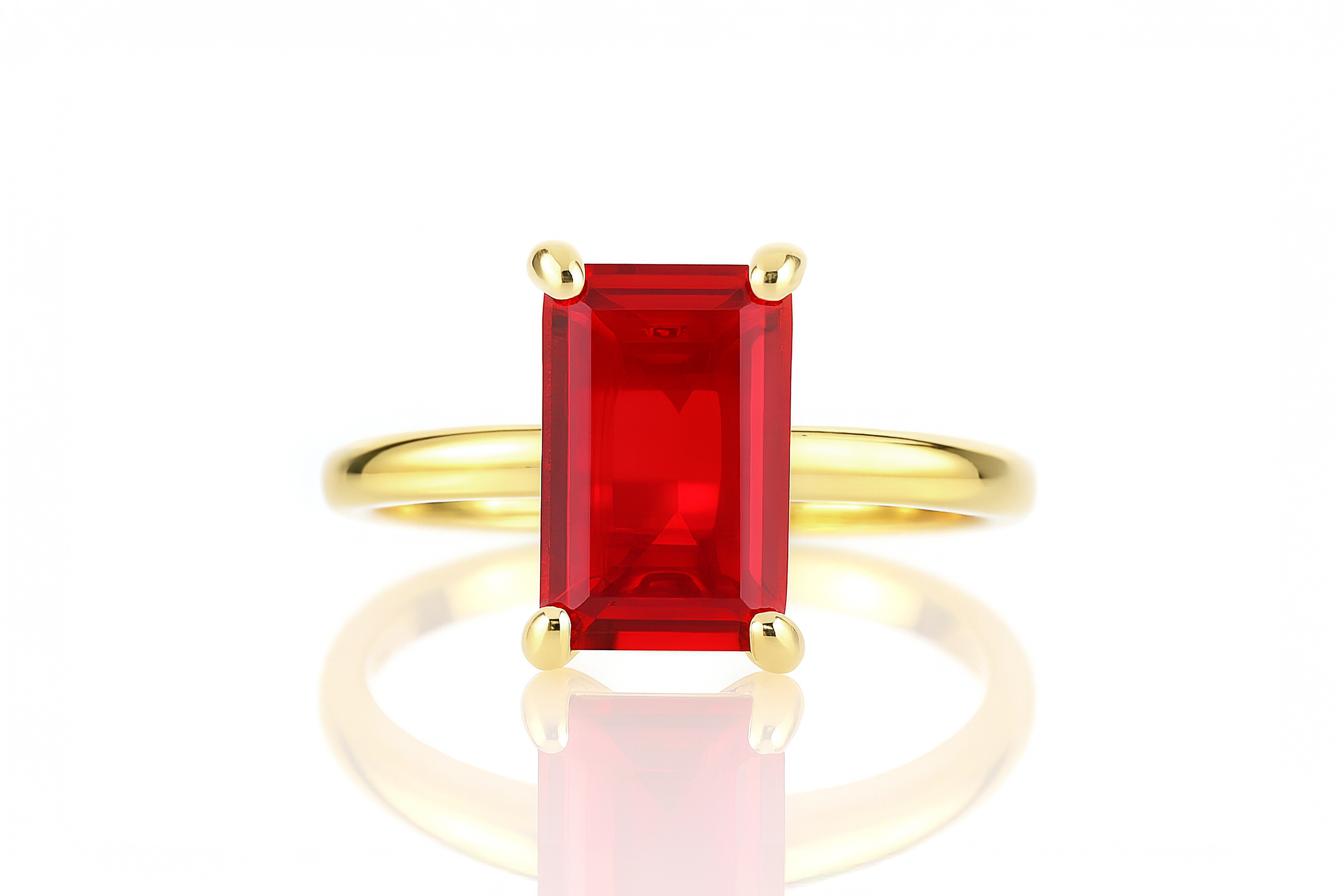 A gorgeous red jewelry for women that flaunts a July birthstone, Ruby. This Ruby ring is set in prongs of 925 Sterling silver. This piece is designed with a classic thin single band. Ruby is a timeless representation of passion and love.