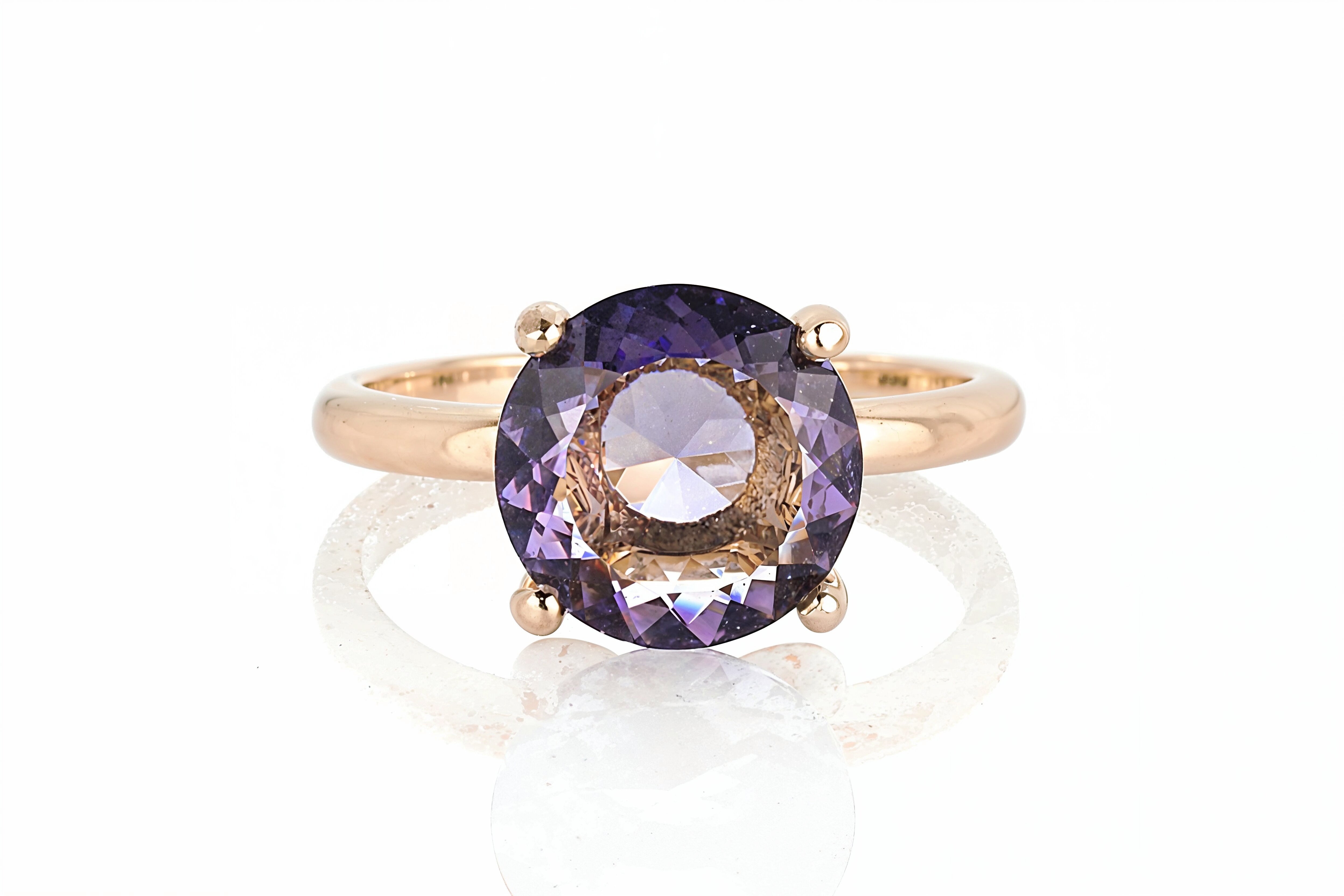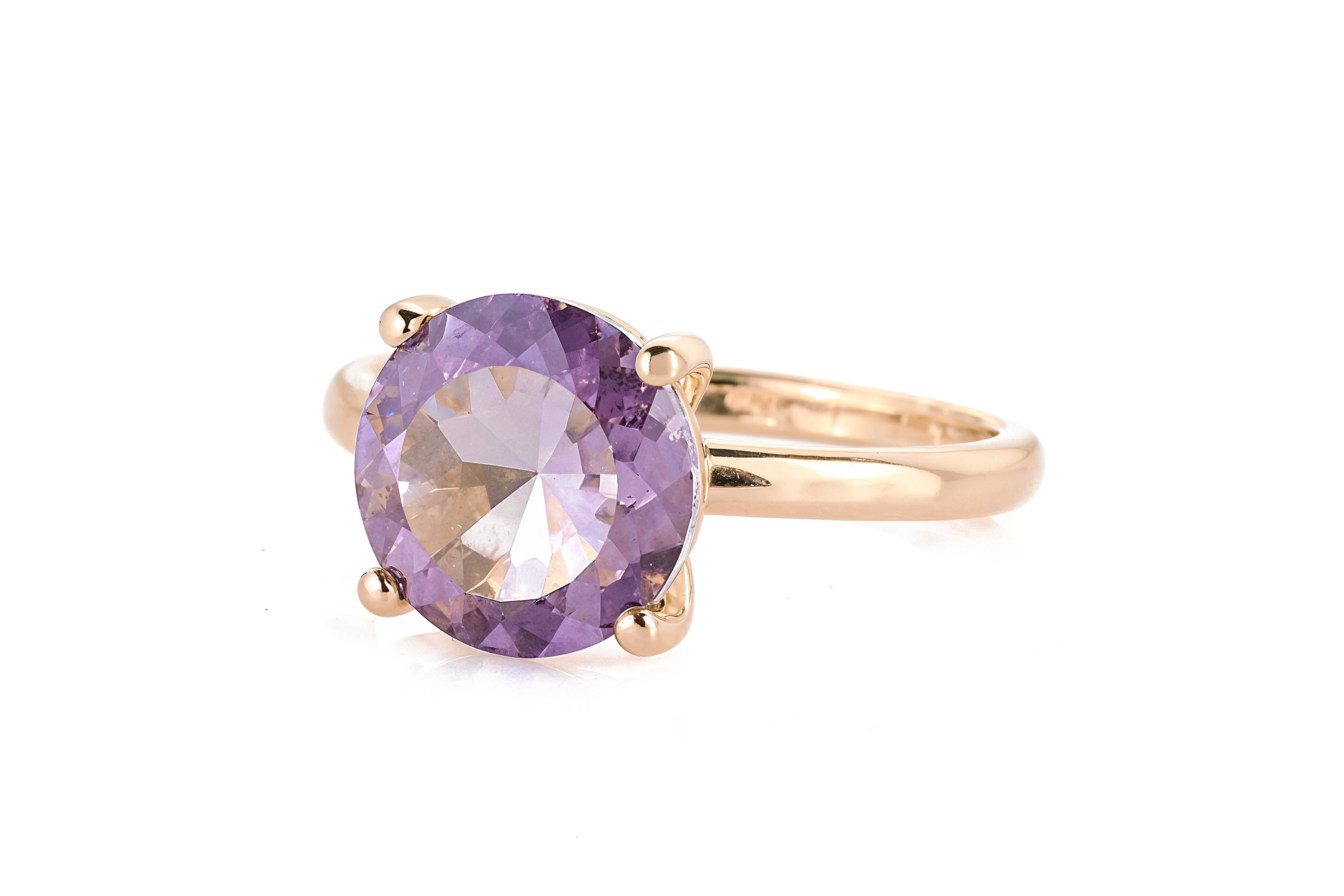 Experience the sheer beauty of this Rose Gold Amethyst Ring. Set in a 14k rose gold band, the ring features an exquisite amethyst gemstone, known as the birthstone for February. The prong setting allows the amethyst to truly shine, making this ring a perfect choice for an engagement or any significant occasion. With its timeless appeal and rich color, this piece is bound to be treasured for years to come.
