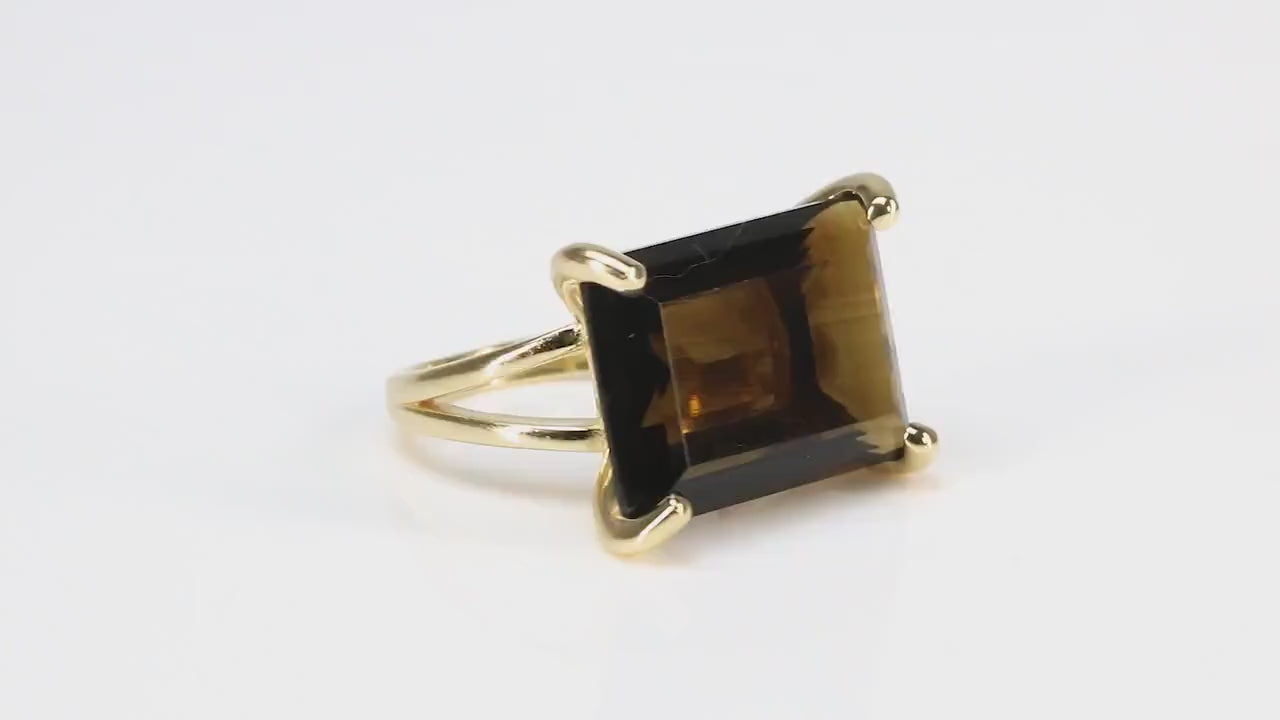 14k Yellow Gold Ring with Smoky Quartz Stone
