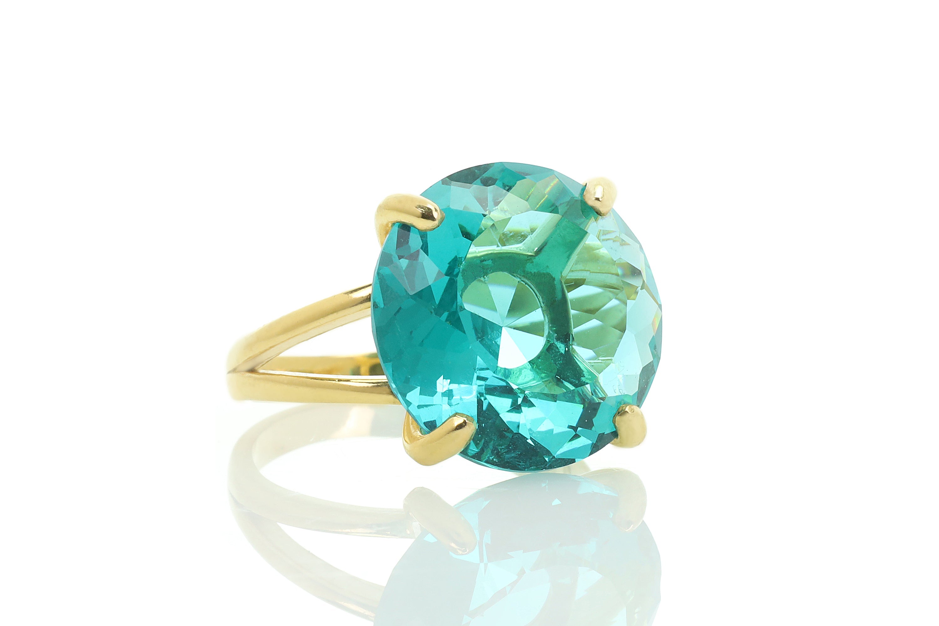 Blue Round Cut Tourmaline Gold Gemstone Ring