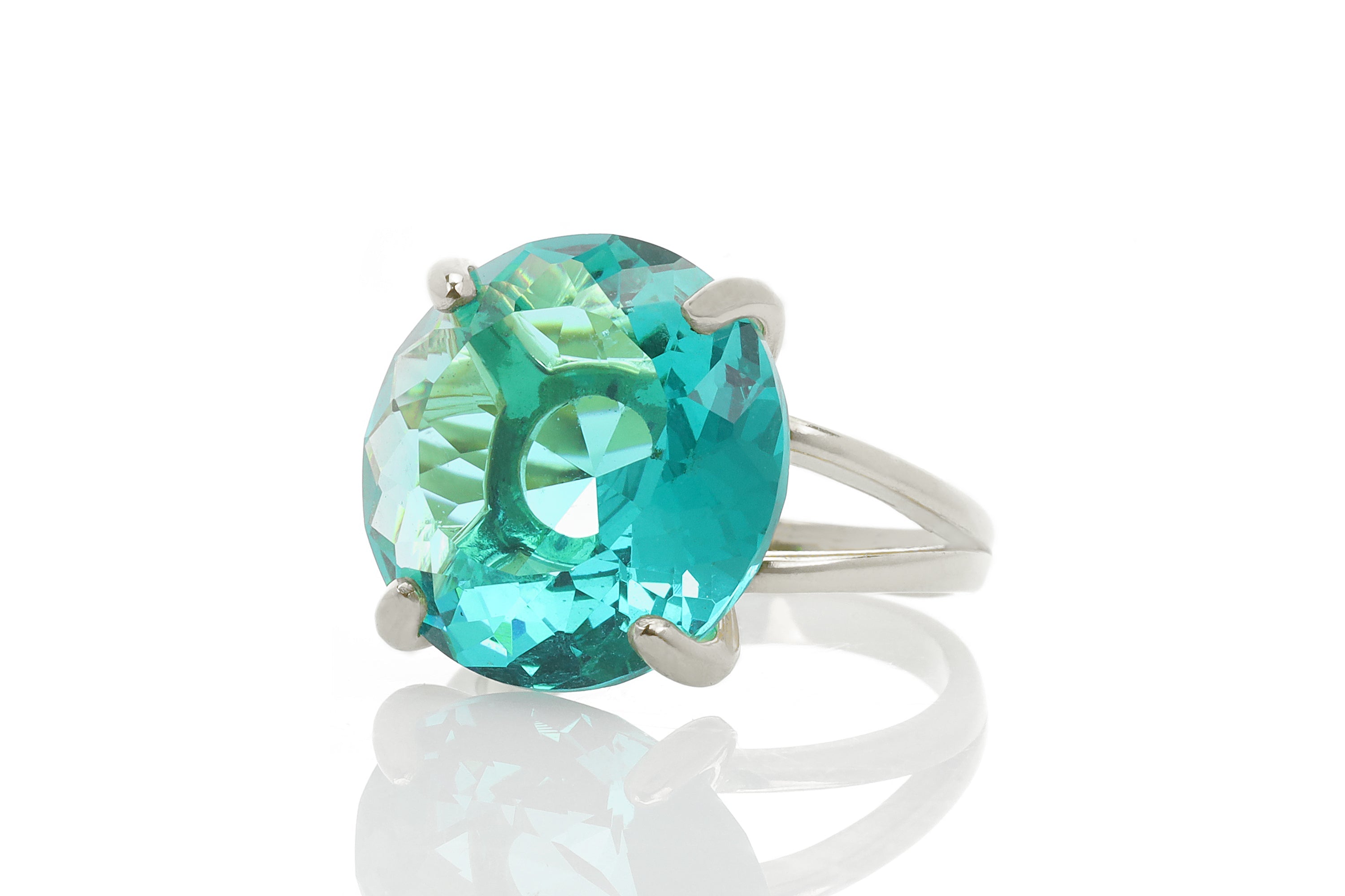 Make a statement with our Blue Tourmaline Solitaire Ring, featuring a stunning round cut blue tourmaline set in a luxurious gold band. This elegant ring is perfect for women who appreciate bold and beautiful jewelry. The blue tourmaline, an October birthstone, adds a touch of sophistication and color to any outfit. Whether you're dressing up for a special occasion or adding a pop of color to your everyday look, this ring is a perfect choice