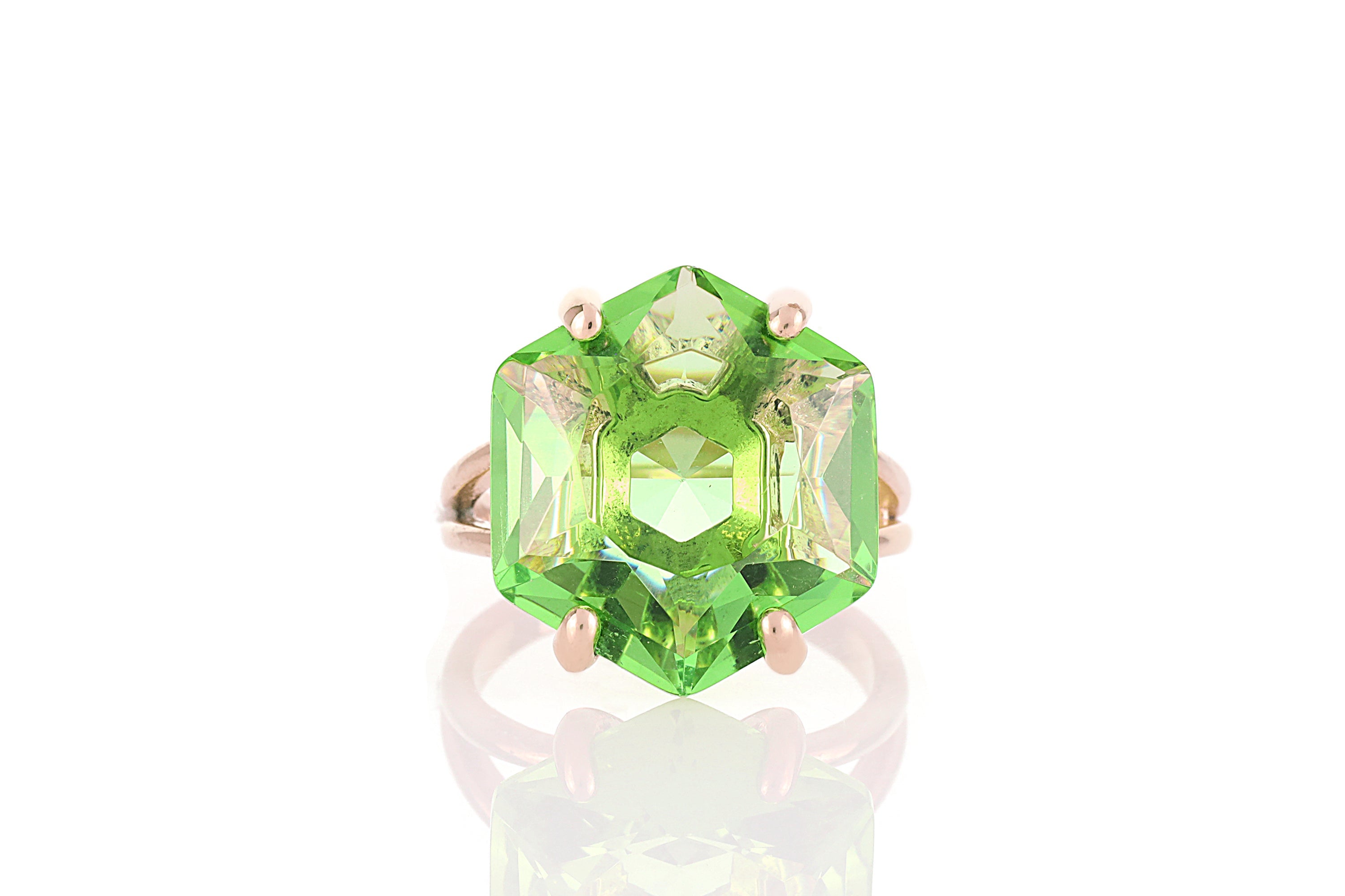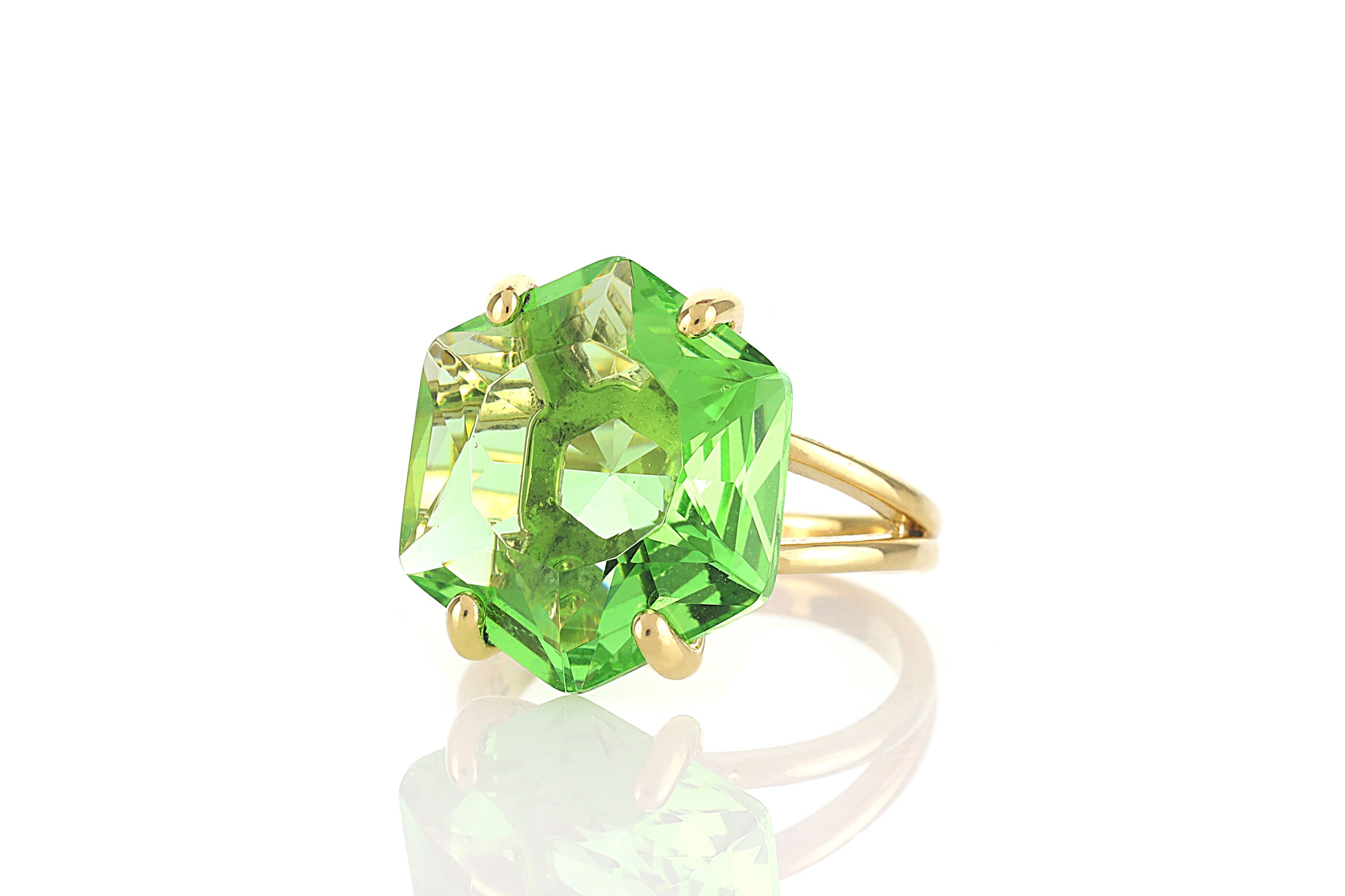 Green Tourmaline Hexagon Cut Gemstone Gold Ring