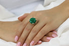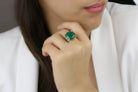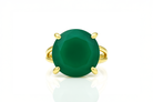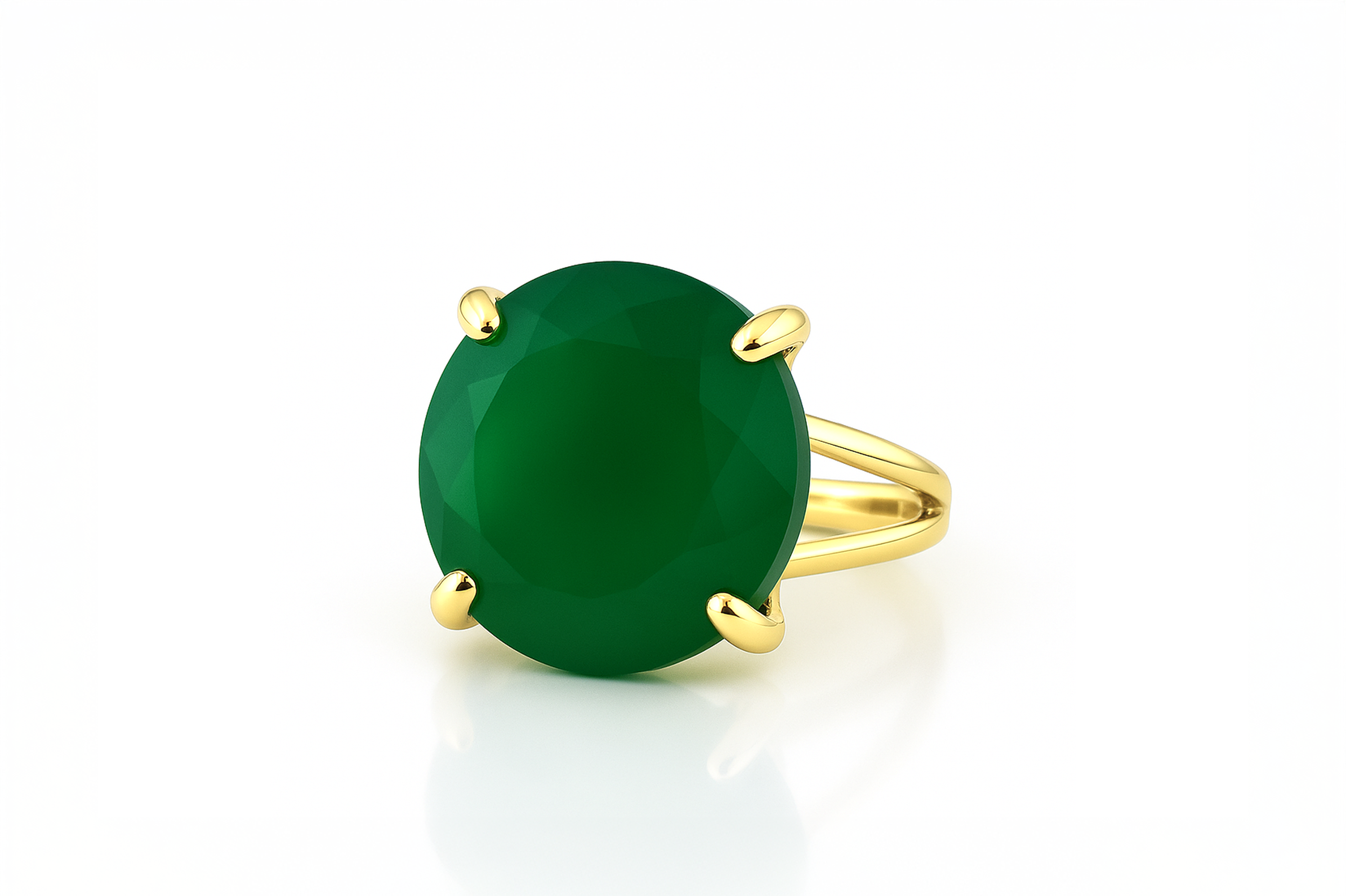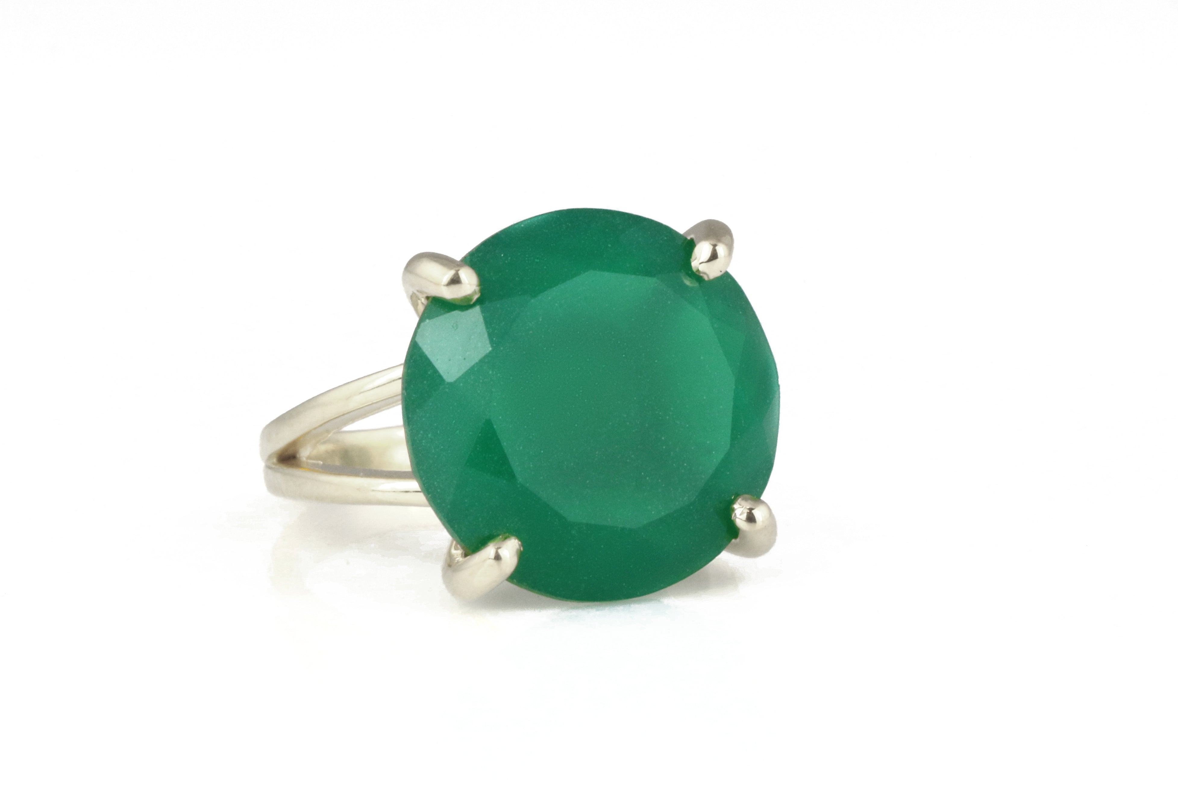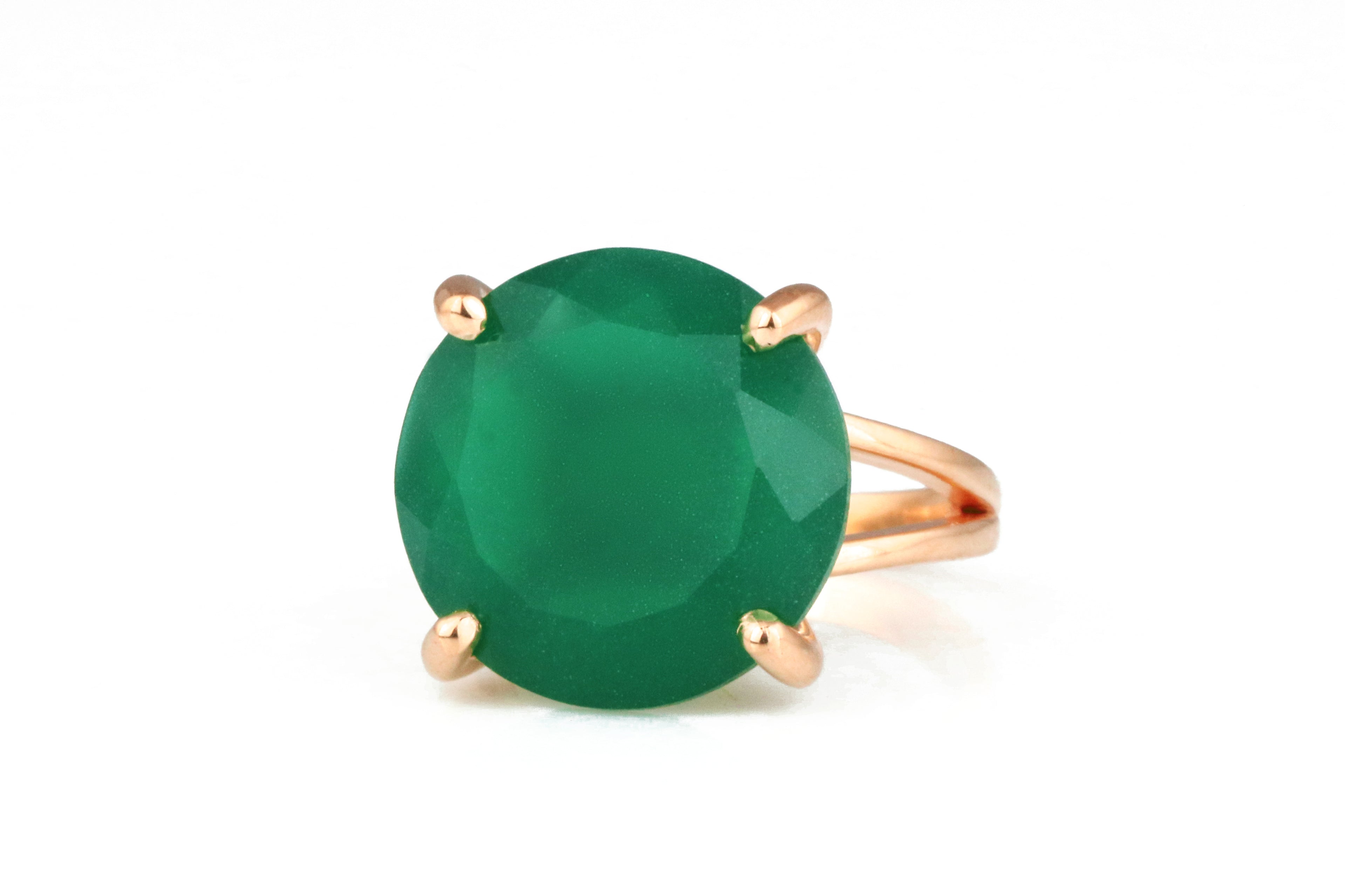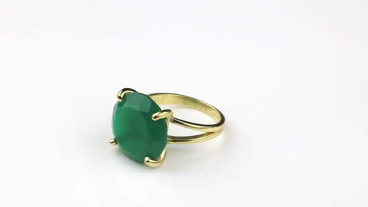 This handcrafted statement ring features a vivid green onyx gemstone set in gold for a bold yet refined look. The round faceted stone catches the light beautifully, making it perfect for everyday wear or special occasions. Each ring is handmade with care and customizable in size and metal type, offering you a truly personal piece of jewelry.