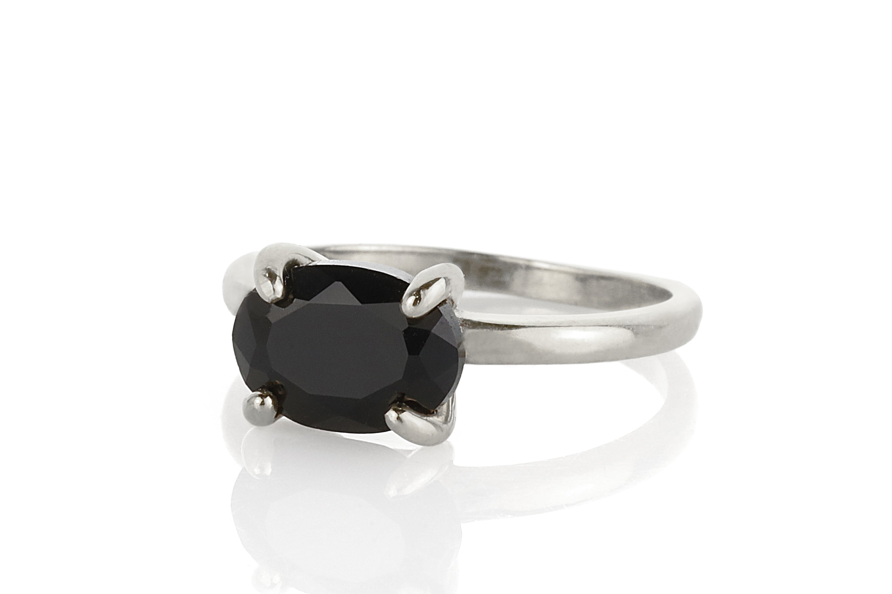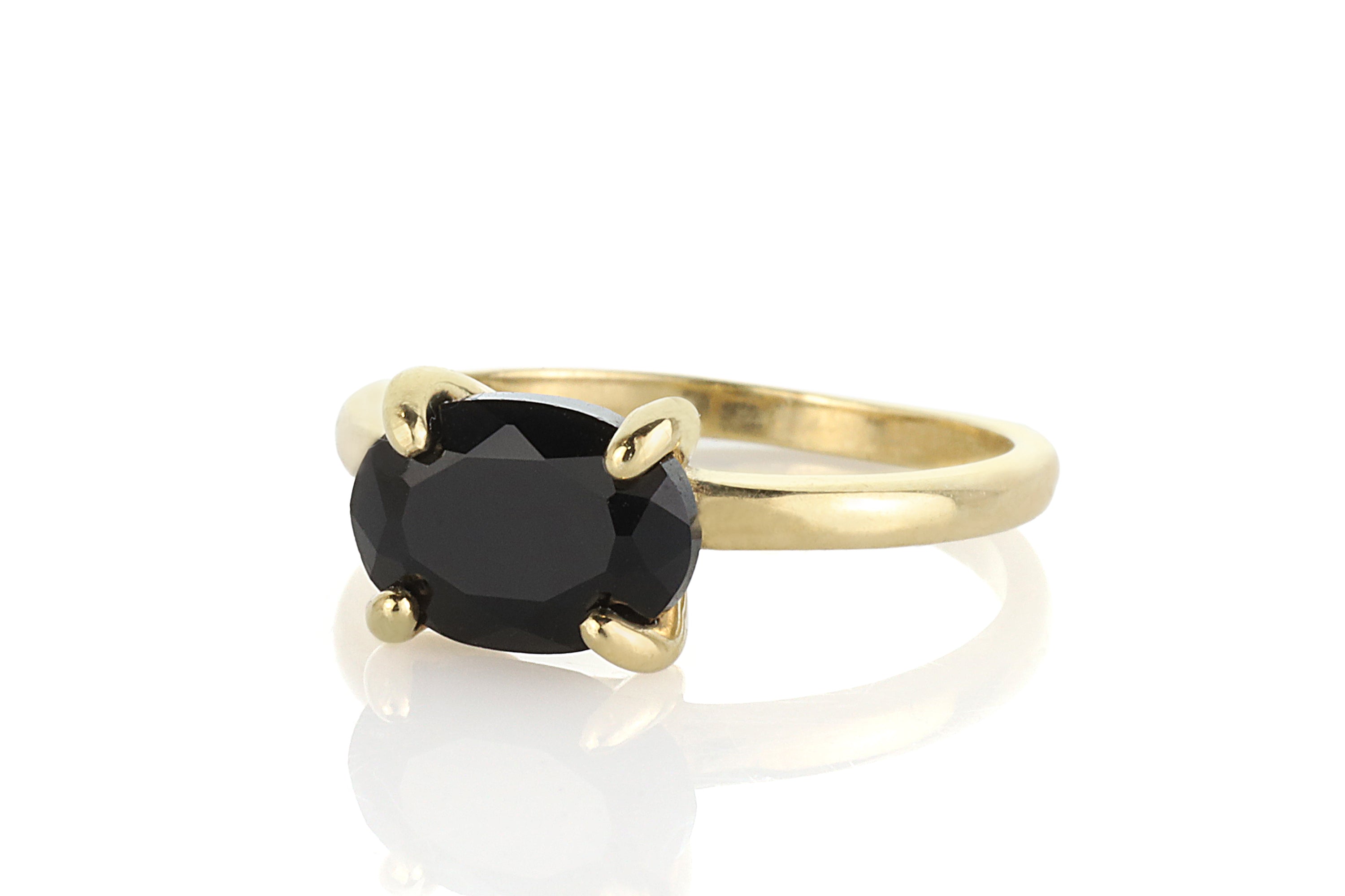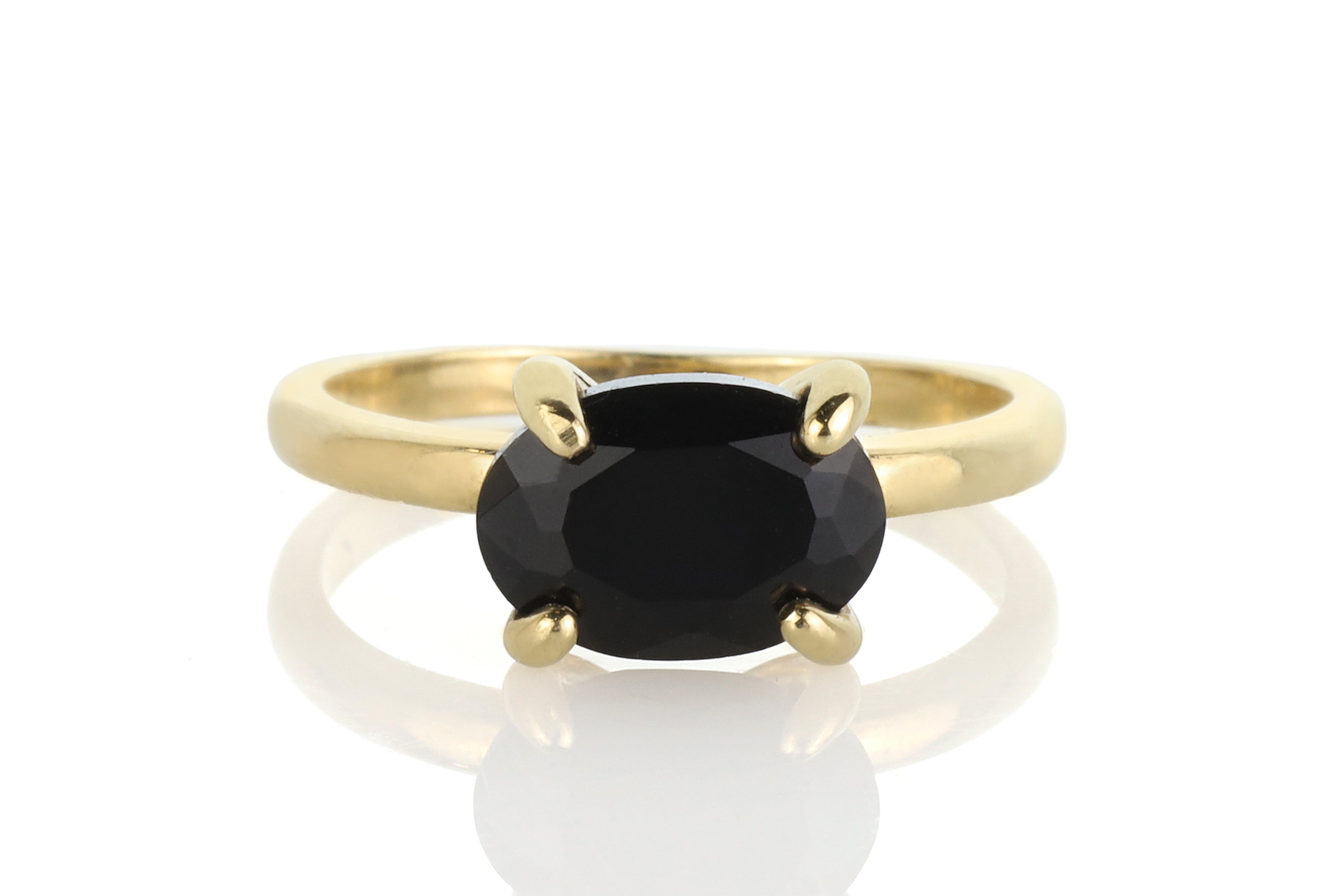 A handmade jewelry by Anemone. An oval ring that flaunts a Black Onyx gemstone, set and pronged in 14k gold filled jewelry band. Great as formal or evening ring, gift jewelry, gothic jewelry or styled with other stacking rings.