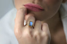 Take in the lovely feature and luminescence of this unique ring fashioned with a Labradorite centerpiece. This solitaire ring brings joyful hues that dance with the light. A standout in our collection of gemstone rings for women.