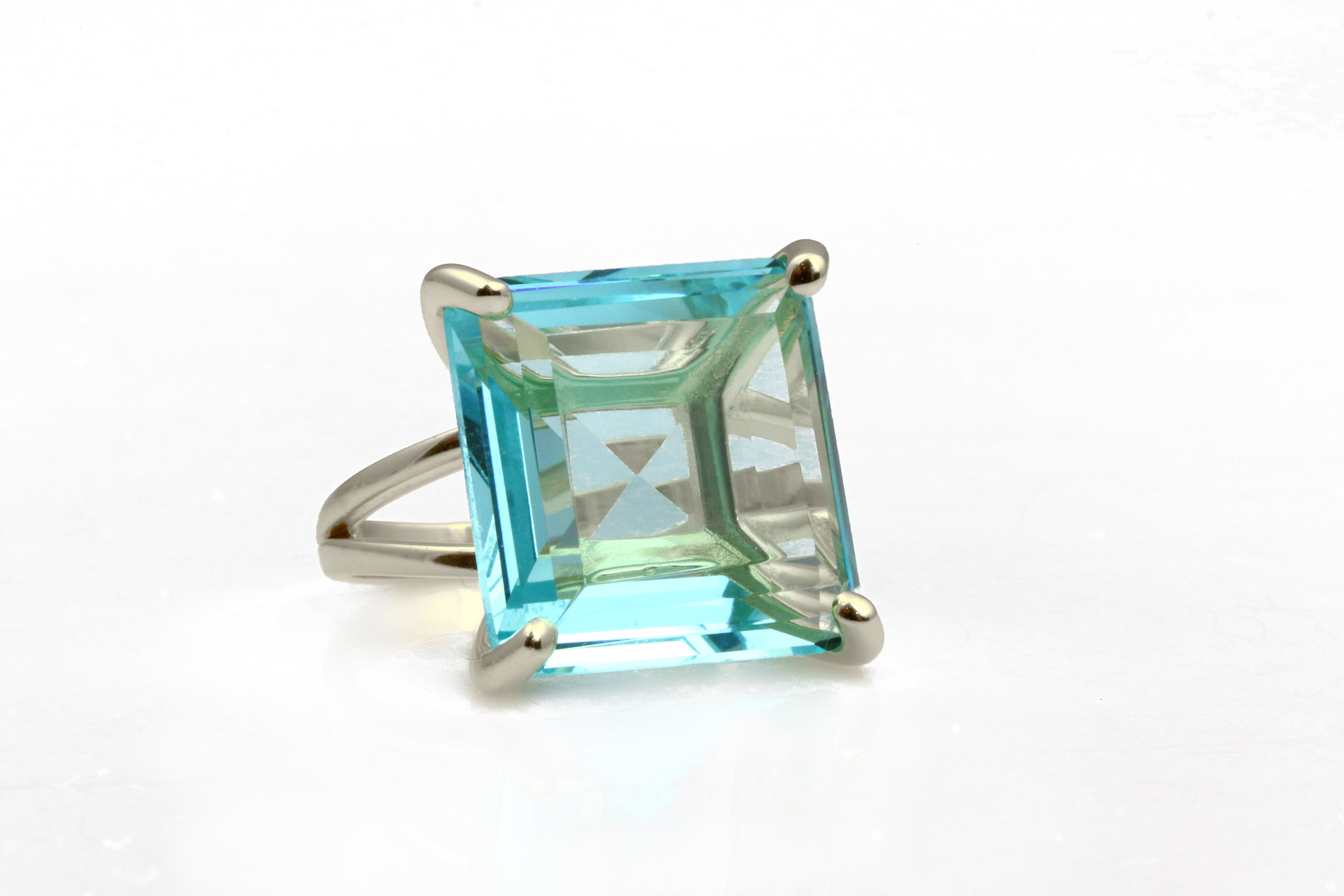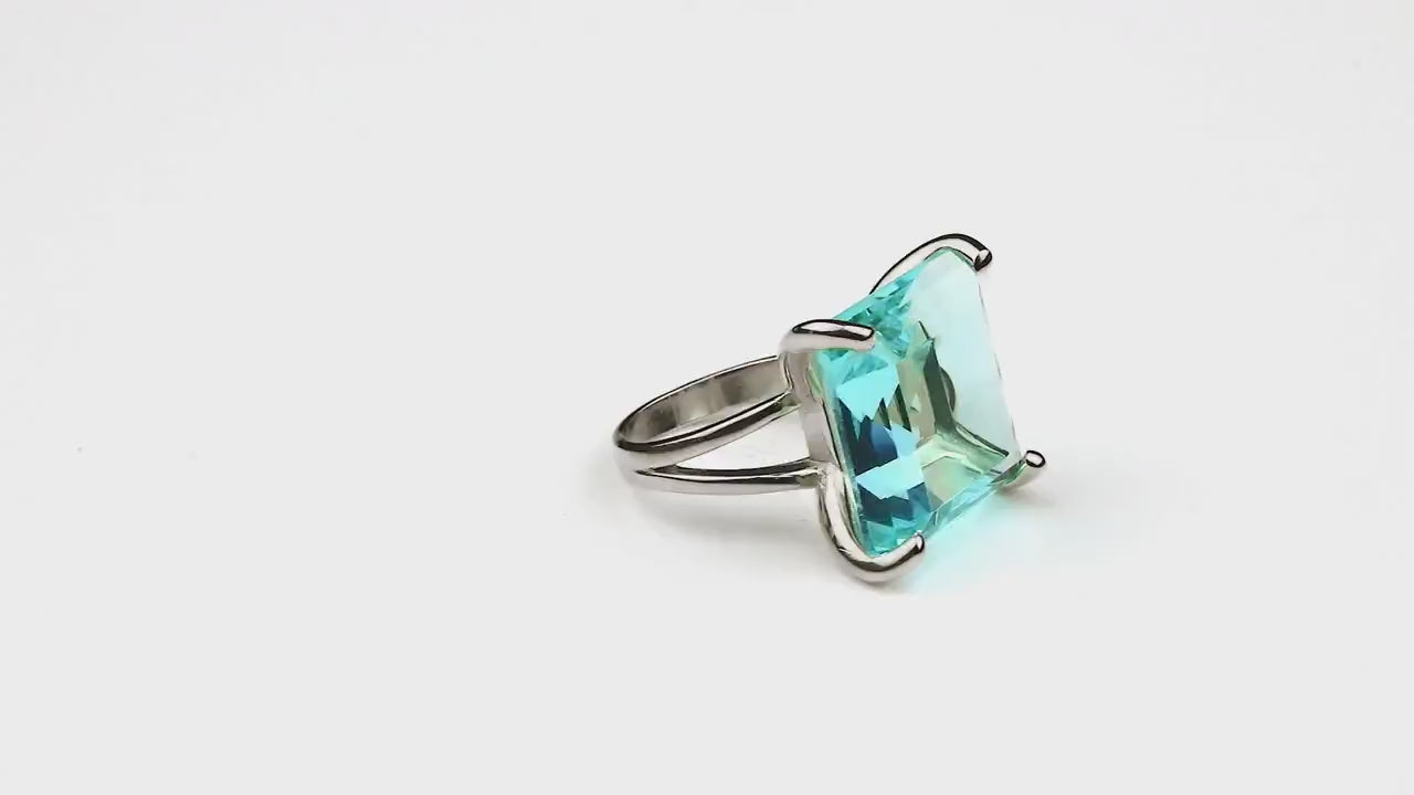 This sterling silver blue topaz ring radiates classic charm with a modern edge. The square-cut gemstone reflects stunning shades of sky blue, beautifully complemented by the polished silver band. Handcrafted with care, this statement piece celebrates timeless elegance, perfect for special occasions or everyday sophistication.