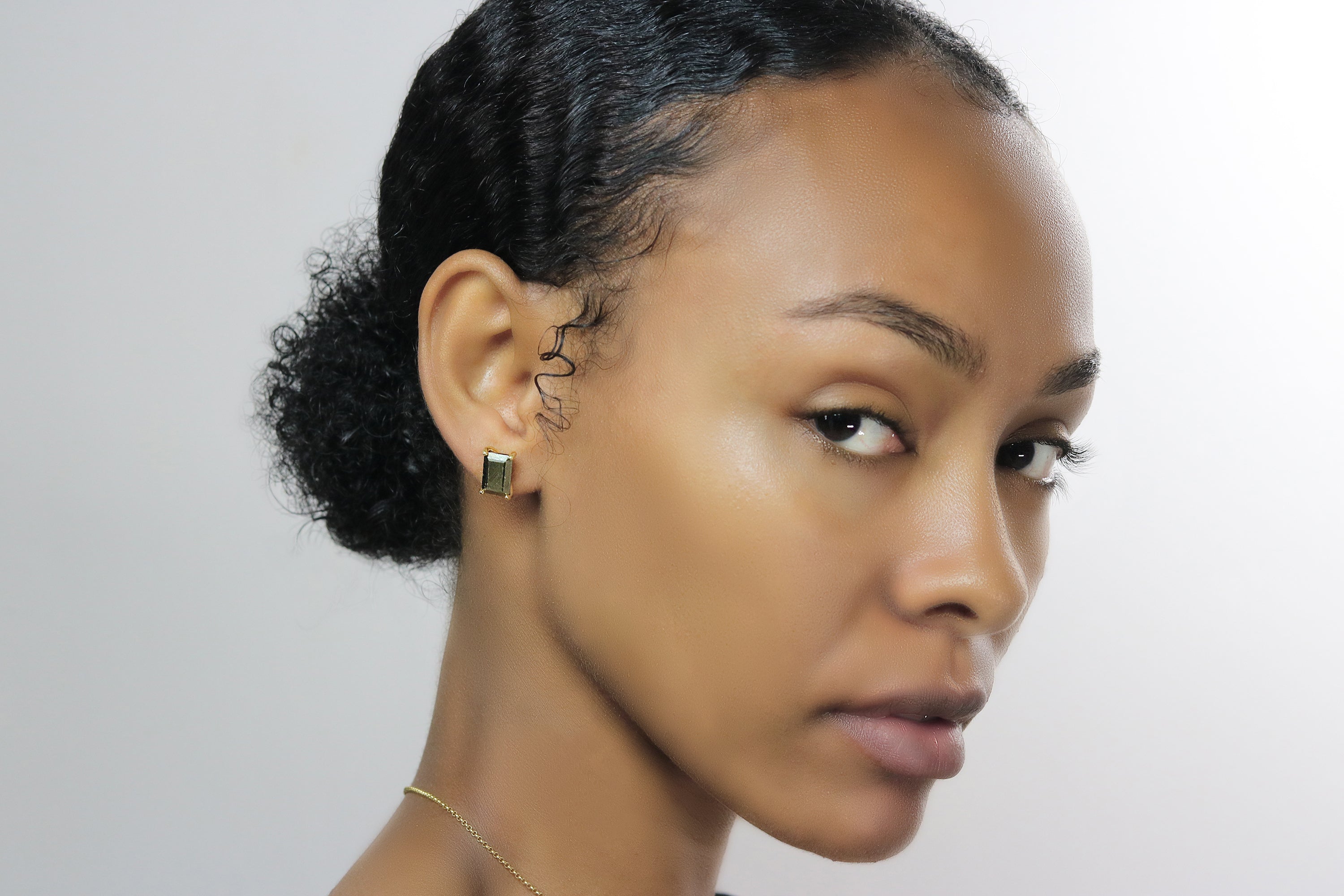 Adorable Iron Pyrite Stud Earrings in Gold