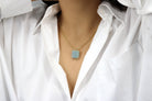 Styled with a natural Aquamarine stone, this square necklace will be an adorable adornment to your look. Whatever the occasion, this gem necklace is ready to accompany you - as a fashion piece or as a March birthstone necklace gift.