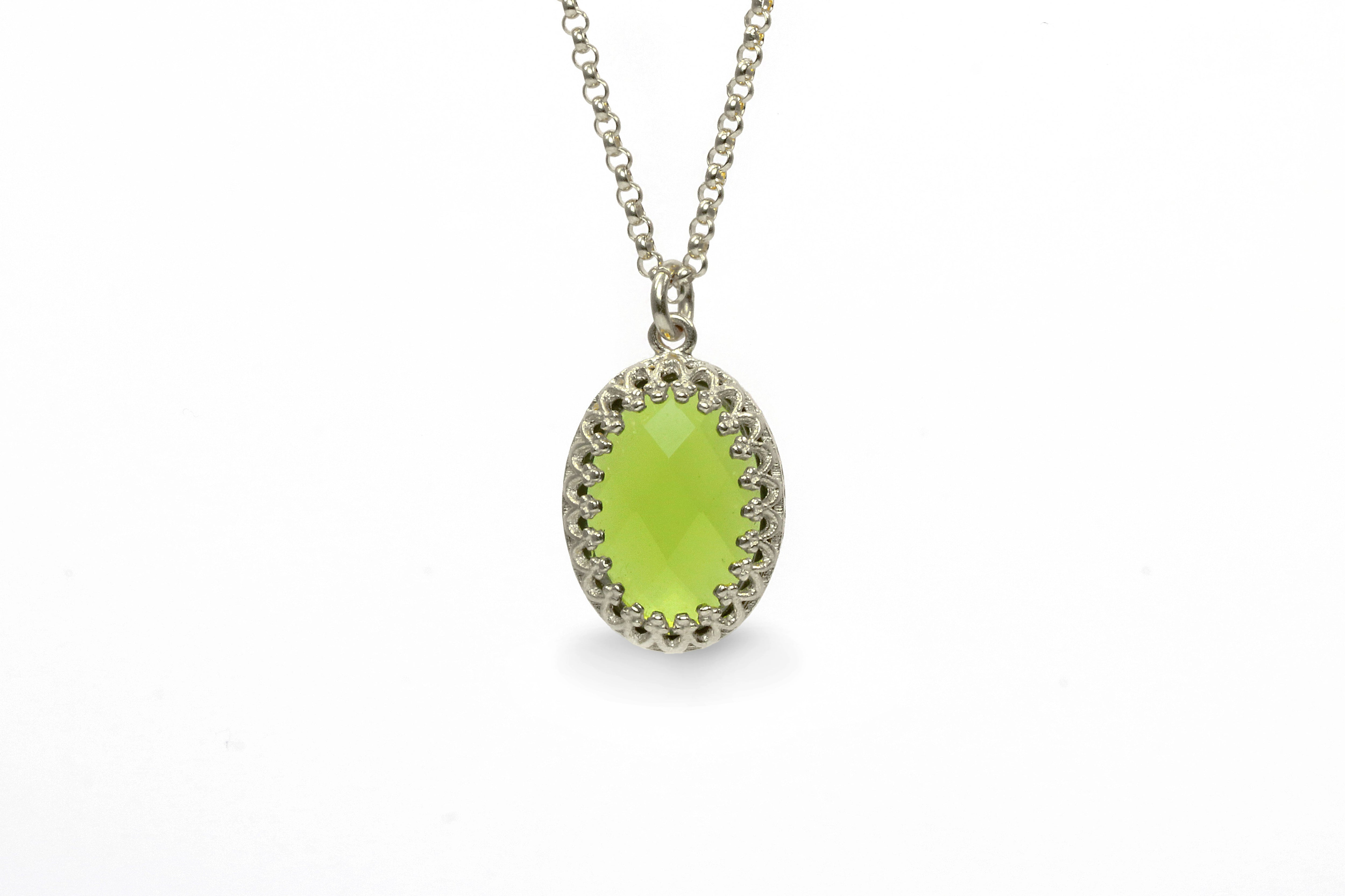 Artisan Oval Peridot Necklace in 14k Gold Filled