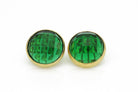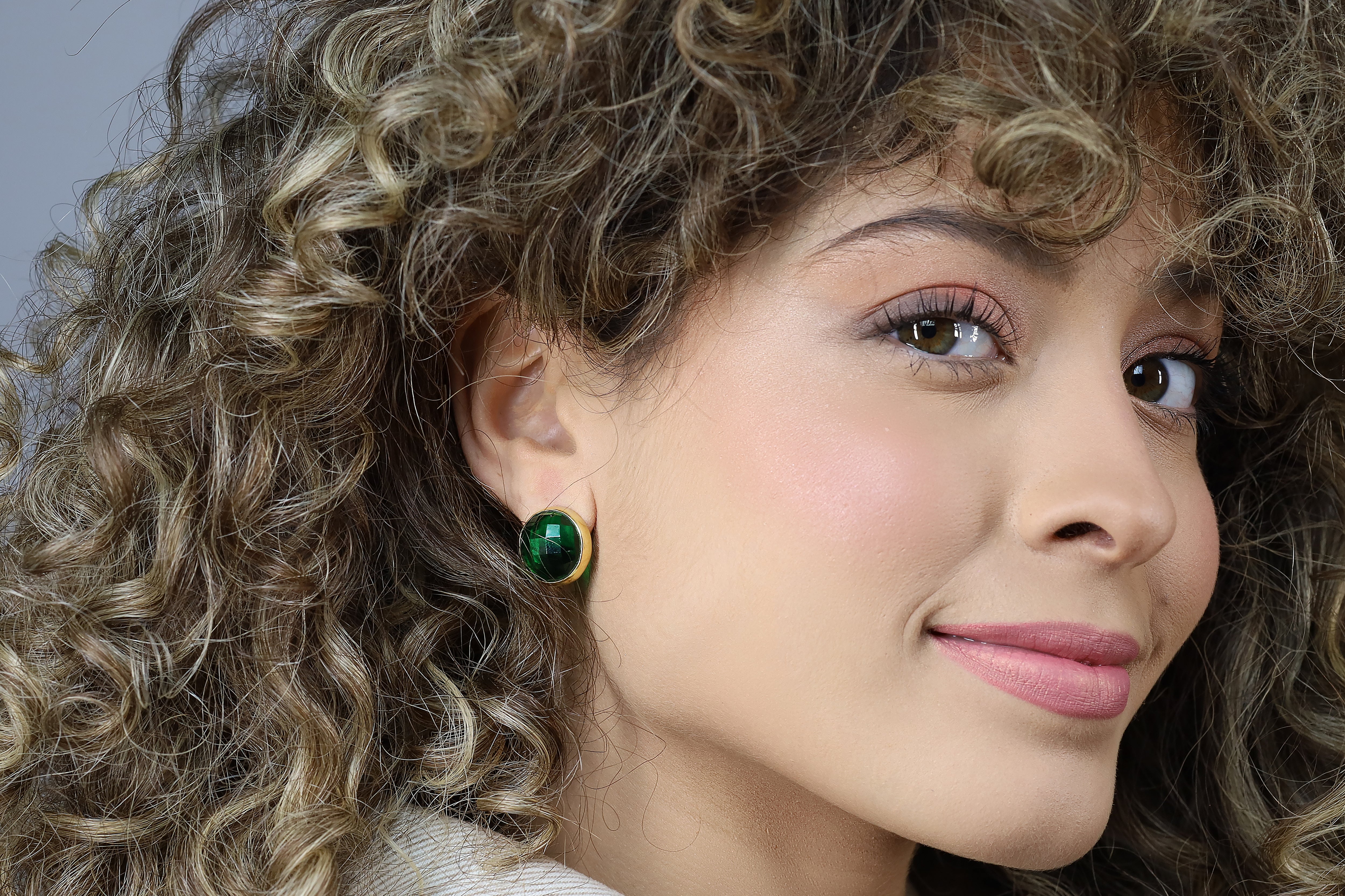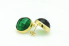 Bezel Set Emerald Gemstone Gold Stud Earrings