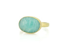 This elegant horizontal bezel set Amazonite ring is a perfect addition to any jewelry collection. The oval Amazonite gemstone is skillfully set in a horizontal orientation, creating a modern and chic look. Crafted from high-quality gold filled material, this ring offers a beautiful luster that complements the sky-blue Amazonite perfectly. It's designed to be stackable, making it a versatile piece that can be worn alone for a minimalist look or combined with other rings for a layered style. Each ring is handcrafted with care, offering a unique piece of jewelry that's as individual as you.