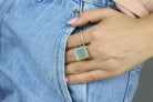 This rose gold aquamarine ring features a square princess-cut stone in a delicate double split band design. The soft blue of the aquamarine radiates calm and clarity — perfect for those born in March or anyone drawn to serene beauty. Crafted in polished pink gold, this handmade statement ring blends modern geometry with timeless charm, making it an ideal gift or centerpiece piece for your collection.