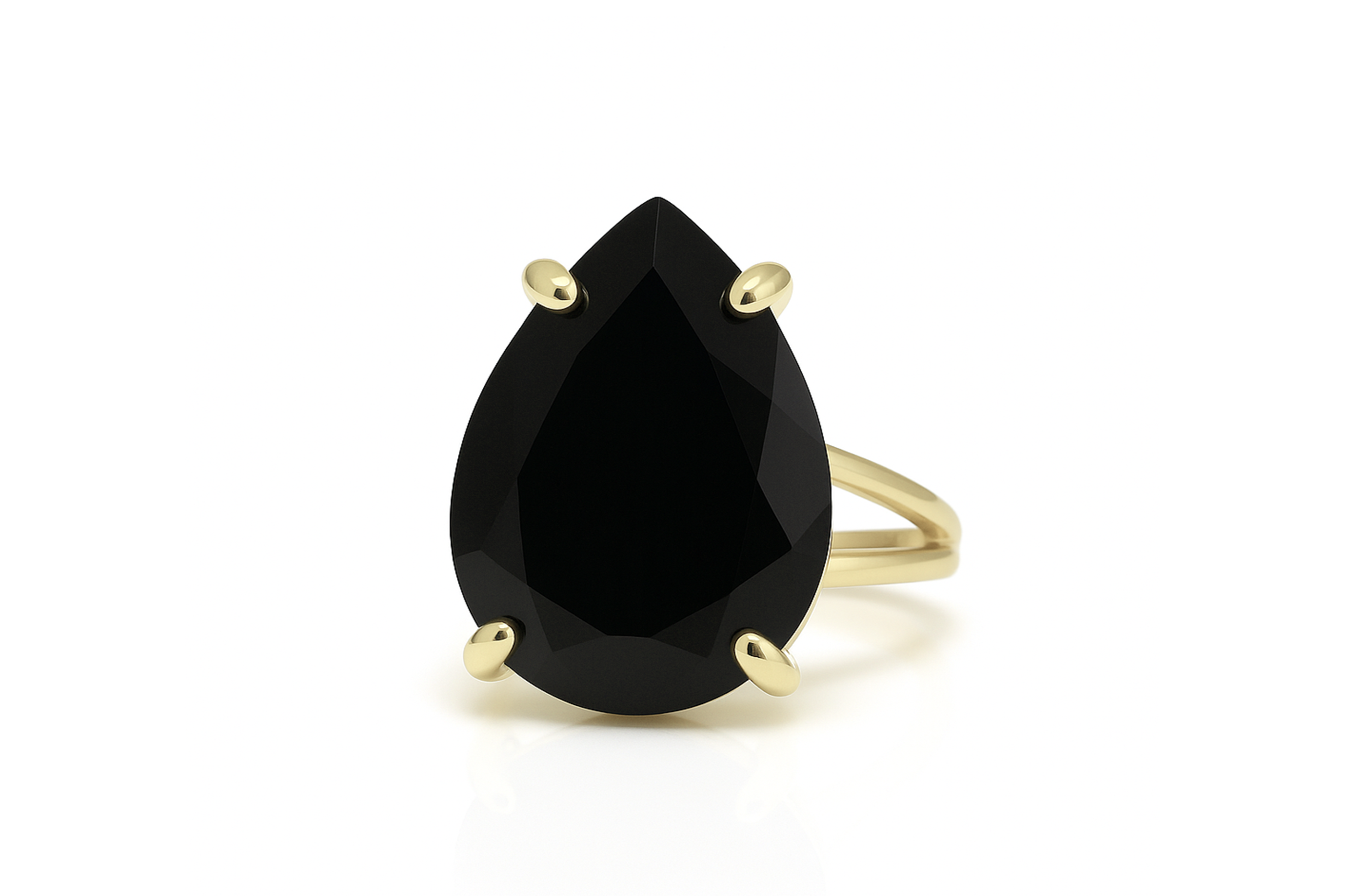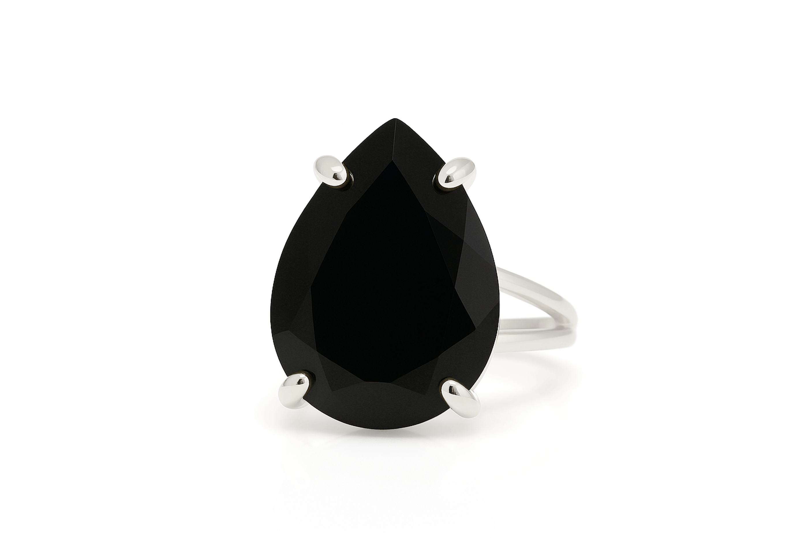 This sterling silver ring showcases a pear-shaped black onyx gemstone set in a polished teardrop design. Known for its grounding and protective qualities, black onyx adds strength and elegance to this fine silver piece. Crafted as a cocktail-style ring, it combines timeless beauty with modern appeal. Handcrafted with care, this gemstone ring is perfect for women seeking a meaningful gift or a bold addition to their jewelry collection.