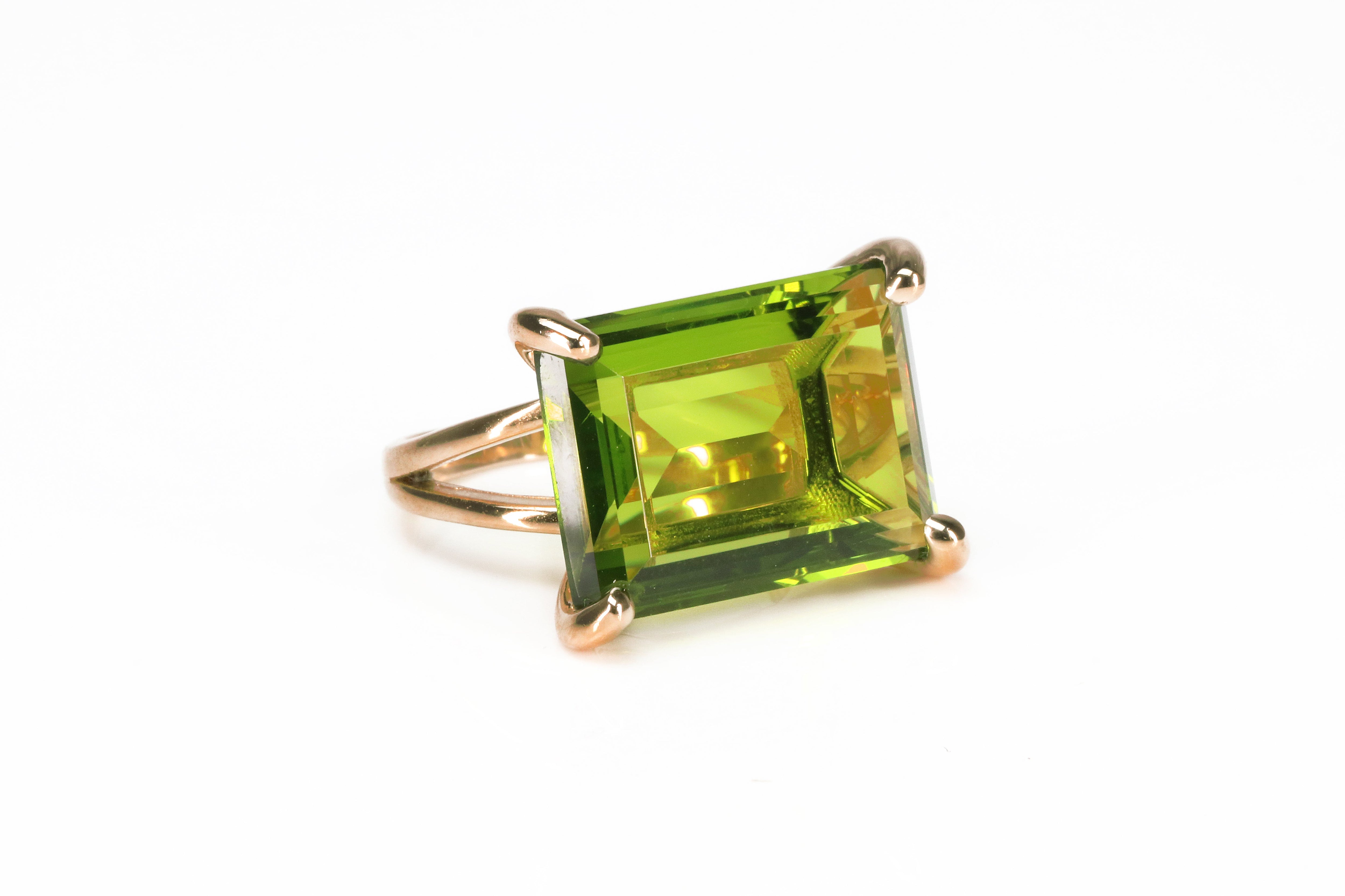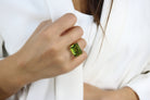 This radiant gold Peridot ring showcases an emerald-cut gemstone that glows in vivid shades of green, symbolizing joy and renewal. Crafted with care, its bold rectangular shape and smooth gold band create a perfect balance of elegance and modern design. Ideal as an August birthstone gift or a heartfelt present for mom, this gemstone ring adds a luxurious pop of color to any look.