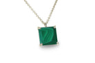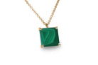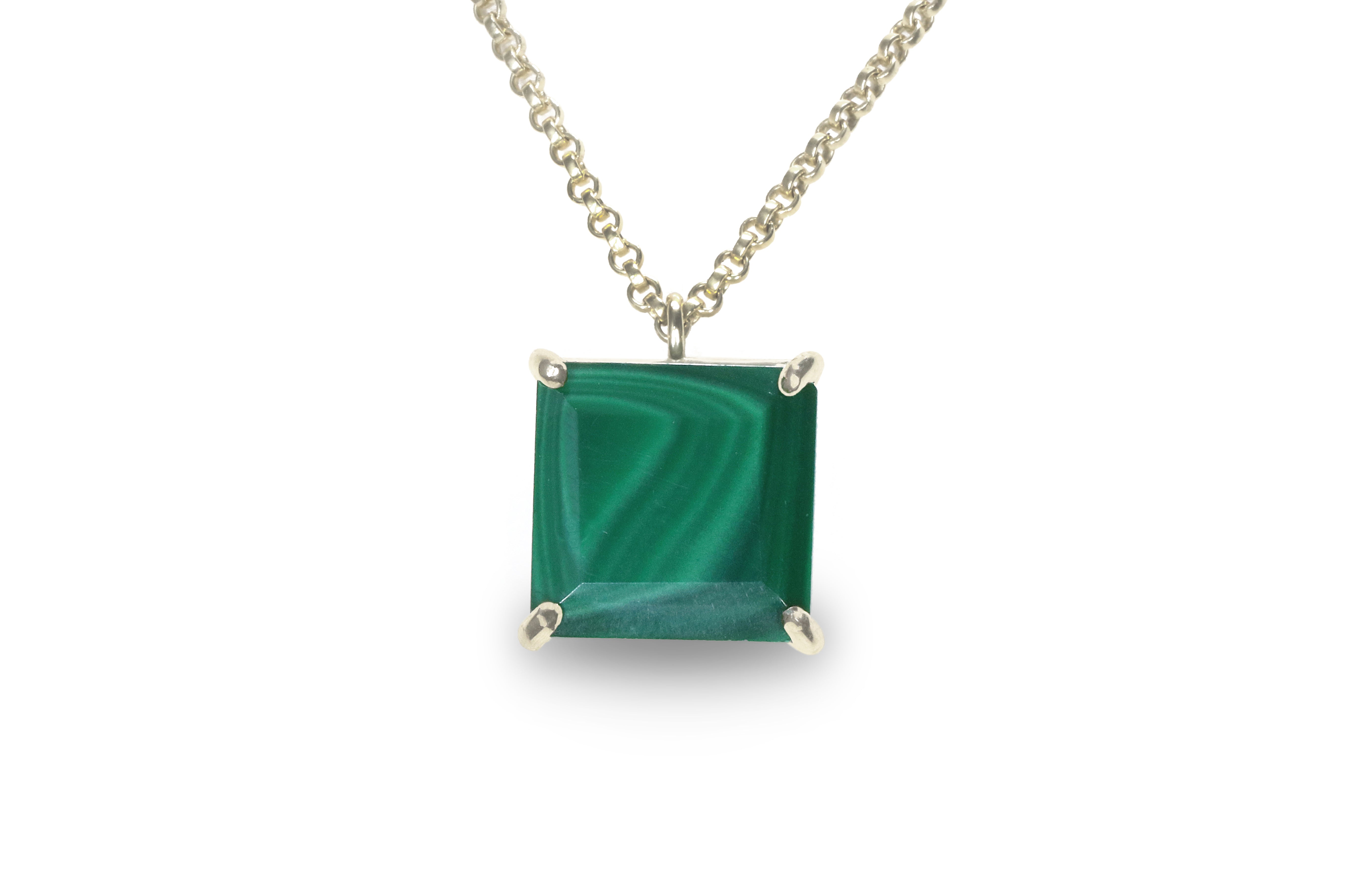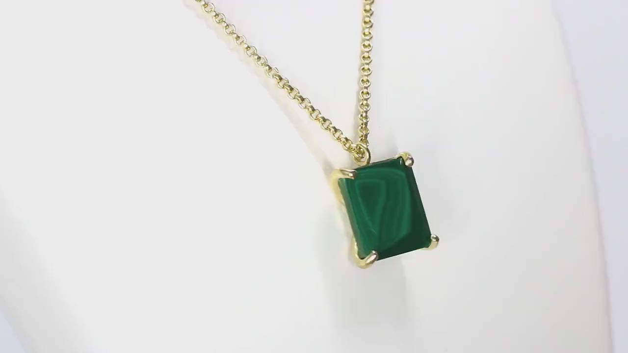 Distinctively elegant gemstone necklace decorated with a Malachite gem set in prongs. This handcrafted stone necklace is a pretty piece that will bring a touch of vibrance to your look. A classic, must-have jewelry necklace piece.
