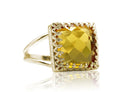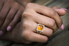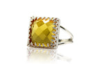 Square Cut Yellow Citrine Silver Ring