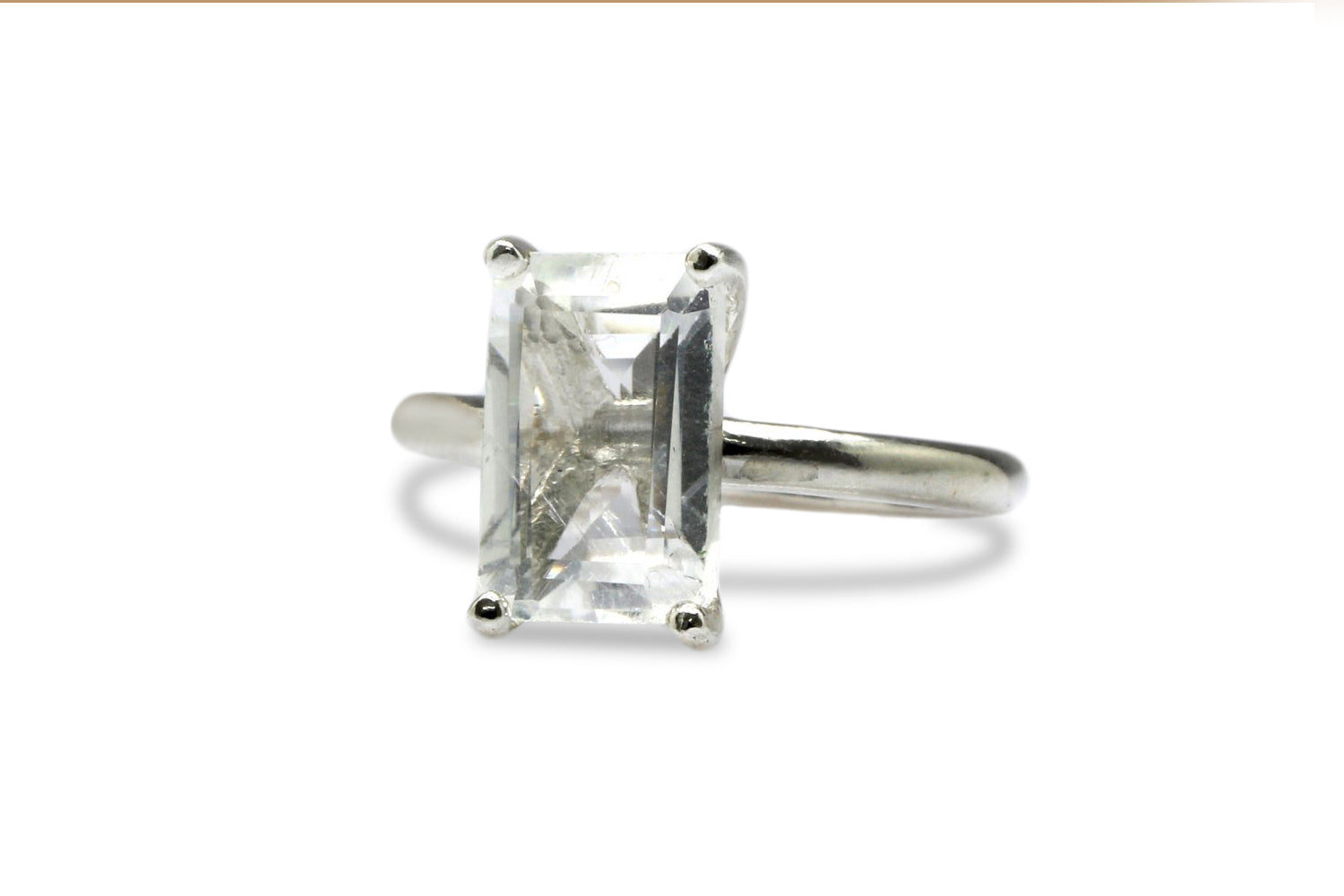 Gem Ring - 925 Sterling Silver with Crystal Quartz - Artisan and Elegant Stacking Rings, April Birthstone Rings, Engagement Rings for Women