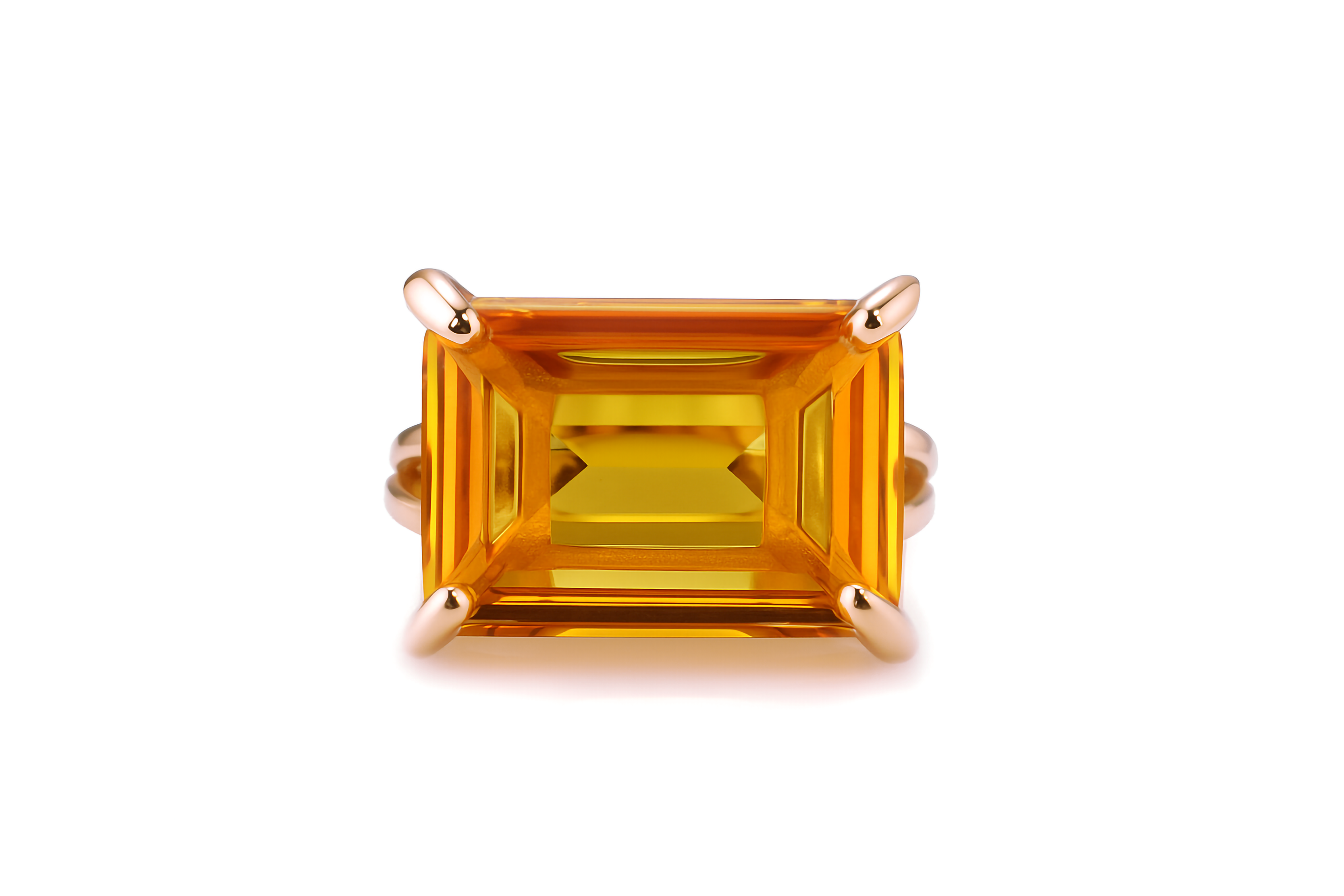 This rose gold citrine ring features a radiant emerald-cut gemstone that glows with warm golden-orange tones. The November birthstone, citrine, symbolizes positivity, abundance, and energy. The rectangular cut creates a sleek, modern silhouette complemented by the soft rose gold finish. Handcrafted with care, this ring makes a luxurious statement piece or a meaningful gift for women who love vibrant gemstone jewelry.