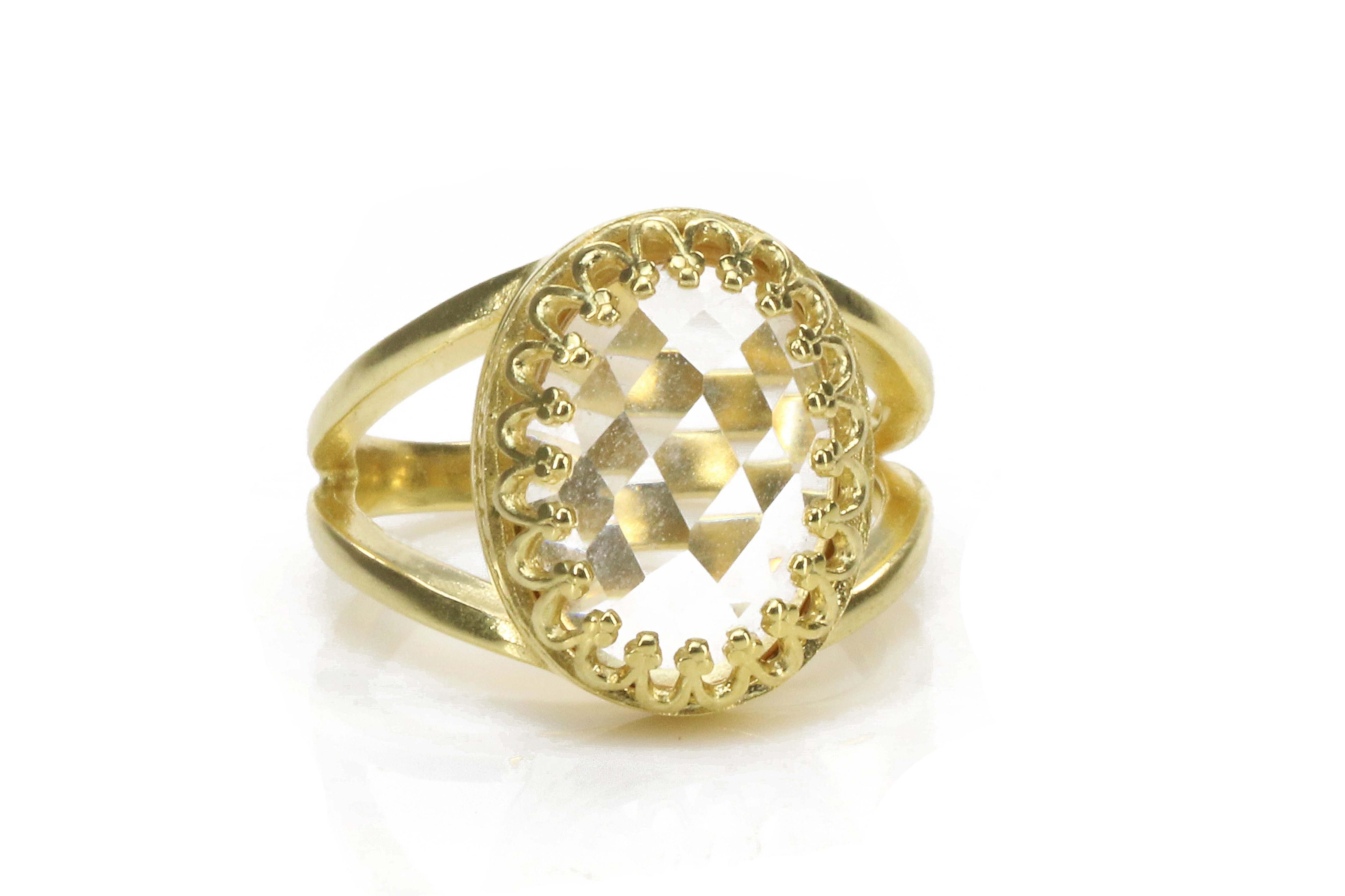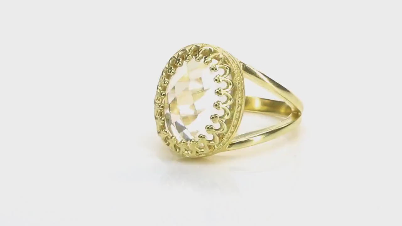 If you are looking for classy gold rings for women, this one is sure to give the wow factor. This beauty is available in all sizes and features a gorgeous Oval Natural Crystal Quartz Gemstone handcrafted in 14K Gold ring band also available in all colors. Whether you are eyeing for an elegant mom ring, birthday ring or an oval engagement ring, this piece will satisfy your quest for charm and artistry.