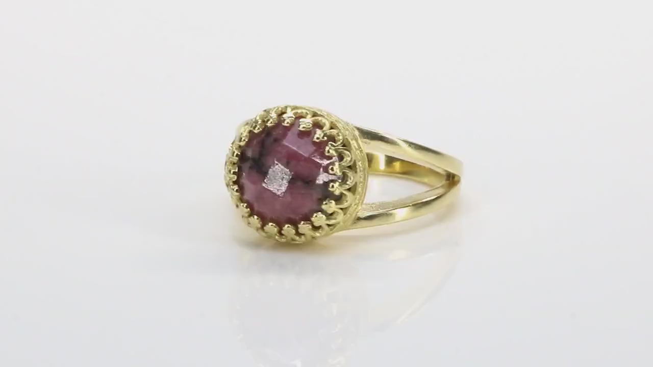 A piece from Anemone’s array of gold rings for women that features a red Rhodonite set in 14K rose gold-filled ring band. This gold jewelry stars a red gemstone that helps balances self-esteem and confidence. A perfect gift for a loved one who loves red accessories for women or something you can have for yourself.