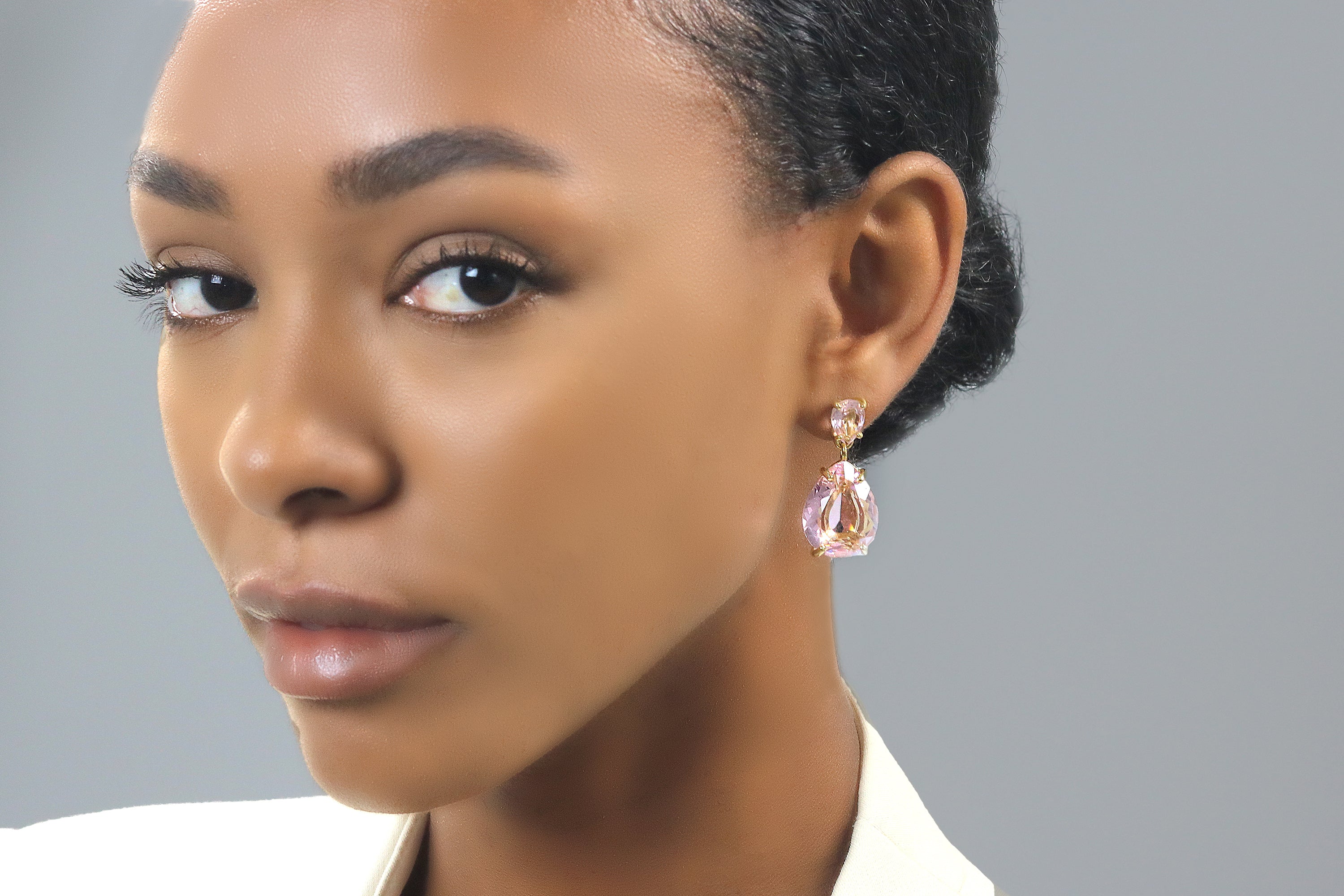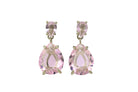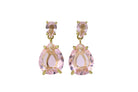 Double Gem Pear Rose Quartz Drop Earrings in Gold