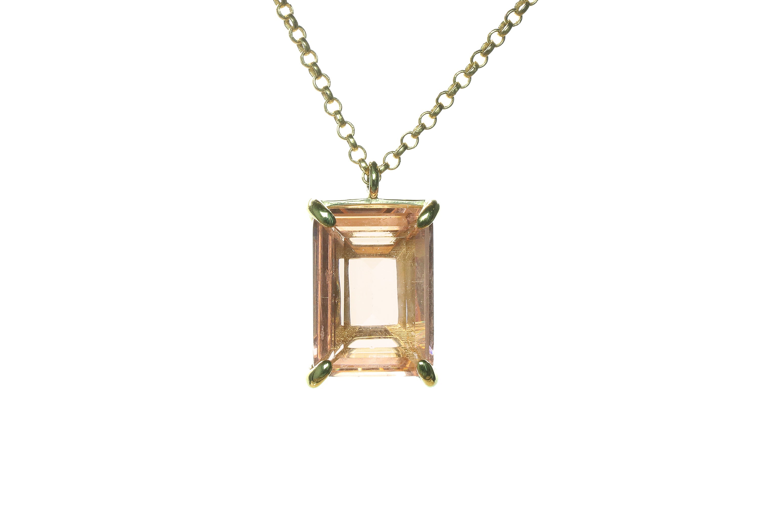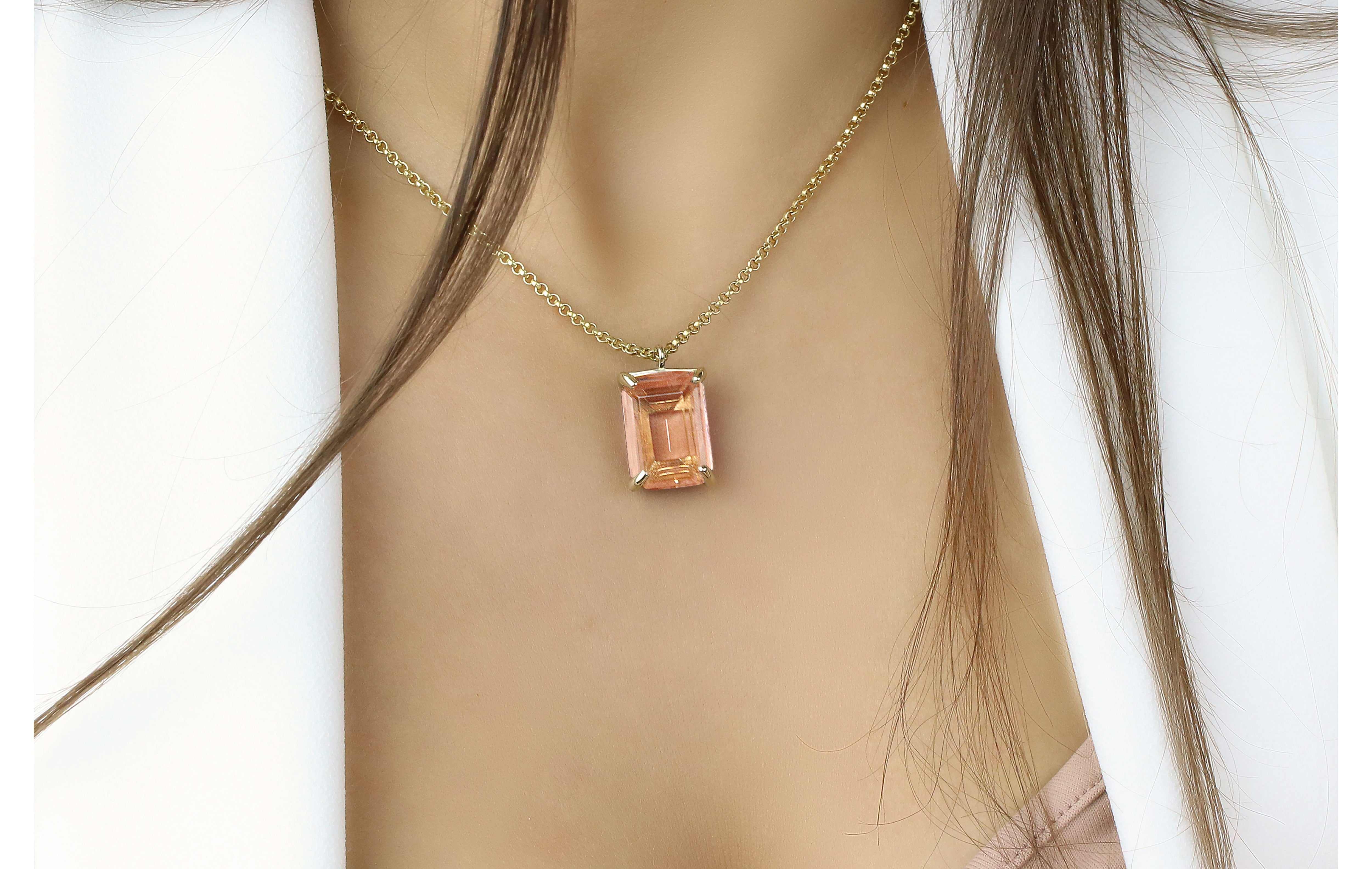 A flashy December birthstone Morganite hangs beautifully as a large pendant in this handcrafted statement necklace. This necklace jewelry piece will be a fancy addition to an outfit you choose to style and wear. A must-have indeed.