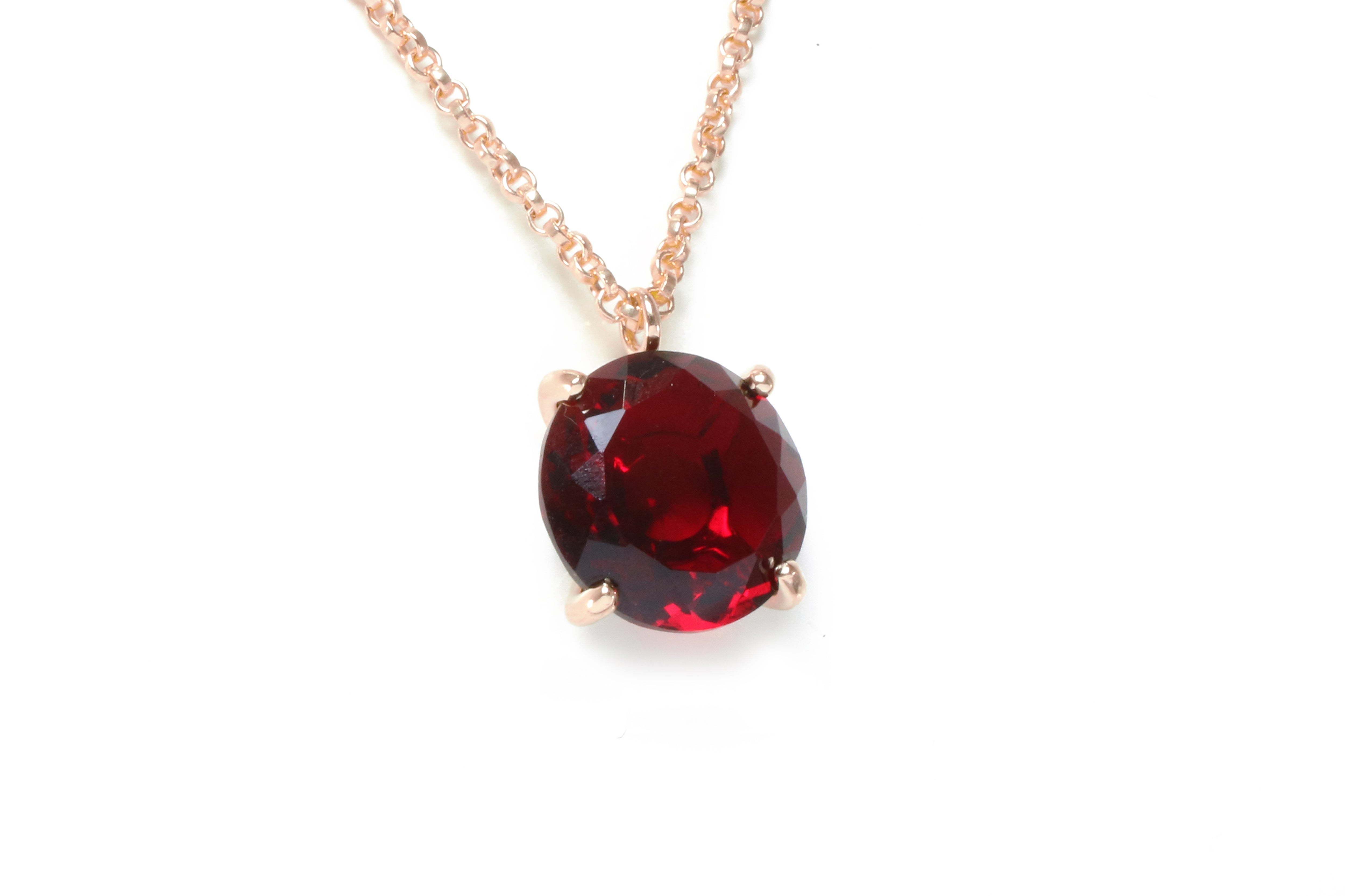 A stone pendant necklace that showcases a dramatic, faceted Garnet. A simple necklace with a bold flair that you can wear from day until evening. This Garnet necklace for women is a versatile, must-have piece.