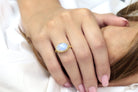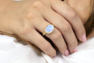 Celebrate the mystique of moonstone with this striking 18k Gold Rainbow Moonstone Ring. Featuring a bezel-set, oval rainbow moonstone that shimmers with every movement, this piece is a celebration of color and light. Known for its calming energy, the rainbow moonstone is a popular choice for jewelry, often associated with balancing emotions and enhancing intuition. This exquisite ring is meticulously handcrafted from either 18k or 14k solid gold, making it a durable and timeless choice. As a birthstone for June, this ring would make a thoughtful gift for those born in this month or anyone who appreciates the unique allure of moonstones. Its versatile design is suitable for everyday wear or special occasions, adding a touch of elegance to any outfit.