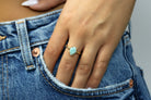 A gem ring, handmade by skilled jewelers and are made to be a lovely present for a loved one or something you can have for yourself. This blue ring is an Amazonite, set and pronged in 14k gold-filled material. If you are looking for inexpensive rings for women, this is an excellent and elegant choice.