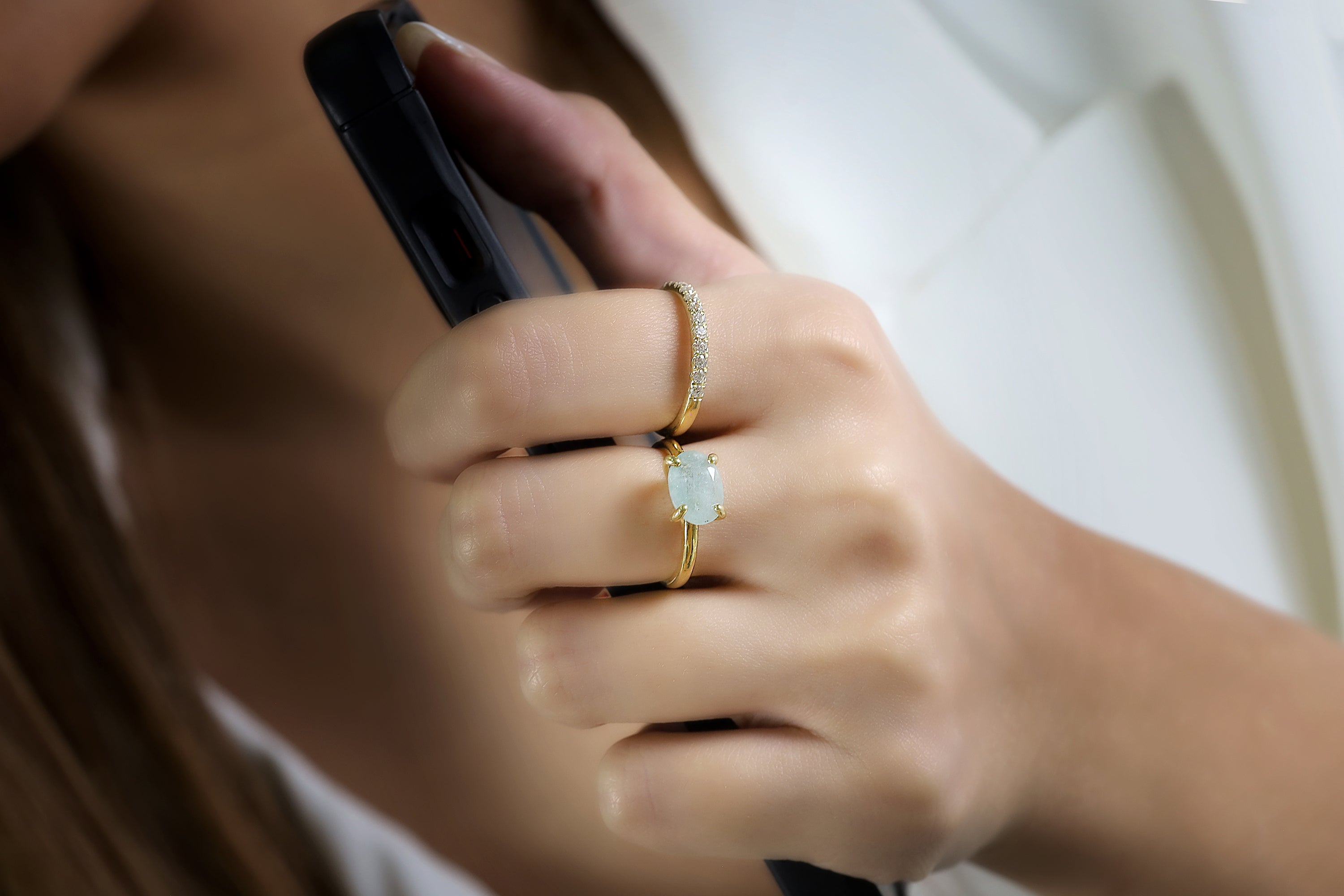 A women’s jewelry from Anemone that flaunts an oval Aquamarine, pronged in fine quality 14k gold-filled setting and designed with a single ring band. Stylish gift jewelry to bring happiness and delight to the wearer or receiver of the gift.