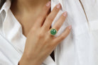 A sophisticated piece from Anemone’s collection of 14k gold rings for women that features a 16mm Aventurine set in 14k gold-filled ring band, customizable to 14k solid gold or 925 Sterling silver. Statement rings for women with Aventurine gemstone help you connect with nature and revitalize your positive energies. This chic ring can be worn as a single jewelry or a boho ring to stack with other smaller, midi rings.